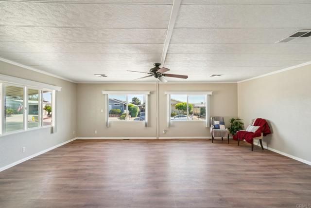 Welcome to an elegant and inviting retreat in the highly desirable 55+ community of Golf Knolls. This land-owned manufactured home has been thoughtfully upgraded and meticulously maintained, offering a refined yet comfortable living experience. Enjoy tranquil mornings on the charming front porch or relax in one of two sun-drenched sunrooms, perfect for quiet moments or effortless entertaining. The interior showcases new windows, updated flooring, and a beautifully refreshed kitchen with generous counter space, complemented by both a spacious living room and separate family room, as well as a formal dining area for more elevated gatherings. Outdoors, the private setting is enhanced by vinyl fencing and a mature lemon tree, creating a serene and polished atmosphere. Additional highlights include an accessible ADA ramp, recent bracing, and a permanent foundation with a recorded 433A certificate, providing both quality and peace of mind. Ideally situated adjacent to the community clubhouse and sparkling pool, with parking for up to four vehicles, this residence offers a sophisticated blend of comfort, convenience, and lifestyle.