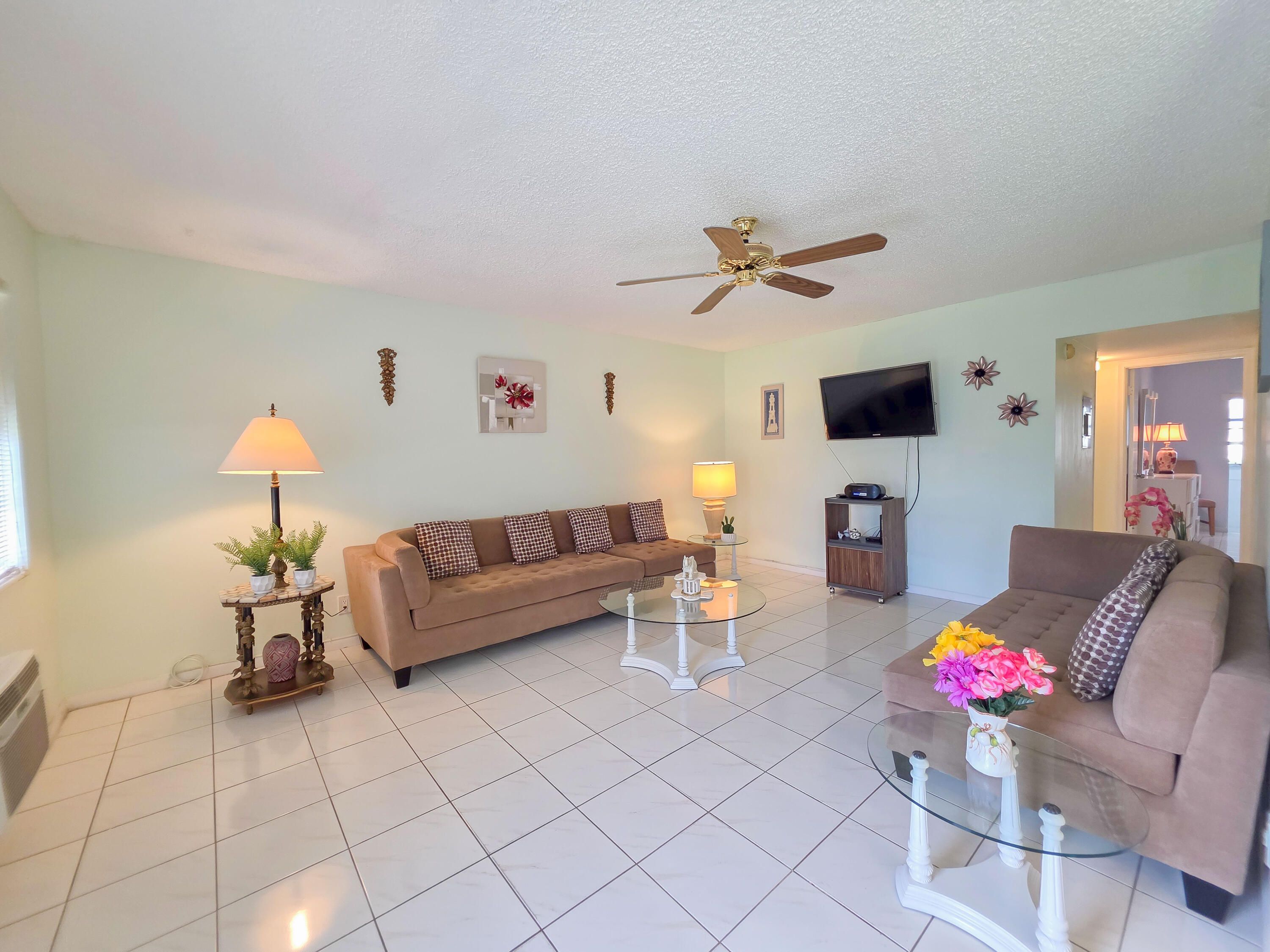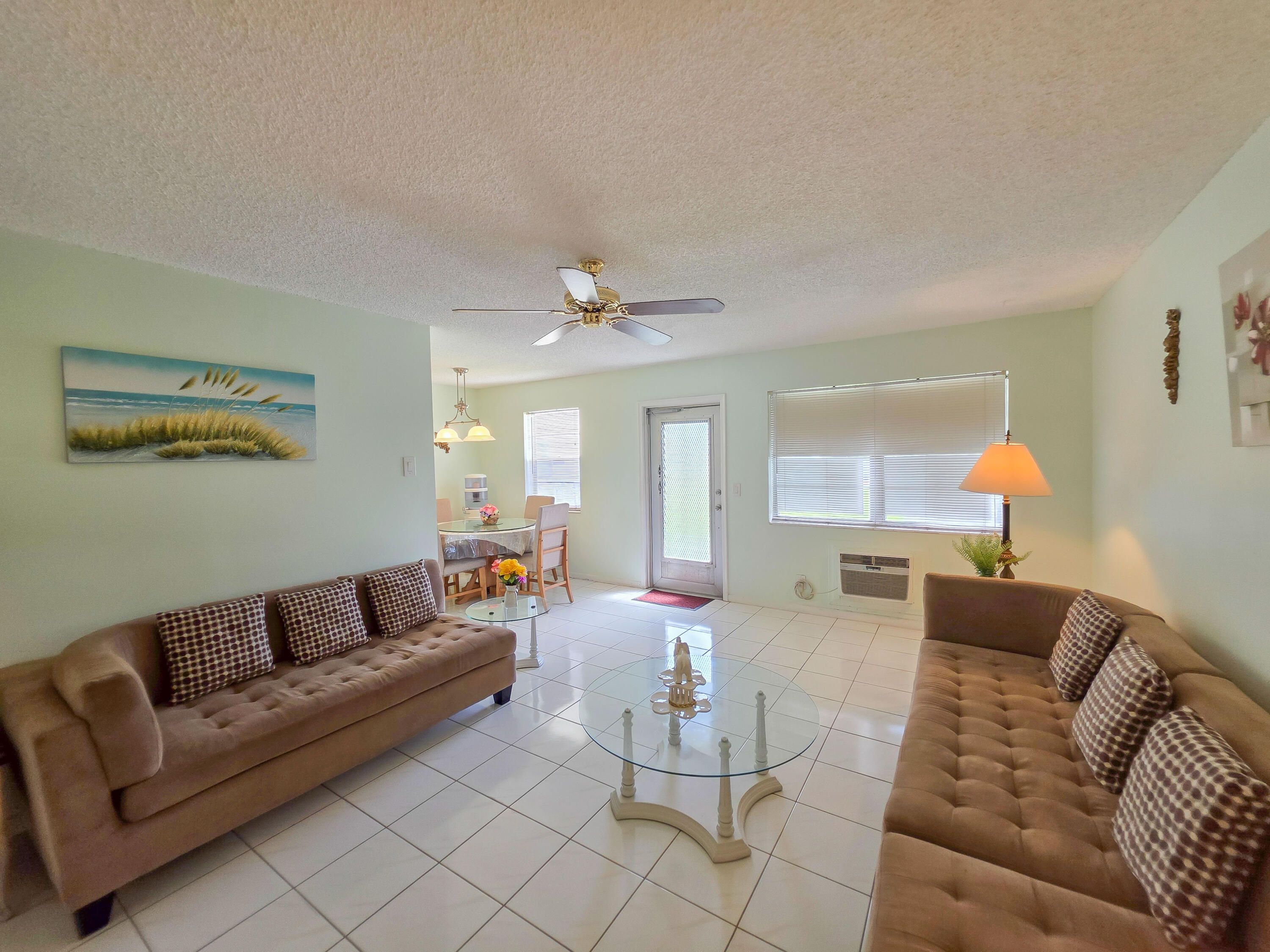 Experience resort-style living with ultimate convenience! This highly desirable FIRST-FLOOR condo in the vibrant 55+ community of Century Village offers the perfect blend of comfort and active living. Located at 291 Norwich M, this spacious 2-bedroom, 1.5-bathroom unit means absolutely no stairs to navigate. Enjoy a bright and inviting floor plan that flows seamlessly, perfect for relaxing or entertaining. Century Village offers world-class amenities, including a massive clubhouse, state-of-the-art fitness center, indoor/outdoor pools, a theater, courtesy shuttle transportation, and endless daily activities. Don't miss this opportunity to enjoy the ultimate South Florida lifestyle. Schedule your showing today! Furniture included! List in documents of furniture included and excluded.