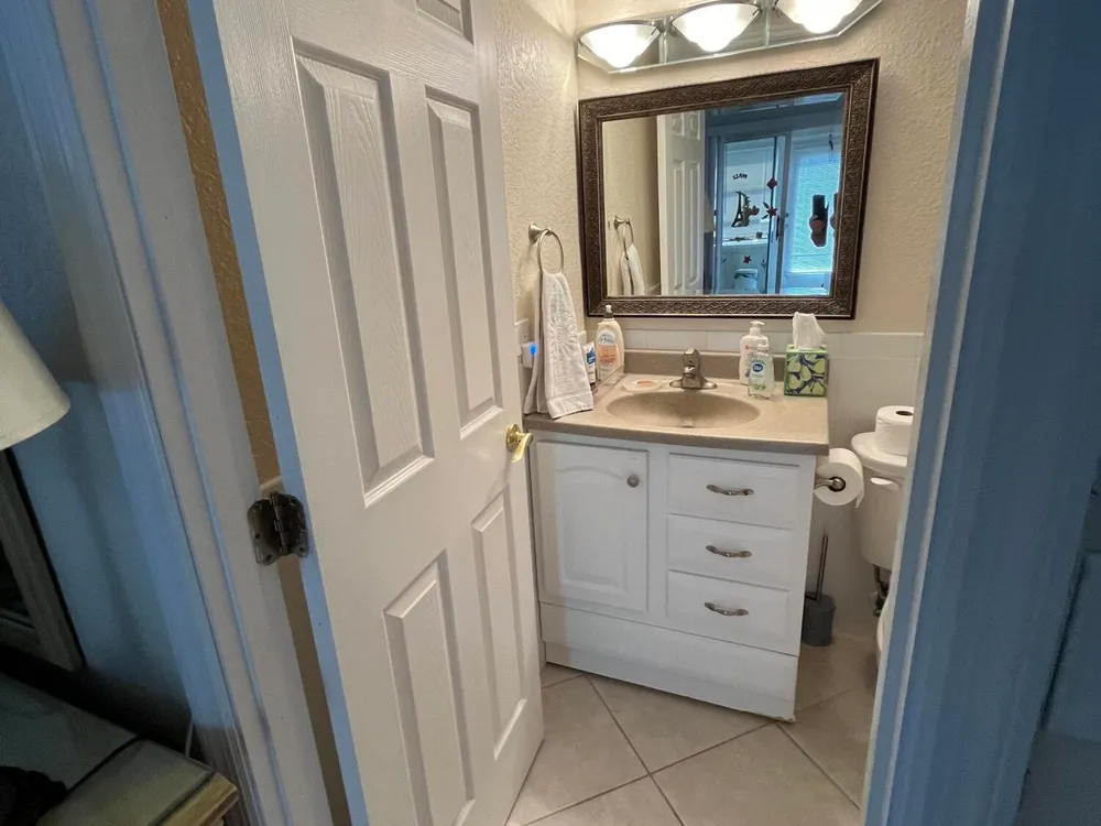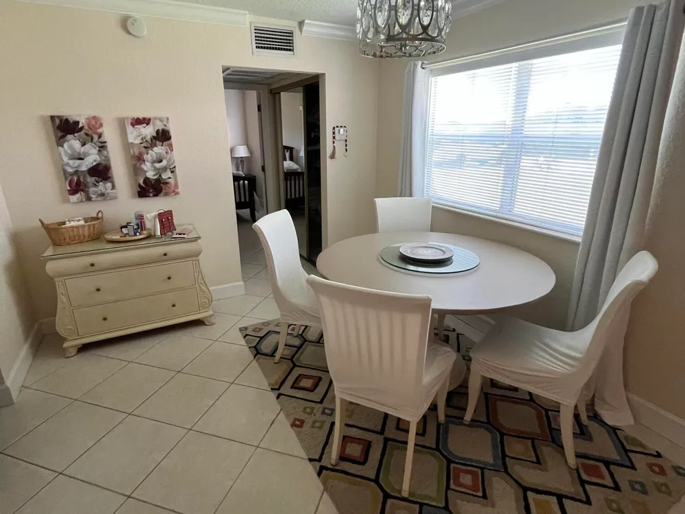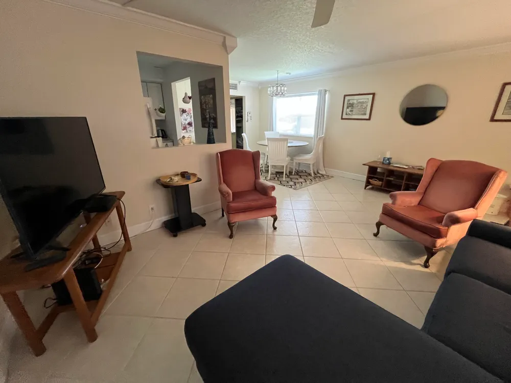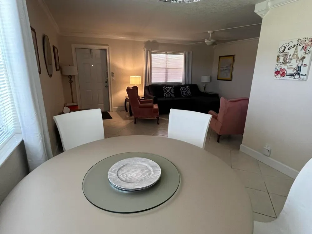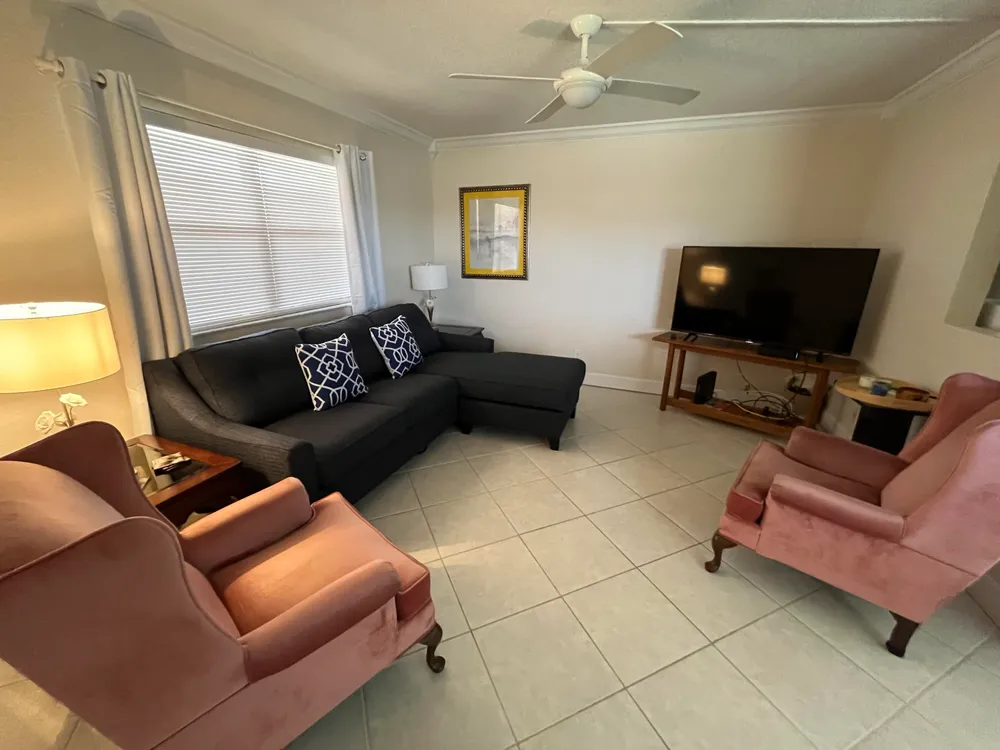 really spectacular and so, so clean ground floor 1/1.5 unit in the Saxony section of Kings Point. The patio faces morning sun (east exposure) overlooking a very peaceful/serene water view. That patio is enclosed with window a/c as well. Tile neutral colored flooring throughout. Washer/dryer in patio utility closet. Updated kitchen and bathrooms. Unit comes fully furnished, so move right in! Parking very close to walkway by the entrance as well. Great unit on the ground floor.