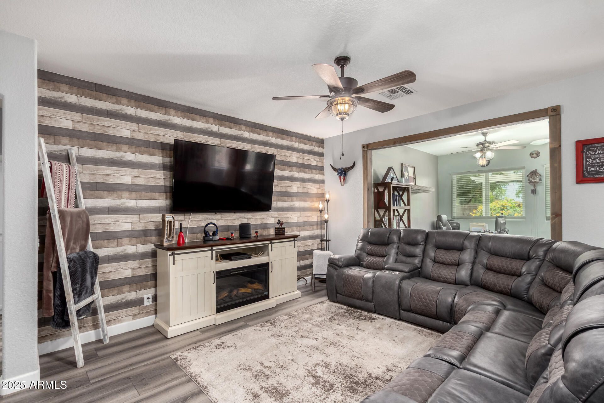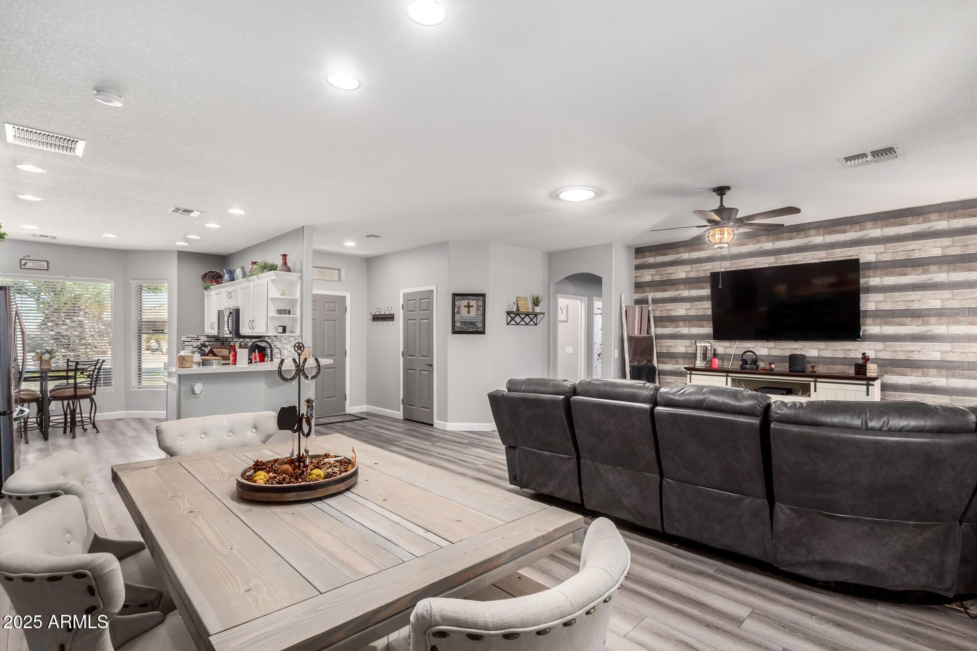 NEWLY REDUCED!! This stunning single-level home awaits you in the desirable Sunland Springs Village! Featuring a welcoming curb appeal, a vibrant landscape & great location near everyday necessities! The interior boasts bright & airy living areas with wood-look flooring and neutral colors. You'll find recessed lighting, cabinetry with crown molding, custom tile backsplash, granite counters & SS appliances in the culinary space! The charming Arizona Room is fantastic for casual dining or an entertaining area/office. Fall in love with the main bedroom, offering carpet for extra coziness, his and hers walk-in closets & a bathroom with an oversized dual sink vanity. Relax in the spacious backyard, complete with a covered patio with an attached pergola, pavers, turf, a serene landscape & plenty of sitting space, perfect for outdoor dining and fun gatherings. Enjoy a multitude of fruit trees including grapefruit, tangelo and orange. Discover everything the community offers! Visit the pool, spa, golf course, pickleball, tennis court & more! Don't miss it! Tax records are inaccurate in terms of square footage...appraisal says 1,784.