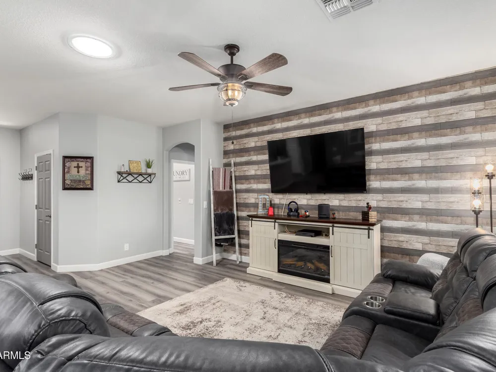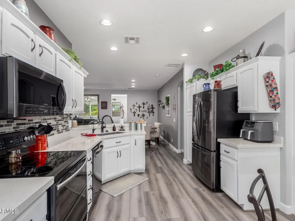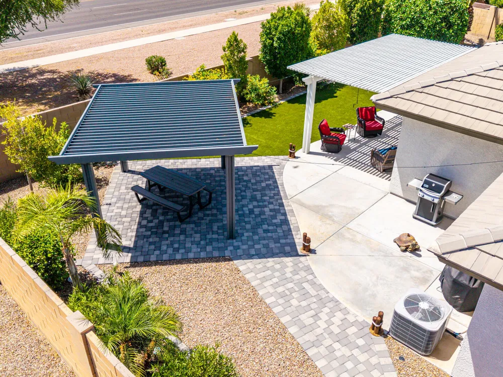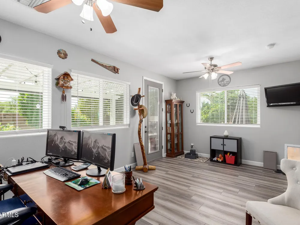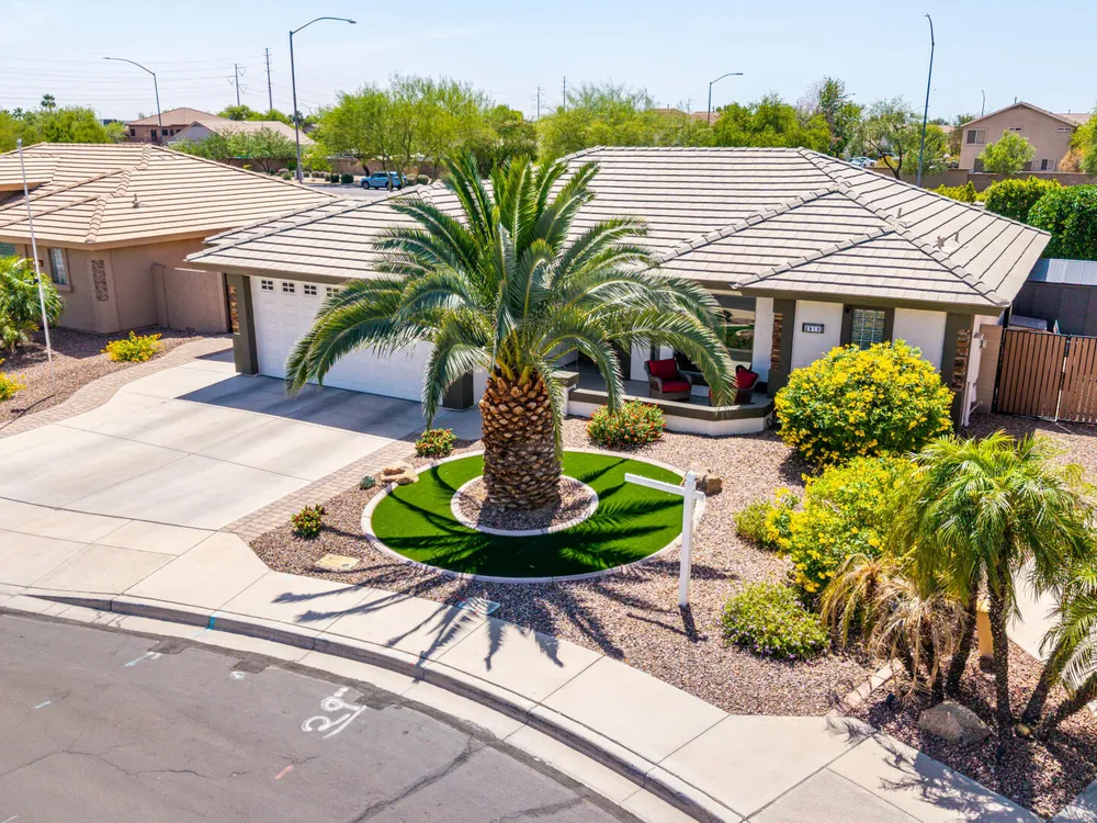 ORIGINAL BUYER WAS UNABLE TO PERFORM FOR THIS HOME SO IGNORE DAYS ON MARKET! GREAT NEW PRICE AND MOTIVATED SELLER!! REDUCED PRICE!! This stunning single-level home awaits you in the desirable Sunland Springs Village! Featuring a welcoming curb appeal, a vibrant landscape & great location near everyday necessities! The interior boasts bright & airy living areas with wood-look flooring and neutral colors. You'll find recessed lighting, cabinetry with crown molding, custom tile backsplash, granite counters & SS appliances in the culinary space! The charming Arizona Room is fantastic for casual dining or an entertaining area/office. Fall in love with the main bedroom, offering carpet for extra coziness, his and hers walk-in closets & a bathroom with an oversized dual sink vanity. Relax in the spacious backyard, complete with a covered patio with an attached pergola, pavers, turf, a serene landscape & plenty of sitting space, perfect for outdoor dining and fun gatherings. Enjoy a multitude of fruit trees including grapefruit, tangelo and orange. Discover everything the community offers! Visit the pool, spa, golf course, pickleball, tennis court & more! Don't miss it! Tax records are inaccurate in terms of square footage...appraisal says 1,784.