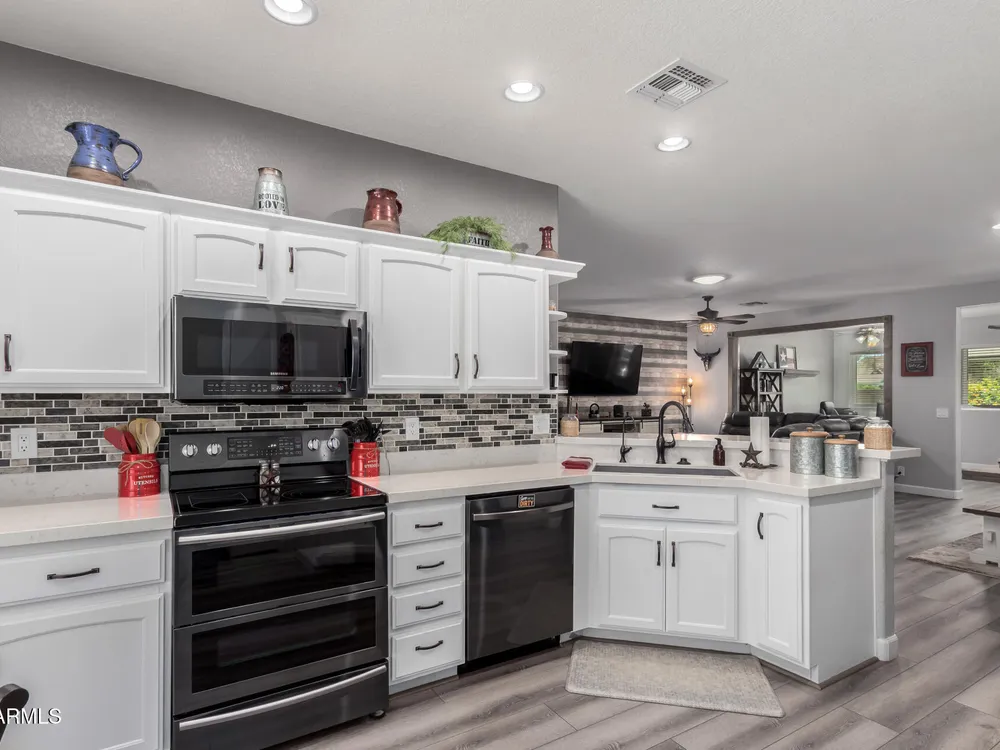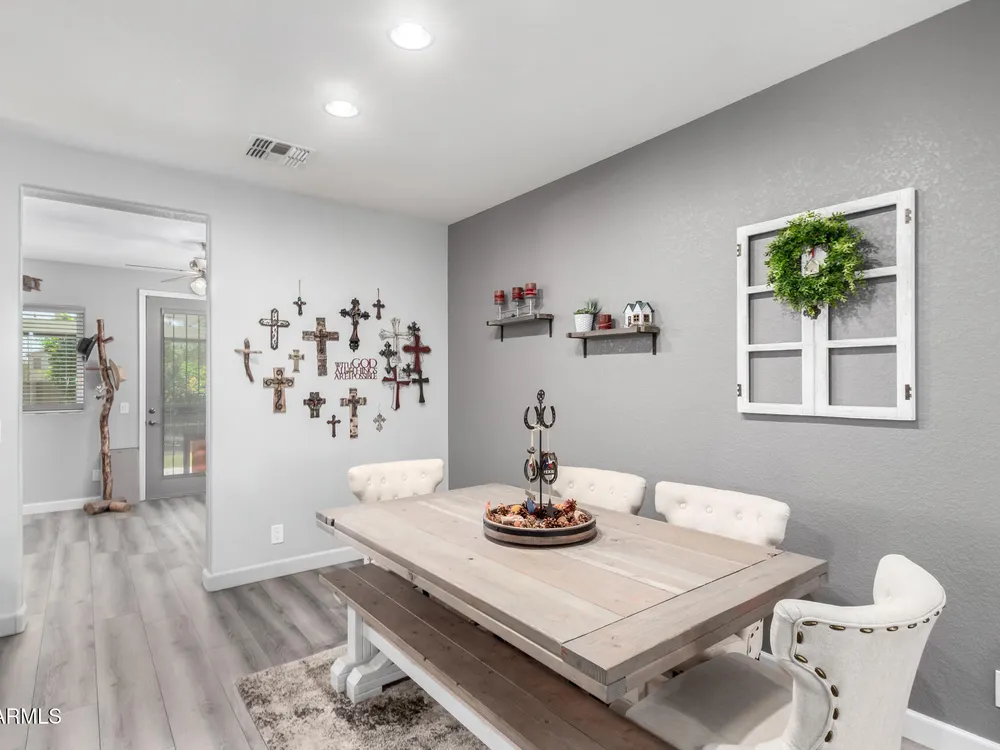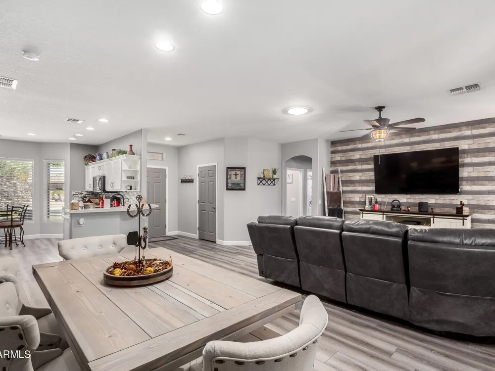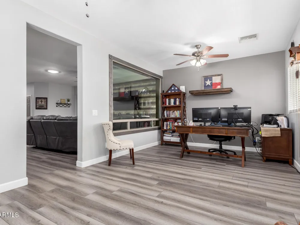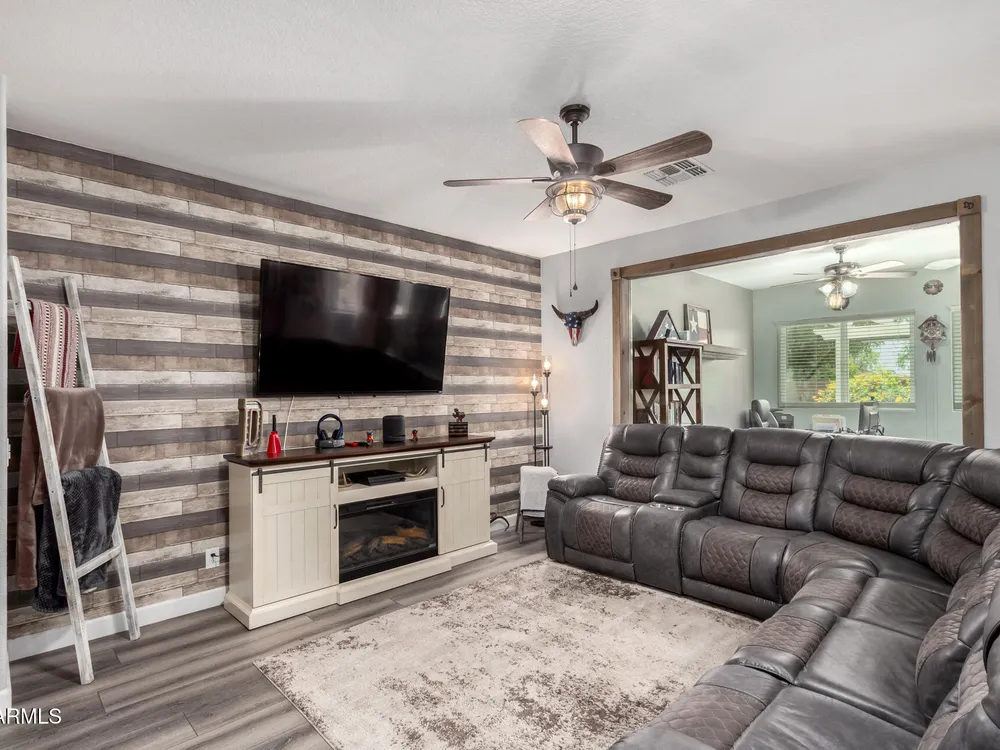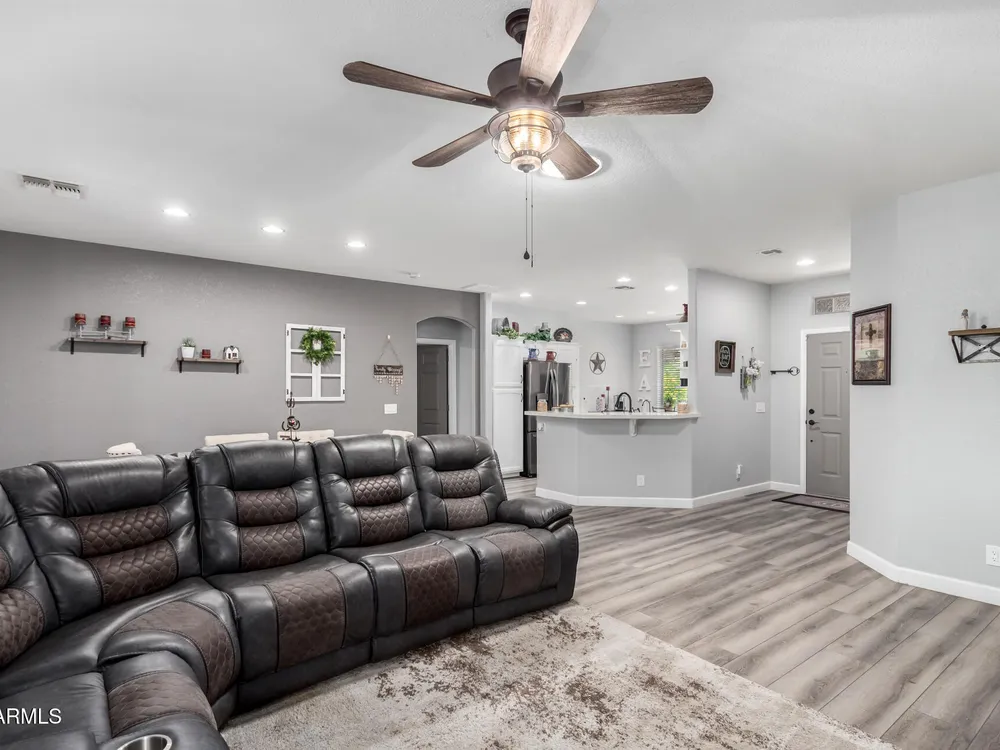ORIGINAL BUYER WAS UNABLE TO PERFORM FOR THIS HOME SO IGNORE DAYS ON MARKET! GREAT NEW PRICE AND MOTIVATED SELLER!! REDUCED PRICE!! This stunning single-level home awaits you in the desirable Sunland Springs Village! Featuring a welcoming curb appeal, a vibrant landscape & great location near everyday necessities! The interior boasts bright & airy living areas with wood-look flooring and neutral colors. You'll find recessed lighting, cabinetry with crown molding, custom tile backsplash, granite counters & SS appliances in the culinary space! The charming Arizona Room is fantastic for casual dining or an entertaining area/office. Fall in love with the main bedroom, offering carpet for extra coziness, his and hers walk-in closets & a bathroom with an oversized dual sink vanity. Relax in the spacious backyard, complete with a covered patio with an attached pergola, pavers, turf, a serene landscape & plenty of sitting space, perfect for outdoor dining and fun gatherings. Enjoy a multitude of fruit trees including grapefruit, tangelo and orange. Discover everything the community offers! Visit the pool, spa, golf course, pickleball, tennis court & more! Don't miss it! Tax records are inaccurate in terms of square footage...appraisal says 1,784.