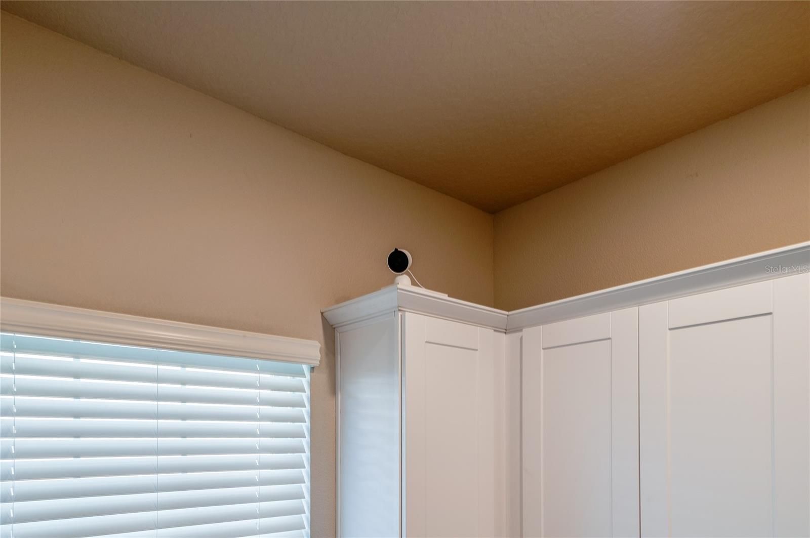 - High Ceilings, Kitchen/Family Room Combo, Living/Dining Room, Open Floorplan, Solid Surface Counters, Solid-Wood Cabinets, Stone Counters, Thermostat, Tray Ceiling(s), Walk-In Closet(s), Window Treatments