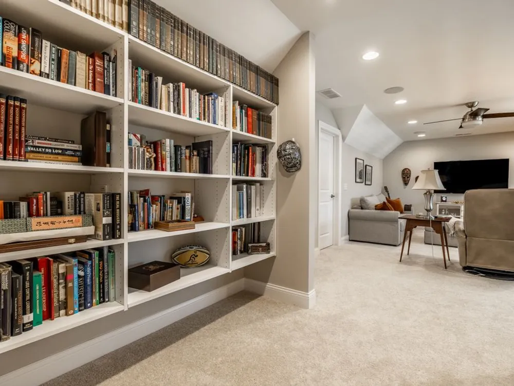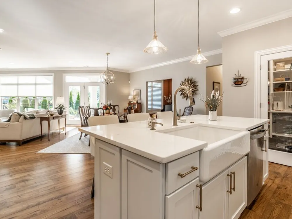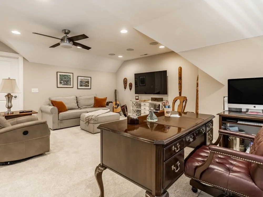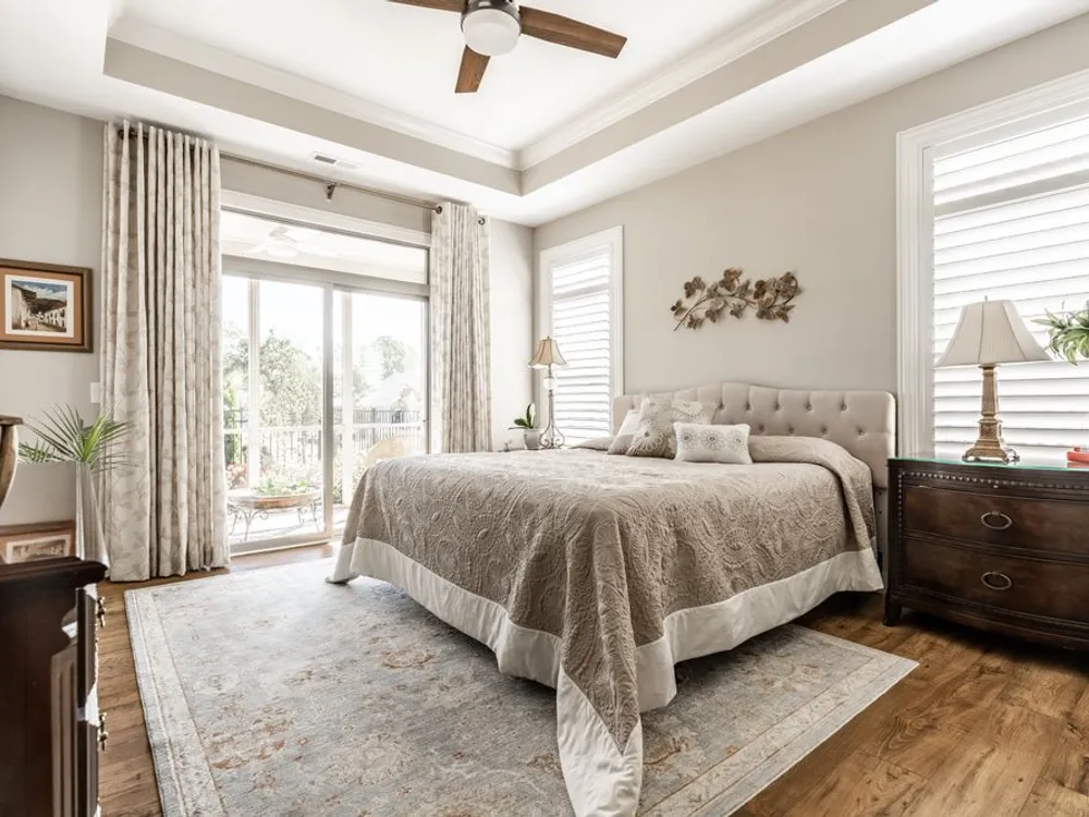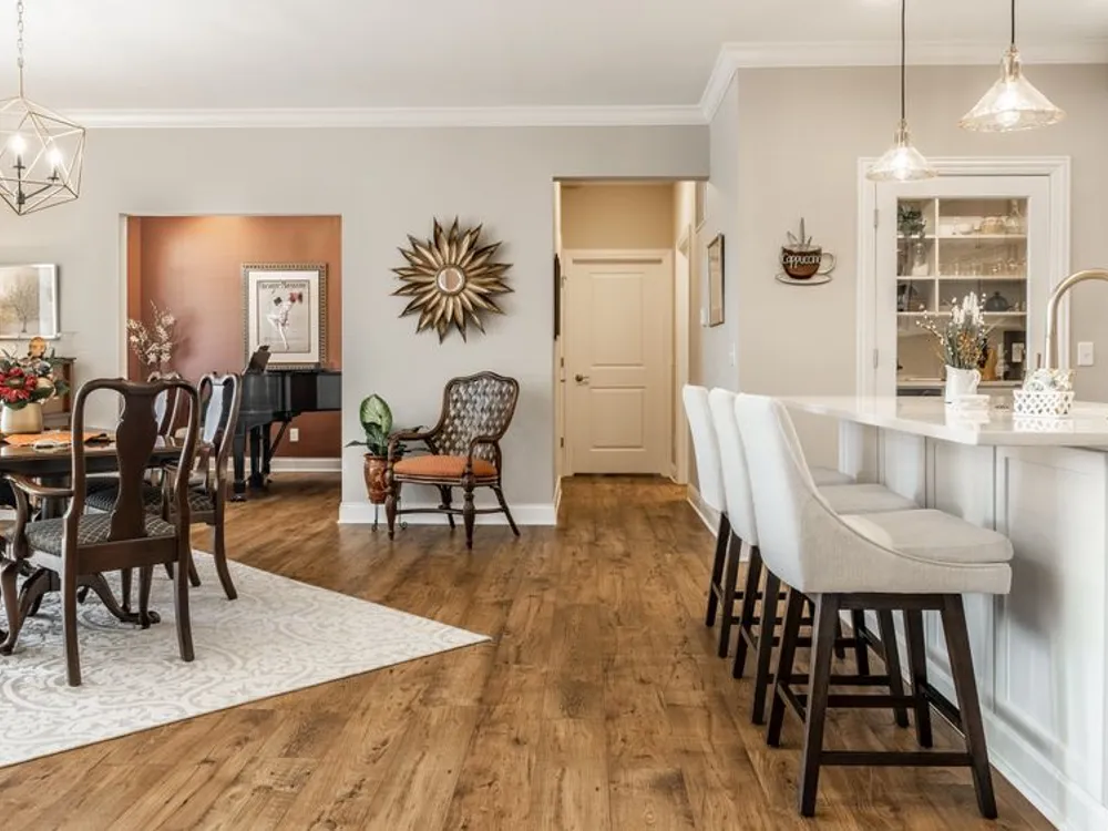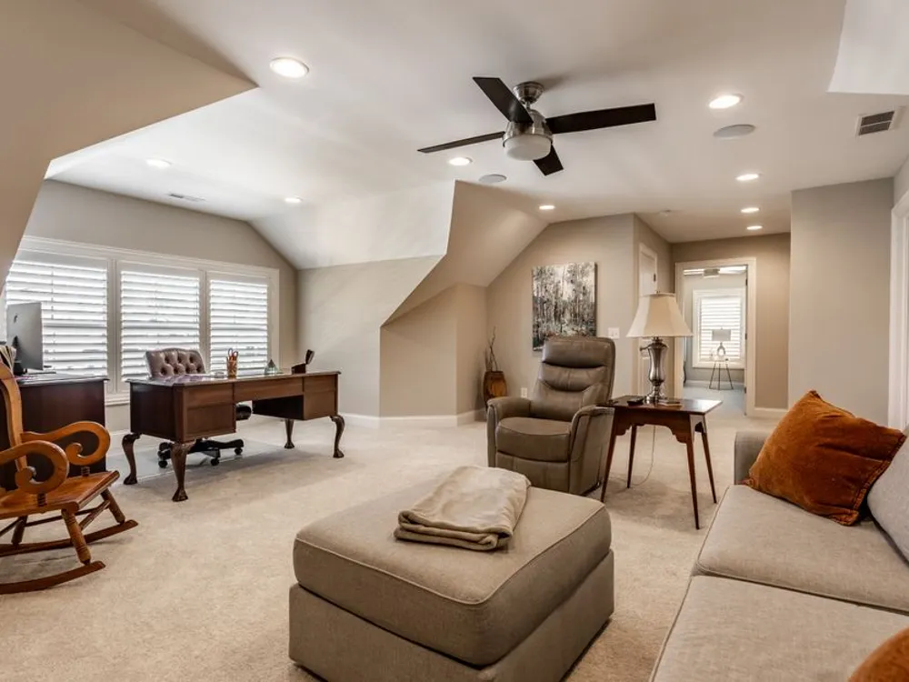 - Bedroom on Main Level, Utility Room, Great Room, Updated Kitchen, Stall Shower, Dual Sinks, Primary Suite, Walk-In Closet(s), Programmable Thermostat, Attic Access, Breakfast Bar, Built-in Features, High Ceilings, Tray Ceiling(s), Kitchen Island, Entrance Foyer, Paddle Fan, Hardwood Floors, Hi-Speed Internet Availbl, Wired for Data, Pantry, Smart Thermostat, Wood Work Painted