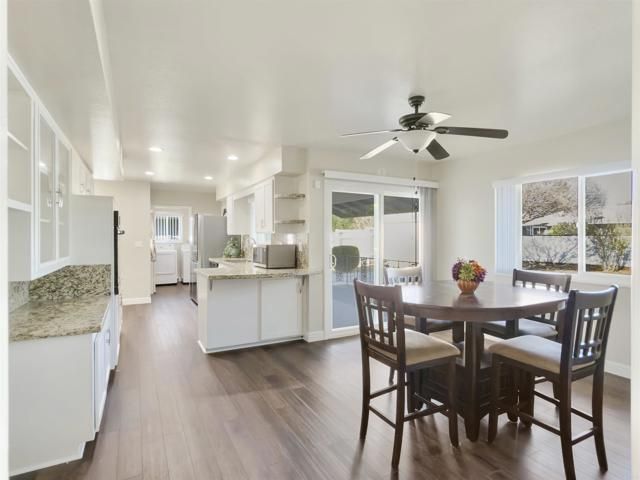 Prepare to be impressed—this beautifully maintained 2-bedroom, 2-bath bungalow is truly move-in ready. Previously updated from top to bottom, nearly every inch of this home has been improved with care and style. From the moment you step inside, you’re greeted by a warm, inviting family room, wood-laminate flooring, recessed lighting, ceiling fans, updated baseboards, and newer windows that fill the space with natural light. The cozy breakfast nook flows seamlessly into a bright, updated kitchen showcasing stunning granite countertops, a large sink, newer appliances, refreshed cabinetry, modern hardware, and upgraded lighting. Just off the kitchen, the spacious dining room offers built-ins and ample room for entertaining, all while enjoying peaceful views of the backyard. A generously sized laundry room provides additional storage potential with space for a pantry and convenient access to the exterior. Both bathrooms have been tastefully upgraded with ceramic tile tub/showers, custom cabinetry, Corian countertops, and matching mirrors. The large bedrooms feature abundant closet space, completing a home that perfectly blends comfort, charm, and functionality. This is the one you’ve been waiting for—welcome home.