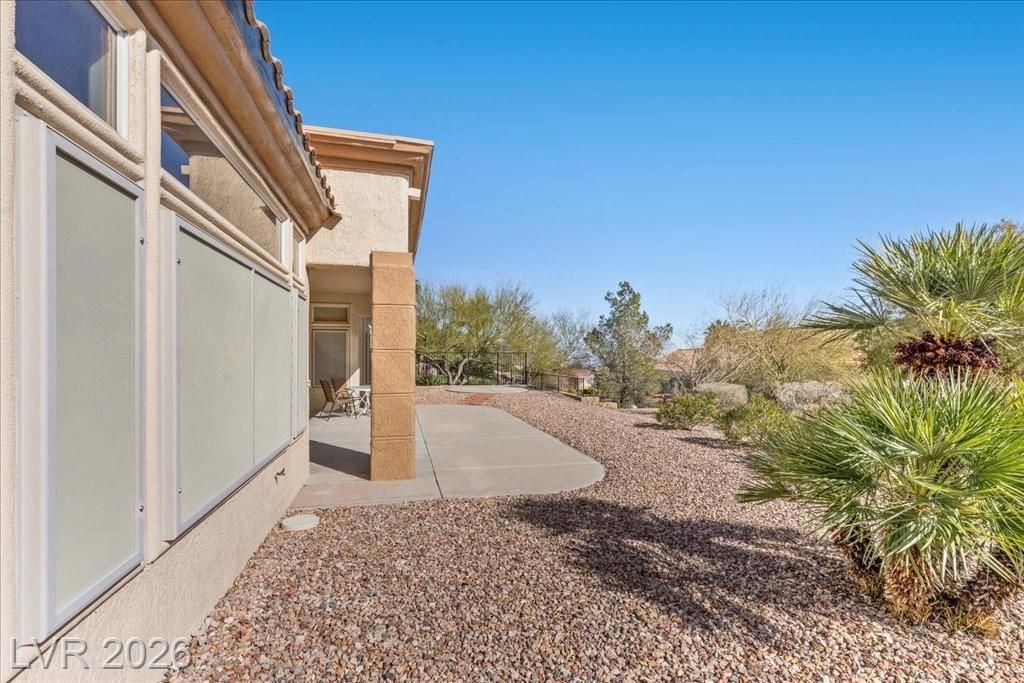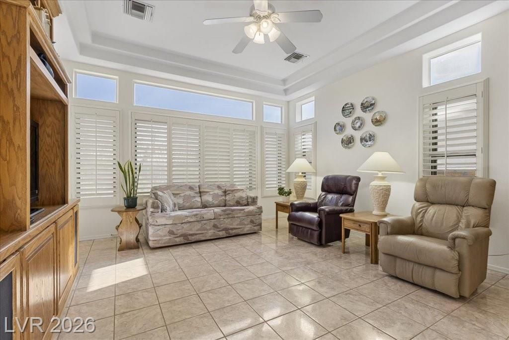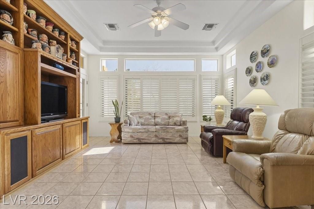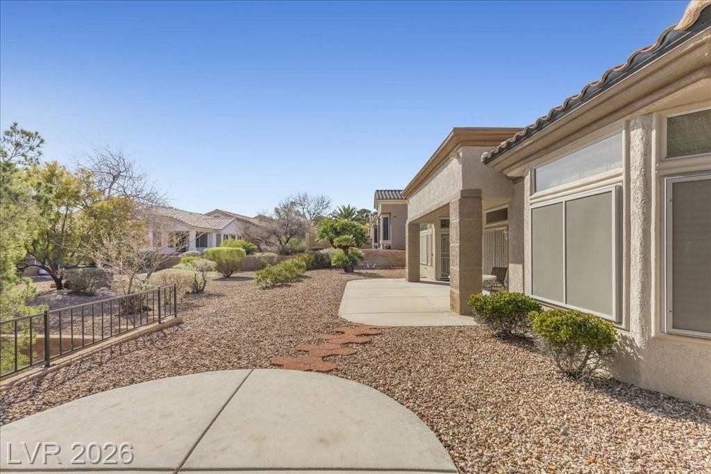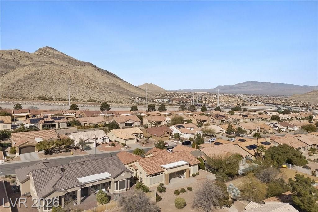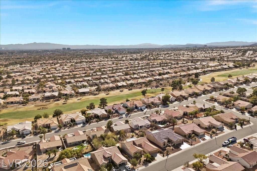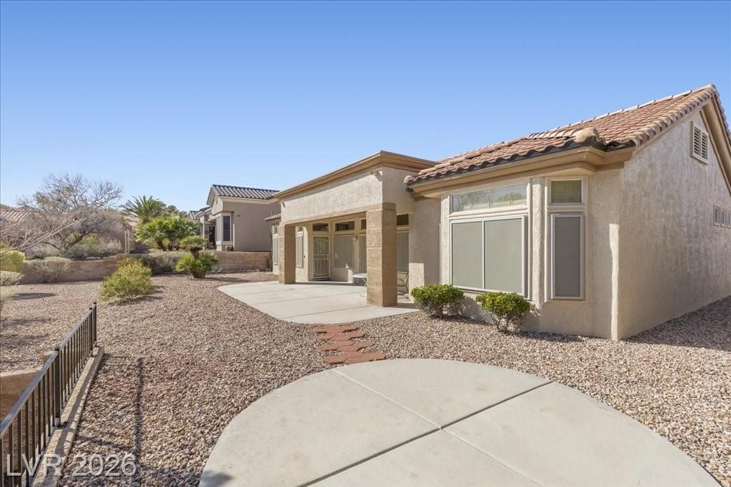 Located in Sun City Summerlin, with a brand new roof, 2 yr old AC, and redone plumbing this is one of Las Vegas’ premier 55+ communities.This well-maintained 3-bd home offers generous space.The home features 2 oversized family rooms. The large primary suite serves as a private retreat. A separate laundry room adds everyday convenience and functionality.The kitchen includes double ovens and pull-out shelving for ease and accessibility. Secondary bedrooms offer versatility with built-in cabinetry in one room, and a Murphy bed in another, making it easy to accommodate visitors without sacrificing space. Plantation shutters in select areas add both style and privacy.As a resident of Sun City Summerlin, you’ll enjoy access to golf courses, fitness centers, pools, walking trails, social clubs, and a full calendar of community activities designed to support an active, independent lifestyle.