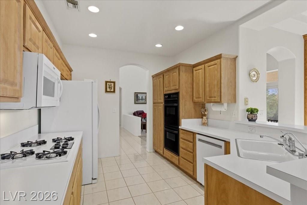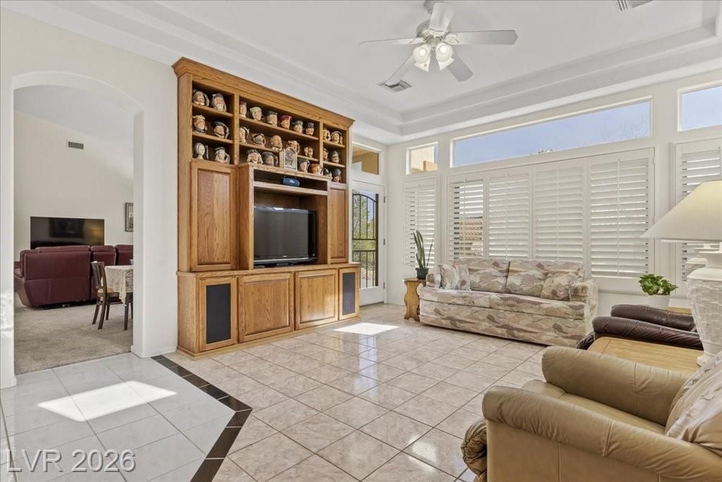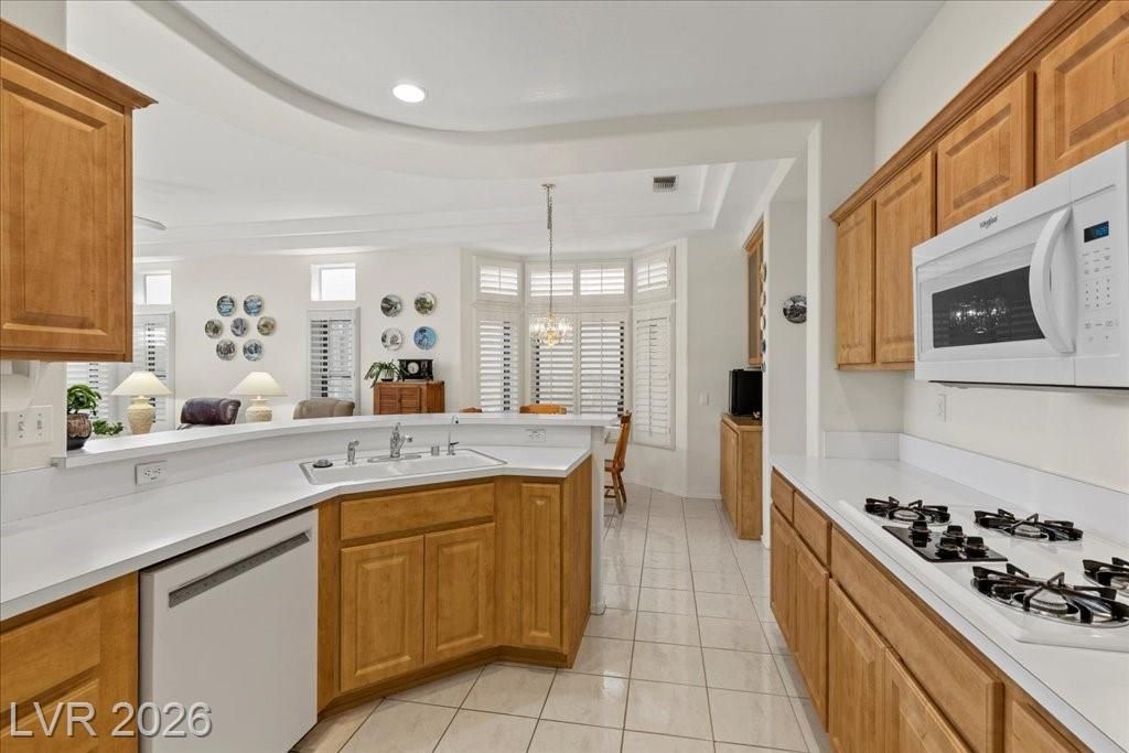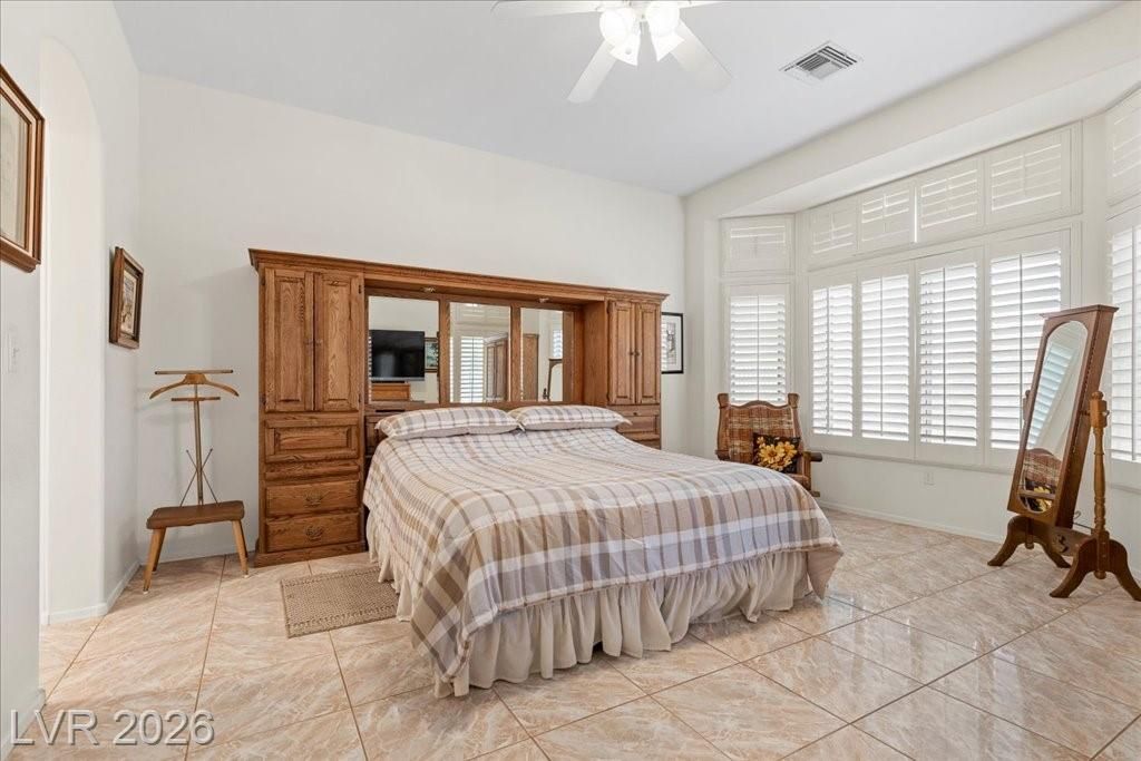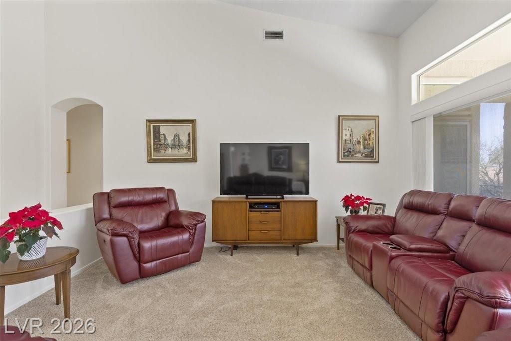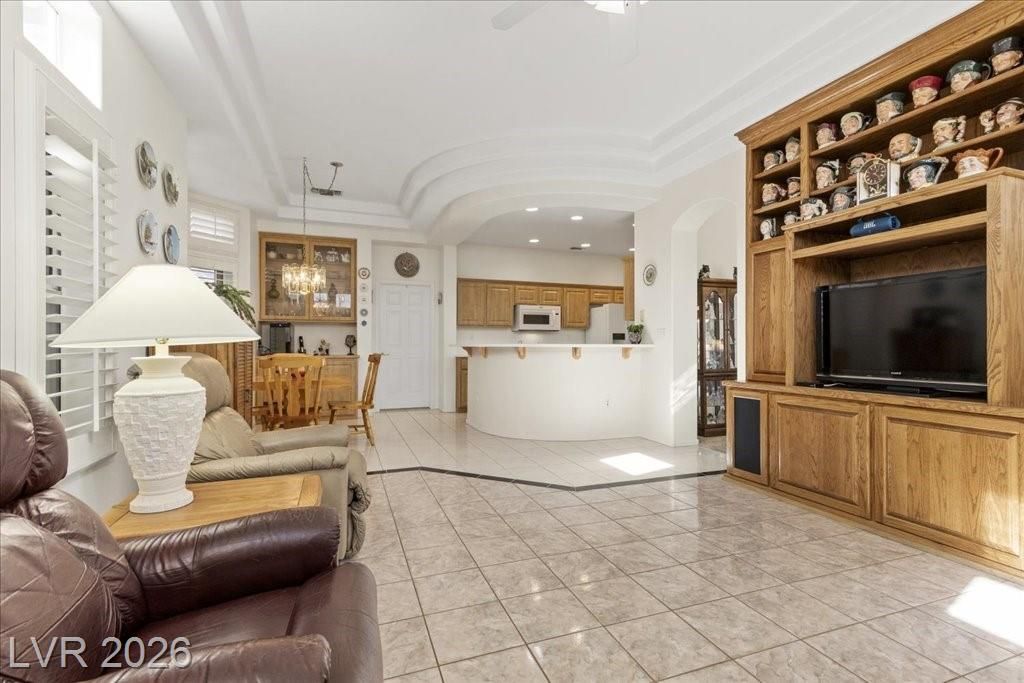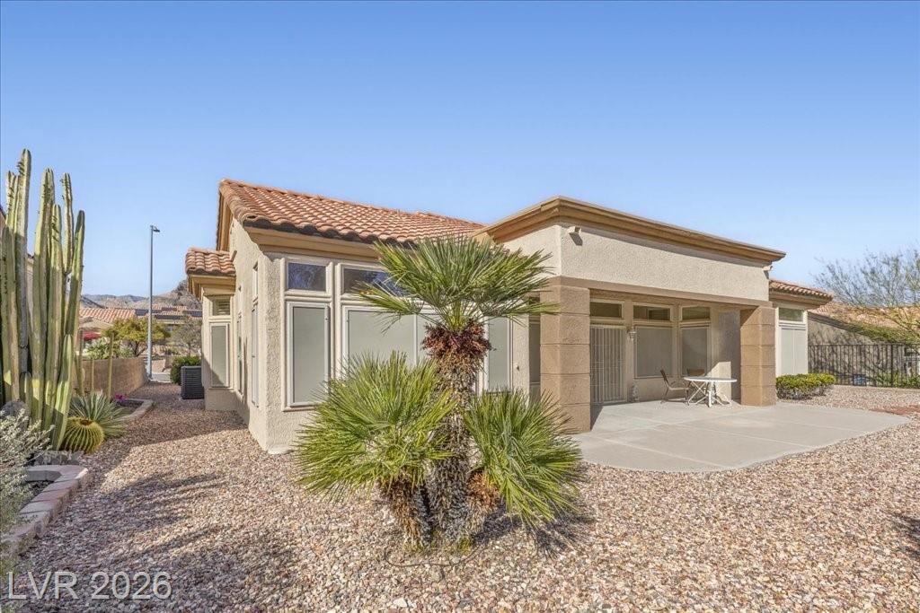 Located in Sun City Summerlin, with a brand new roof, 2 yr old AC, and redone plumbing this is one of Las Vegas’ premier 55+ communities.This well-maintained 3-bd home offers generous space.The home features 2 oversized family rooms. The large primary suite serves as a private retreat. A separate laundry room adds everyday convenience and functionality.The kitchen includes double ovens and pull-out shelving for ease and accessibility. Secondary bedrooms offer versatility with built-in cabinetry in one room, and a Murphy bed in another, making it easy to accommodate visitors without sacrificing space. Plantation shutters in select areas add both style and privacy.As a resident of Sun City Summerlin, you’ll enjoy access to golf courses, fitness centers, pools, walking trails, social clubs, and a full calendar of community activities designed to support an active, independent lifestyle.