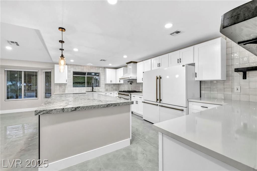 Welcome to this beautifully renovated 2,115 sq ft single-story home offering sweeping 130-degree golf course views in the highly desirable 55+ community of Sun City Summerlin. Designed with both style and entertaining in mind, this modern, move-in-ready home features an open, flowing layout perfect for hosting gatherings of any size.Inside, the home showcases upgraded flooring, fresh paint, and elegant finishes that create a bright, inviting atmosphere. The fully remodeled kitchen is a true centerpiece—featuring high-end Italian appliances, including a show-stopping 60-inch refrigerator, sleek modern cabinetry, and spacious countertops ideal for cooking, serving, and socializing. The open-concept design allows conversations to flow effortlessly from the kitchen to the living and dining areas, making it a perfect setup for entertaining.Generously sized bedrooms and beautifully updated bathrooms offer comfort and style. Schedule a showing today!