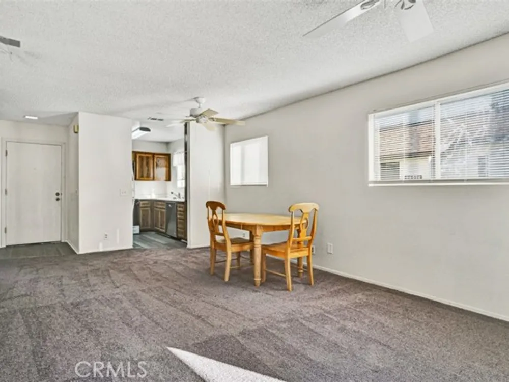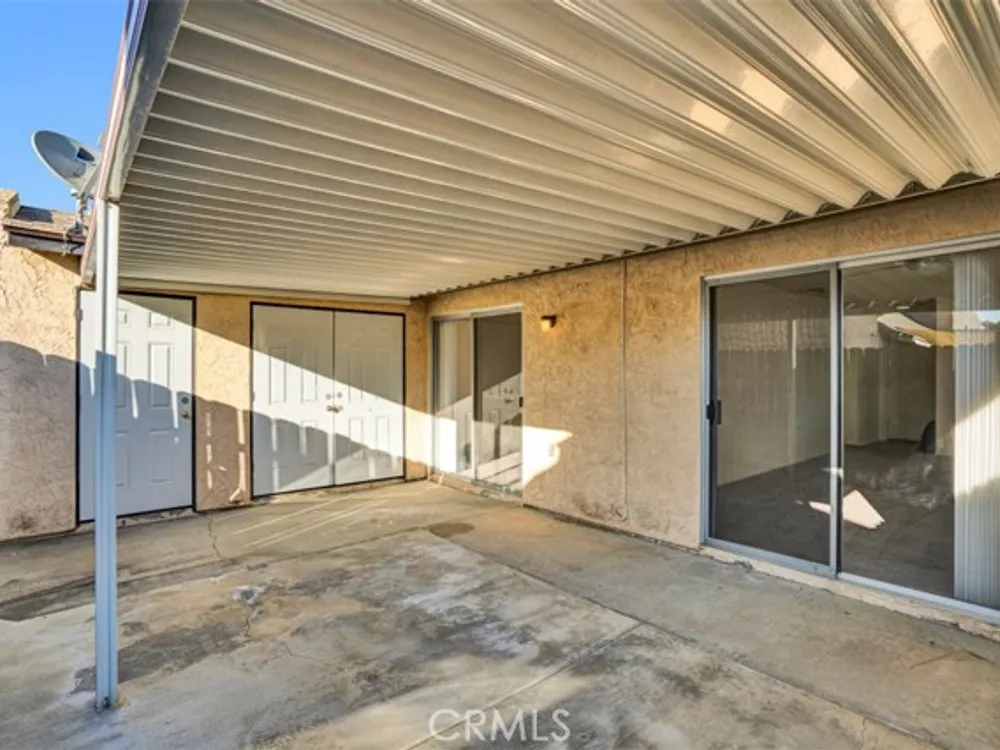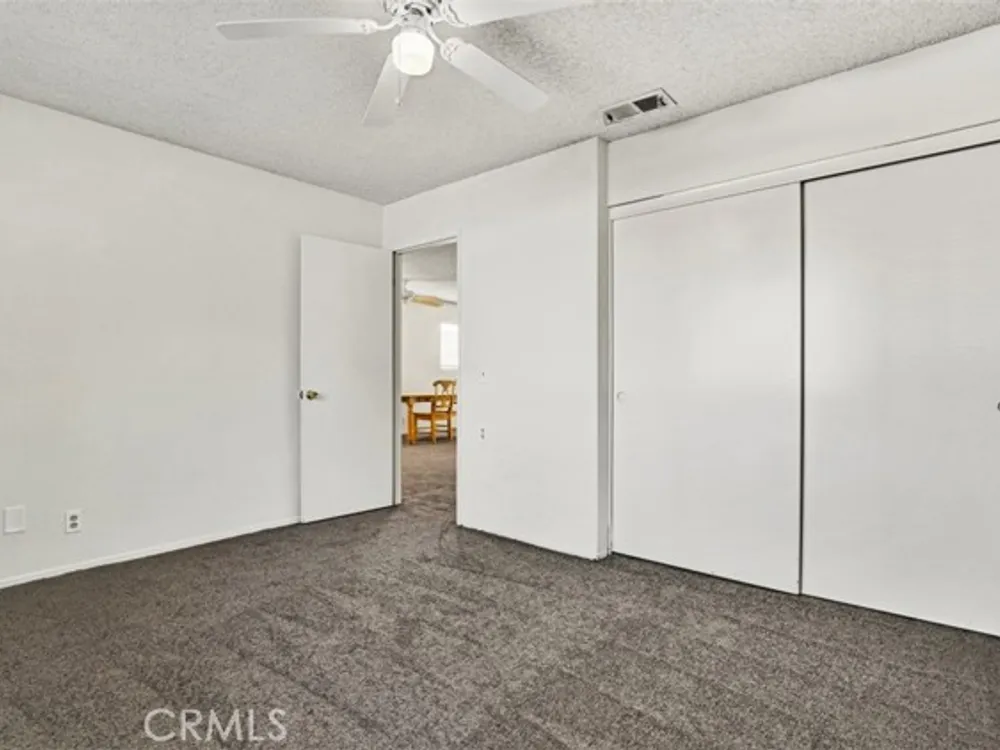 Welcome to Rancho Del Sol, a well-maintained 55+ community offering comfort and convenience. This beautifully updated 2-bedroom, 1-bath home features brand-new carpet and vinyl flooring, fresh finishes, and ceiling fans in every room. The open layout makes the home feel bright and inviting, while the single-level design provides easy accessibility. The kitchen and living areas flow seamlessly to the private backyard, which is fully fenced with a wood perimeter and finished in low-maintenance concrete, perfect for relaxing or entertaining under the covered patio. A detached one-car garage adds convenience and extra storage. Rancho Del Sol residents enjoy a peaceful setting close to local shopping, dining, and easy freeway access, offering both comfort and connection. Move-in ready and freshly remodeled, this home combines simplicity and privacy in one of the area's most desirable 55+ communities.
