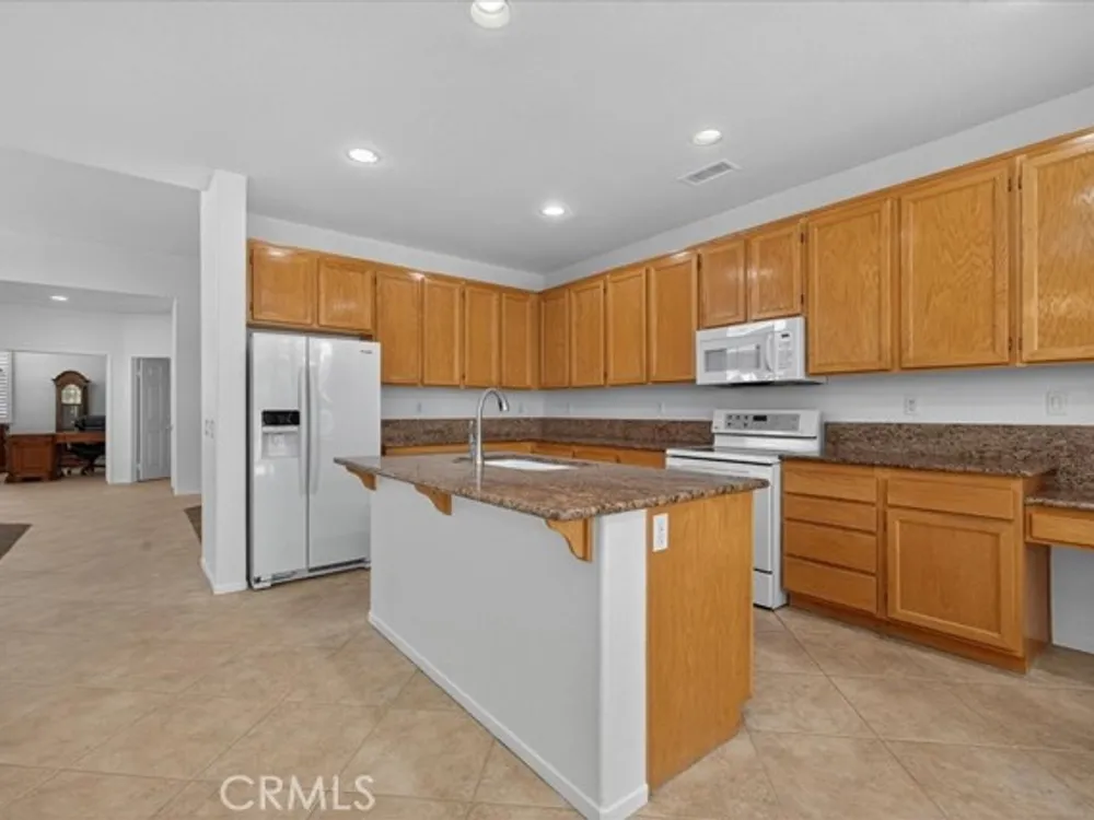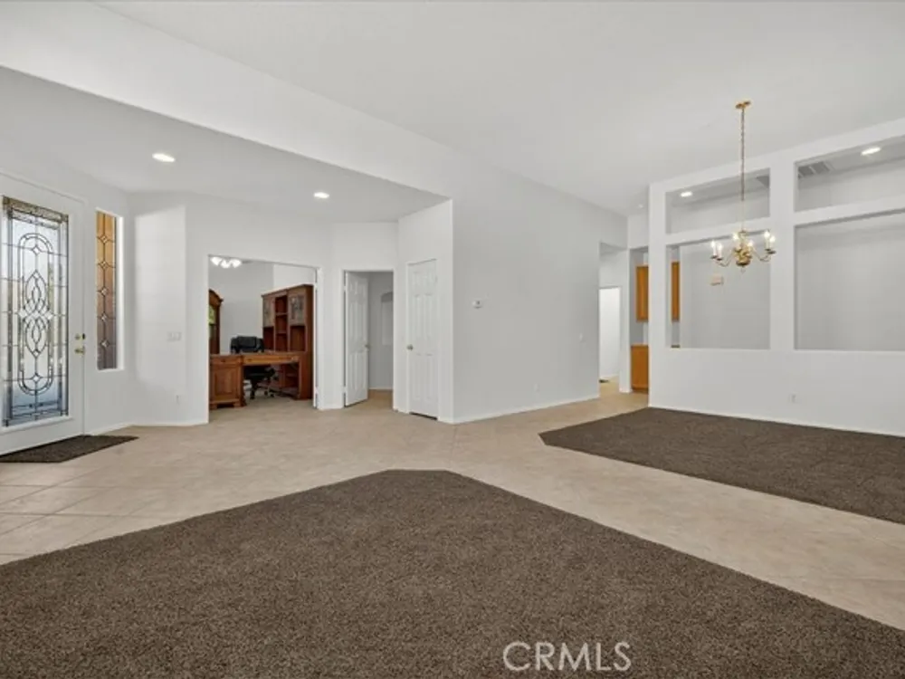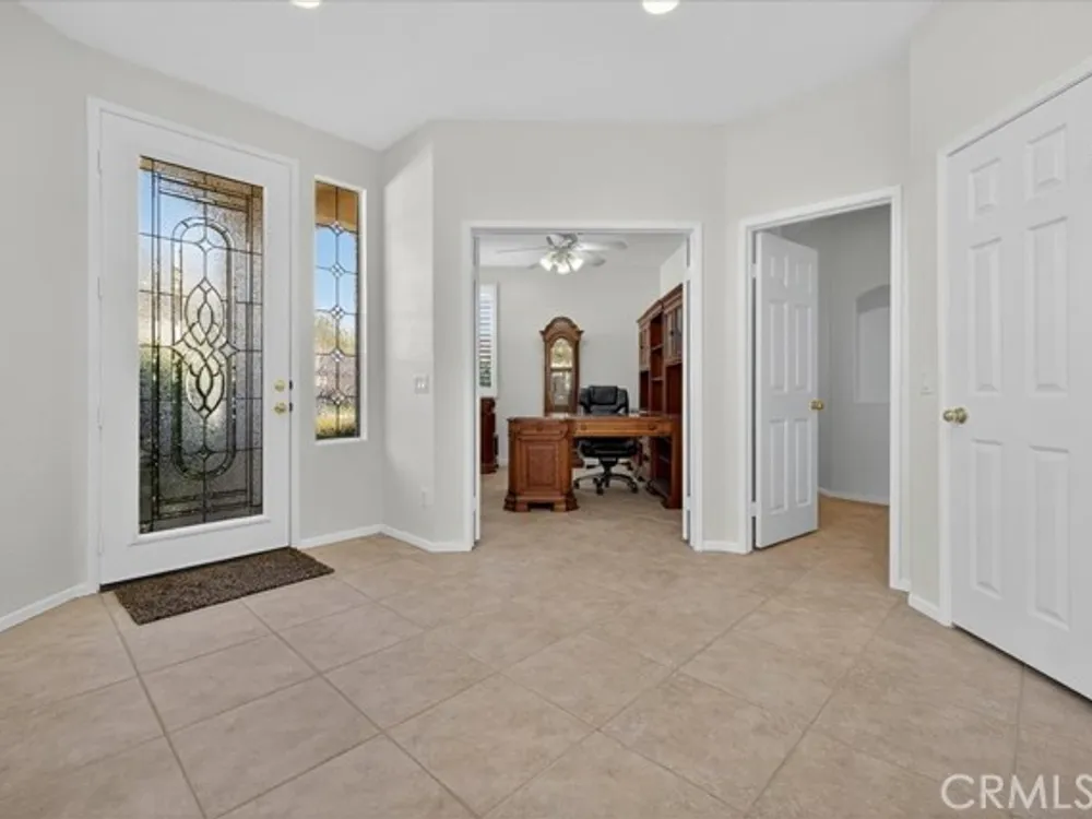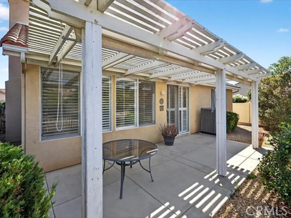 Located in the Oasis 55+ guard gated resort style community, this residence blends comfort, elegance, and lifestyle. Boasting 2,085 sq ft of living space on a 5,663 sq ft lot, this home offers 2 bedrooms, 2.5 baths, and an attached 2-car garage. Step inside to discover a spacious, light-filled layout with vaulted ceilings and an open concept living/dining area. A cozy fireplace adds warmth and charm to the great room. The kitchen is ideal for entertaining, with ample cabinetry and counter space (with the potential for modern upgrades). The primary suite features a suite bath and generous closet space, while the second bedroom and bath provide comfortable accommodation for guests. Third room was used as an office and can be used as a bedroom. Outside, the yard invites you to relax beneath a covered patio, with room for outdoor living and enjoying the sunshine in privacy. The location in the Oasis community affords access to numerous amenities: clubhouse, pool and spa. It is conveniently located near shopping, dining, medical services, and freeway access. Don't miss this opportunity in the heart of Menifee's sought-after 55+ community.