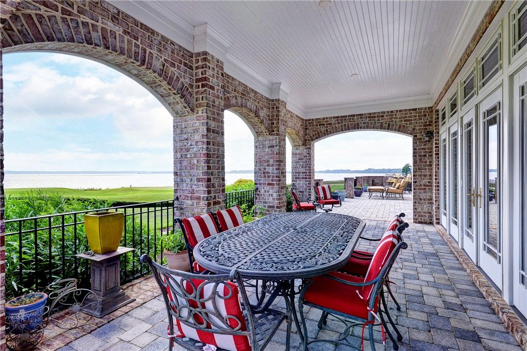 Simply extraordinary. Iconic in presence and unmatched in setting, this architecturally designed Jacobean-style estate is the crown jewel of Governor’s Land. Perfectly positioned on a premier lot with pinnacle water views of the confluence of the James and Chickahominy Rivers—and overlooking the 17th tee and fairway of the Two Rivers Country Club—this landmark residence dazzles with splendor and sophistication. It is as breathtaking inside as it is outside. Offering 8,493 square feet, the home features four spacious bedrooms with en suite baths, a sunroom, a study with wet bar, a billiards room, a large bonus room, and a full basement with a wine cellar and tasting room. Exquisite craftsmanship is showcased in the coffered ceilings, coved hall moldings, leaded glass doors, and floors of reclaimed pine and rich cherry hardwoods. Additional highlights include an elevator, an oversized three-car garage, walk-up attic, and cedar closet. Outdoor living is unparalleled with two covered verandas, a screened porch, and an expansive patio—all perfectly positioned to capture the spectacular river and golf views. This is the essence of quality, architectural vision, and luxury living.
