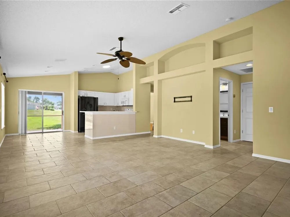 - Ceiling Fan(s), Kitchen/Family Room Combo, Open Floorplan, Main Level Primary, Solid Surface Counters, Thermostat, Walk-In Closet(s), Window Treatments
