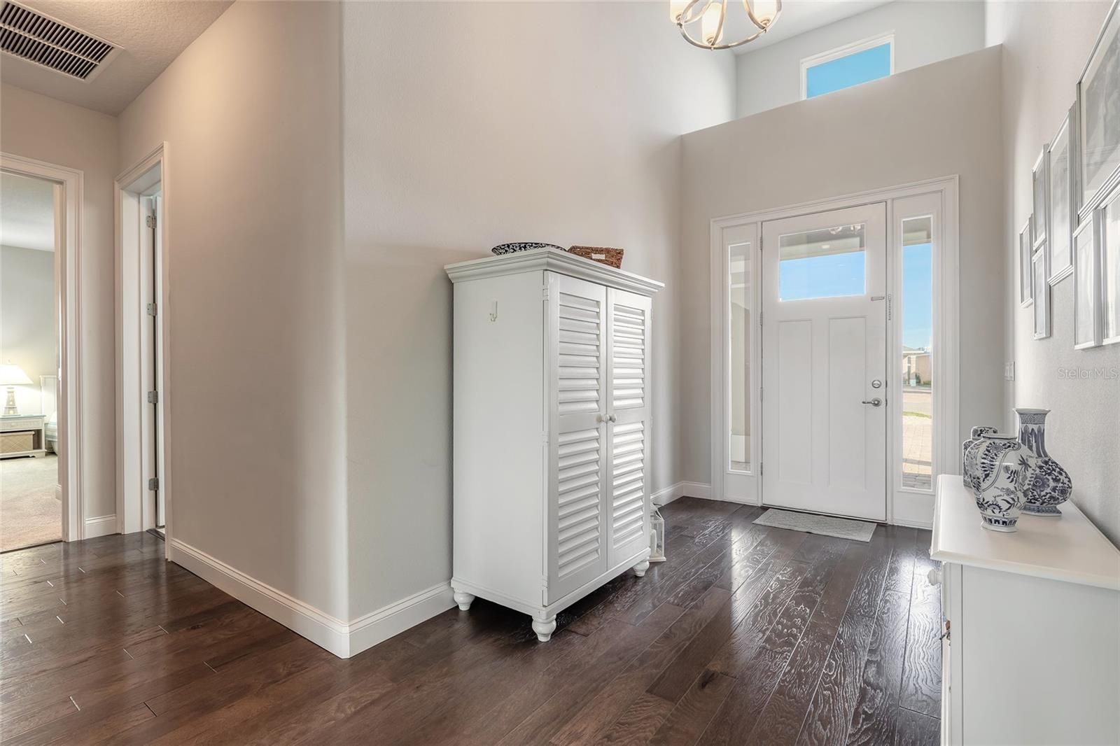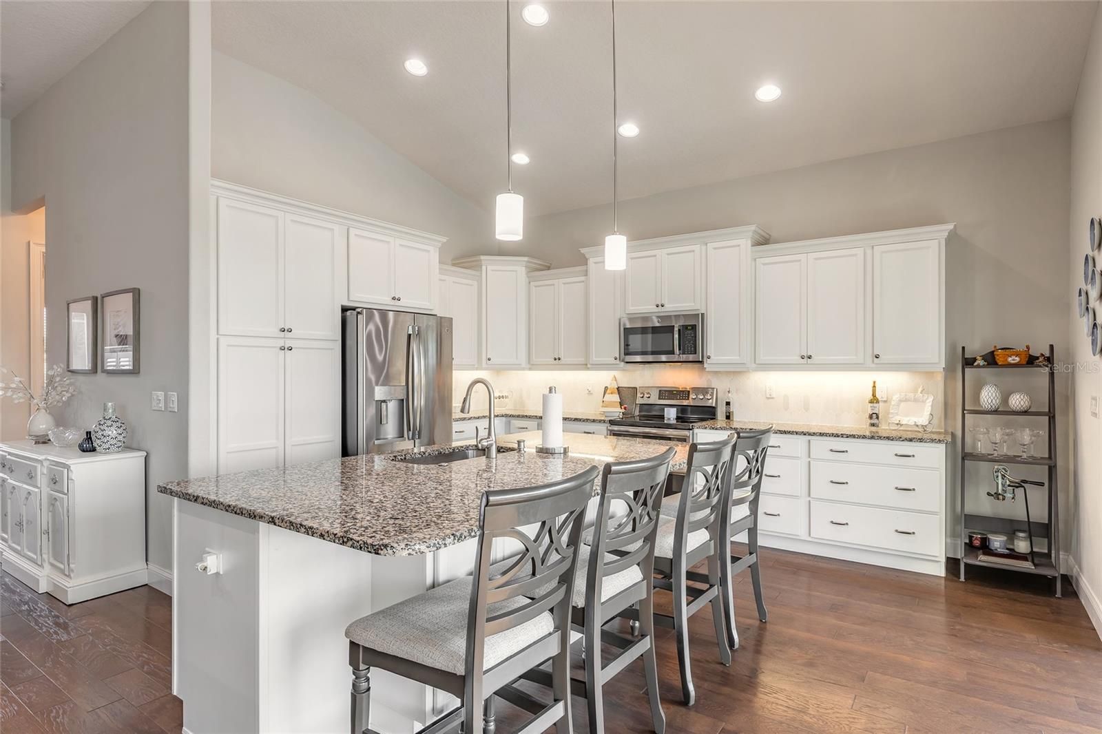 Welcome to 2929 Bella Flore, a meticulously maintained, move-in ready home nestled in a gated golf course community. This stunning 3 bedroom, 3-bath 3 car garage residence features a spacious open layout with wood tile throughout the main living areas, soaring 16-foot ceilings in the foyer, and 12-foot ceilings in the primary living spaces. The chef’s kitchen boasts white cabinetry, granite countertops, and overlooks the expansive living area. The primary suite is a luxurious retreat with a tray ceiling, double sinks, a walk-in shower, and a walk-in closet. The two additional bedrooms both feature their own private bath. Enjoy Florida living at its finest with a screened heated pool, a spacious lanai overlooking the 18th fairway. Additional features include 8-foot doors, a mini split AC system in garage, a spacious laundry room with desk area, and lush, manicured landscaping.
