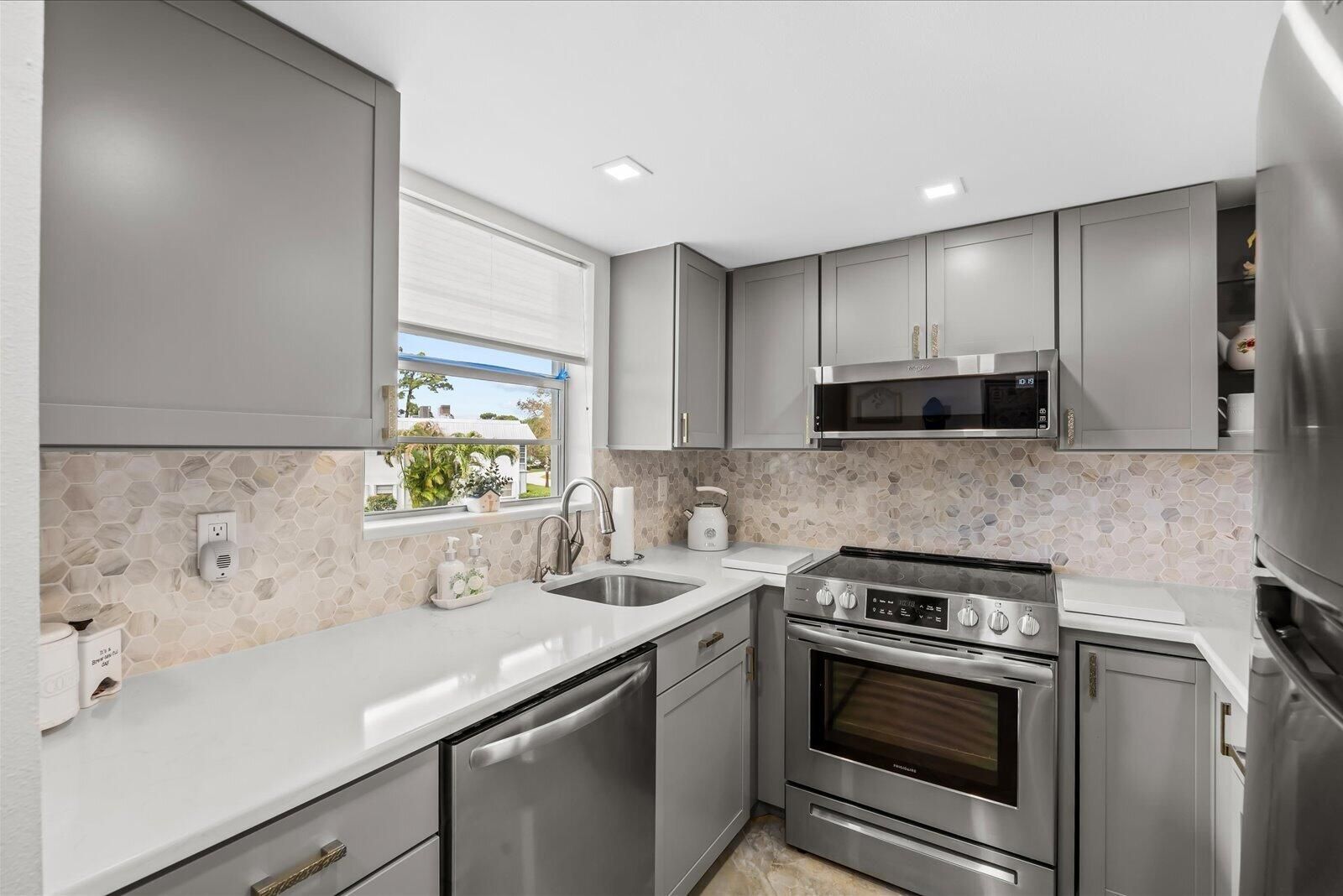 Priced to Sell! Premium Location, Immaculate Condition + Outstanding Value! Discover this Fully Furnished & Turnkey second Floor Apt. Home with a private & peaceful garden view. New Kitchen Cabinetry, New Stainless Steel Appliances, New Quartz Countertops, New Lighting, Newer Entry Door PLUS Newer Bathrooms. The Interior is welcoming & offers warm & neutral paint tones throughout. AC is 2016 & Water Heater is 2018. Fully Included in your Condo Dues are Fiber Optic WIFI, Cable, Water, Sewer, Building Insurance, Lawn Maintenance & a Community Pool with Clubhouse & social activities. Access to a washer, dryer & private storage is close by. Great & Convenient Location to Historic Downtown Stuart including Boutique Shoppes, Cafes, the Lyric Theater & the scenic Riverwalk along the St. Lucie Riv