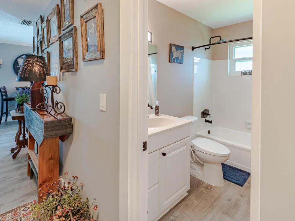 Beautifully updated 2BD/2BA corner unit with IMPACT windows and a stylish impact front door! Move right in and enjoy easy living with new vinyl flooring, modern ceiling fans, and refreshed bathroom fixtures. Relax on your private Florida room/balcony overlooking green space. Includes a spacious personal storage unit and convenient laundry on the same floor. Just a short stroll to the sparkling pool and vibrant 55+ clubhouse! Condo association covers cable, water, sewer, roof, insurance & landscaping. No lease first 2 years. Prime location near Downtown Stuart & the beach!