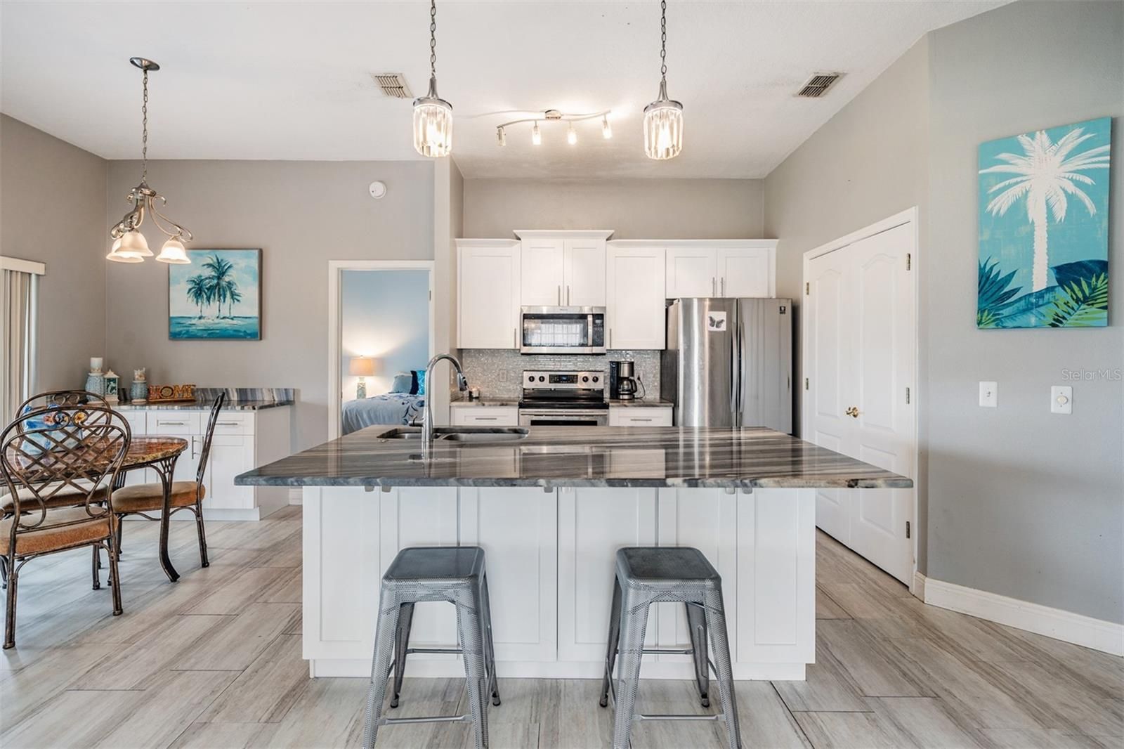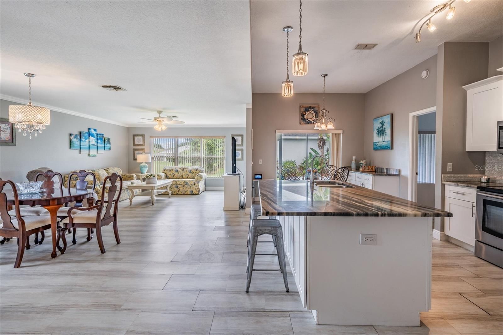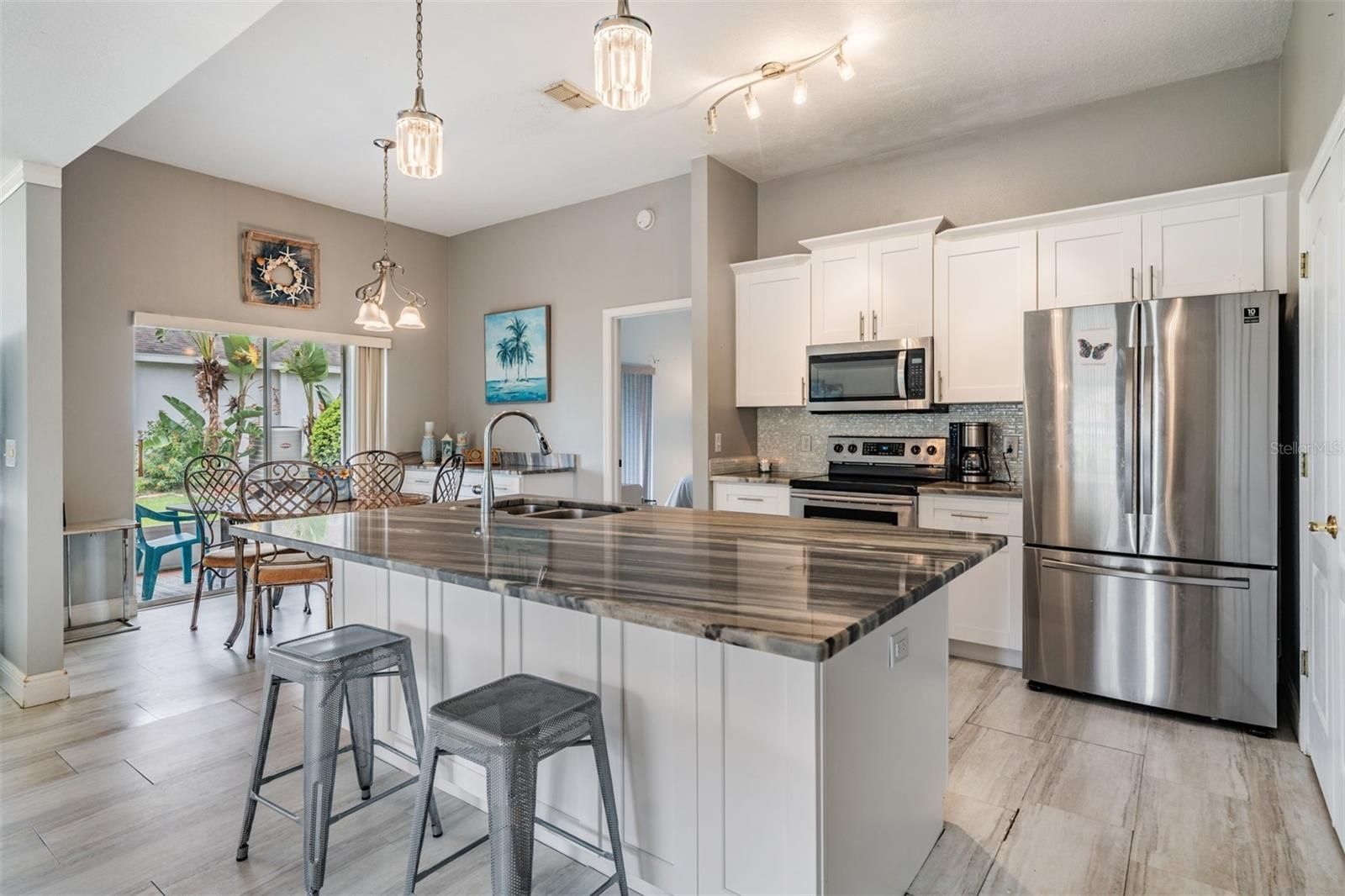 SELLER MOTIVATED! Welcome to your MOVE IN ready, maintenance-free Villa located in the desirable 55+ community of Tampa Bay Golf & Tennis Club! This charming 3-bedroom, 2-bath, 2-car garage VILLA offers casual elegance with a coastal blend of comfort and Florida lifestyle. Enjoy peaceful mornings and tranquil evenings from your screened-in and covered lanai, featuring a beautiful private view of a serene pond and lush conservation area beyond. Inside, you'll find luxury vinyl plank floors throughout the common areas in this Light, Bright and OPEN concept home... 3rd bedroom is currently set up as a den. RENOVATED kitchen has Granite Center Island and is Open to the living and dining room areas, with a separate eat-in dinette area adjacent to a kitchen for informal meals, overlooking the pond! Kitchen is outfitted with oak cabinetry, custom Granite counters, tasteful coordinating backsplash and updated Stainless Steel appliiances. The home is well-equipped with all the essentials including a newer ROOF 2021, 40 gallon AO Smith Water heater 2023, Goodman A/C unit 2015, Samsung French door refrigerator 2021, smooth top stove, 2018 microwave, 2023 Whirpool dishwasher, disposal, garage door opener, ceiling fans, and all existing window treatments. Practical touches such as an interior laundry room with washer and dryer plus room for additional storage and the attached spacious 2 car garage all add to the appeal. This home is being offered As Is for seller convenience and furnishings are negotiable. Lawncare is included in the HOA so you will have plenty of time to Enjoy the Florida Lifestyle in this GATED Community, Just off I 75, for easy access to Tampa, St Pete, Ocala, Orlando, Wesley Chapel, Airports and the Beaches! As a resident, you'll have access to an impressive array of amenities, including a championship 18-hole golf course, a 9-hole executive course, two community pools, heated spa, tennis courts, pickleball courts, state of the art fitness center, activities center, clubhouse with ballroom and banquet facilities a full-service restaurant and pub bar/grill overlooking golf course, library with computer access, billiards, shuffleboard, horseshoe pits, two dog parks, onsite entertainment, travel excursions plus countless clubs and activities onsite. Basic cable with 2 cable boxes, high speed wifi/internet and lawncare included in HOA with NO CDD fees in this community. Whether you're looking for relaxation or recreation, this vibrant community offers it all. Don’t miss the opportunity to own your piece of the Florida lifestyle today! CALL TODAY!