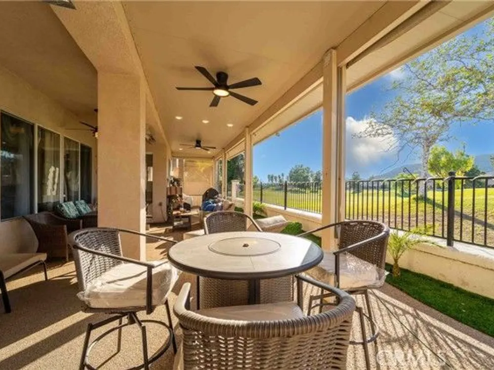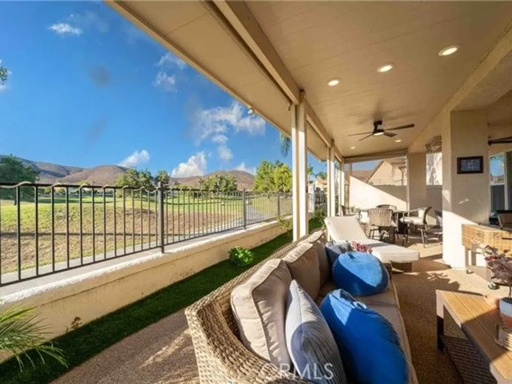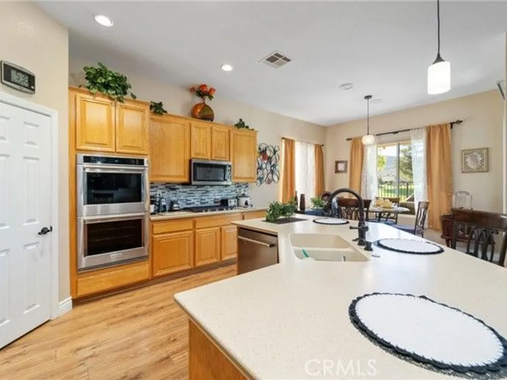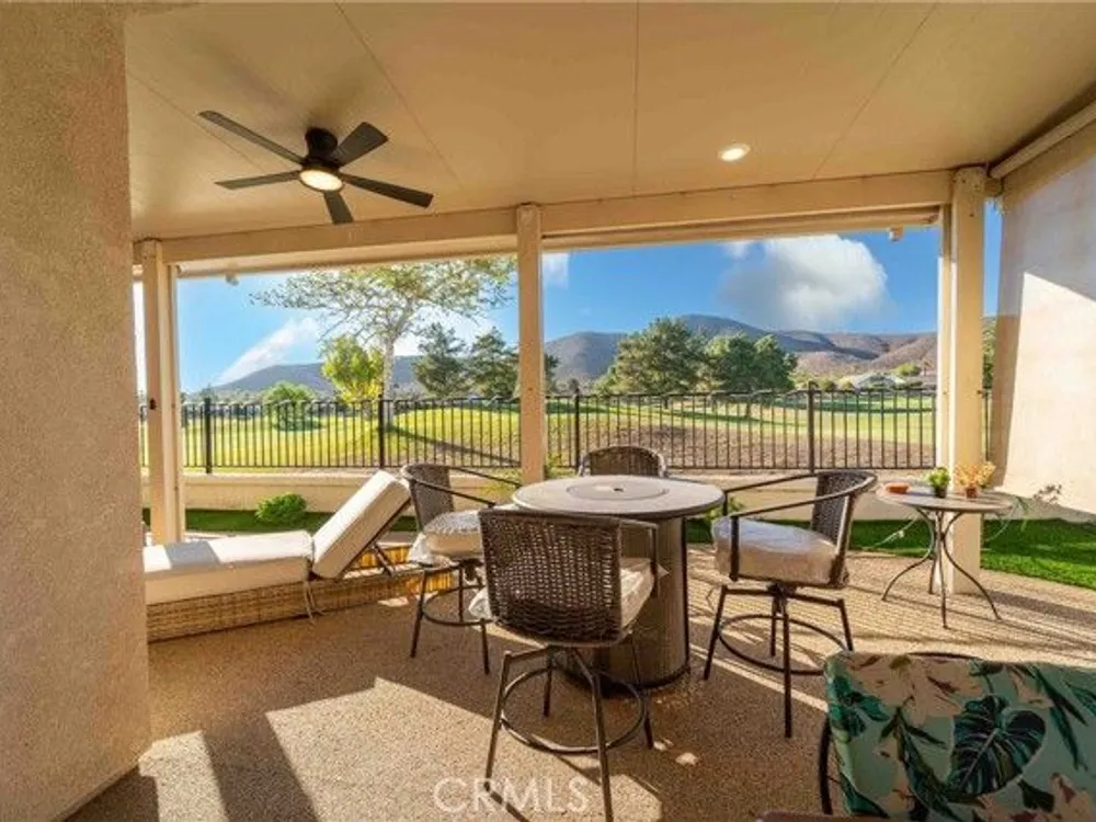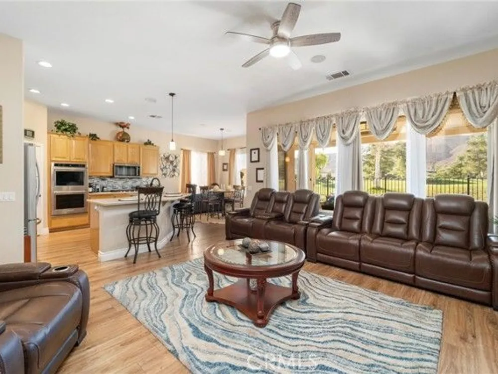 Your Oasis within the Oasis!! Agents, bring your buyers to view this stunning golf course view home in the prestigious 55+ guard-gated community of The Oasis. From the moment you drive through the beautifully manicured entrance, you’ll feel the pride of ownership in every detail—from the lush landscaping to the wide, pristine streets. This spacious 2,457 sq. ft. residence boasts 3 bedrooms, 3 bathrooms, a grand turret-style entry, formal dining room with custom built-ins, living room, family room, and a generous indoor laundry with sink and gas/electric hookups. The open-concept chef’s kitchen is a dream, featuring a professional 5-burner gas range, double ovens, microwave, and a walk-in pantry, seamlessly flowing into the breakfast nook and cozy family room with a fireplace. Step outside to your private backyard retreat, overlooking the 14th hole green. Entertain year-round on the PebbleTec patio with ceiling fans, retractable shade screens, and captivating golf course views. The primary suite offers custom designer closet cabinetry, and every bedroom is enhanced with ceiling fans for comfort. The garage includes an additional parking bay for your golf cart, making it easy to enjoy the community’s championship course. The impressive clubhouse offers an array of amenities to embrace your active and social lifestyle, including sparkling pools, billiards, a fitness center, and more. Don’t miss this rare opportunity to own in one of the area’s most sought-after active adult communities! Call and schedule your private showing today before it’s gone!