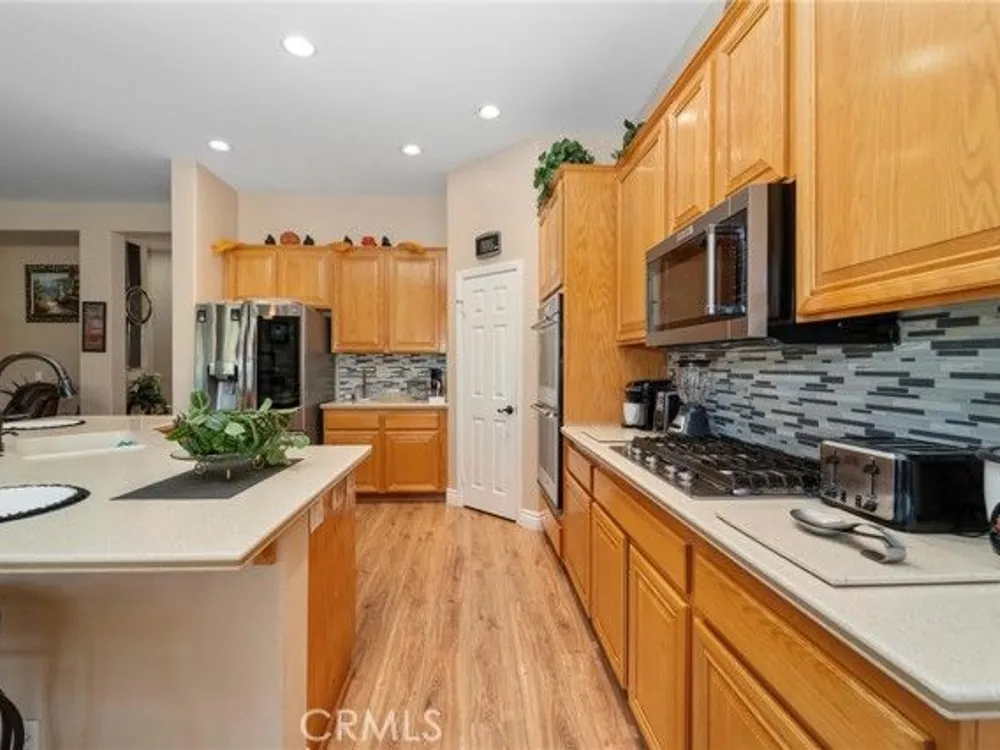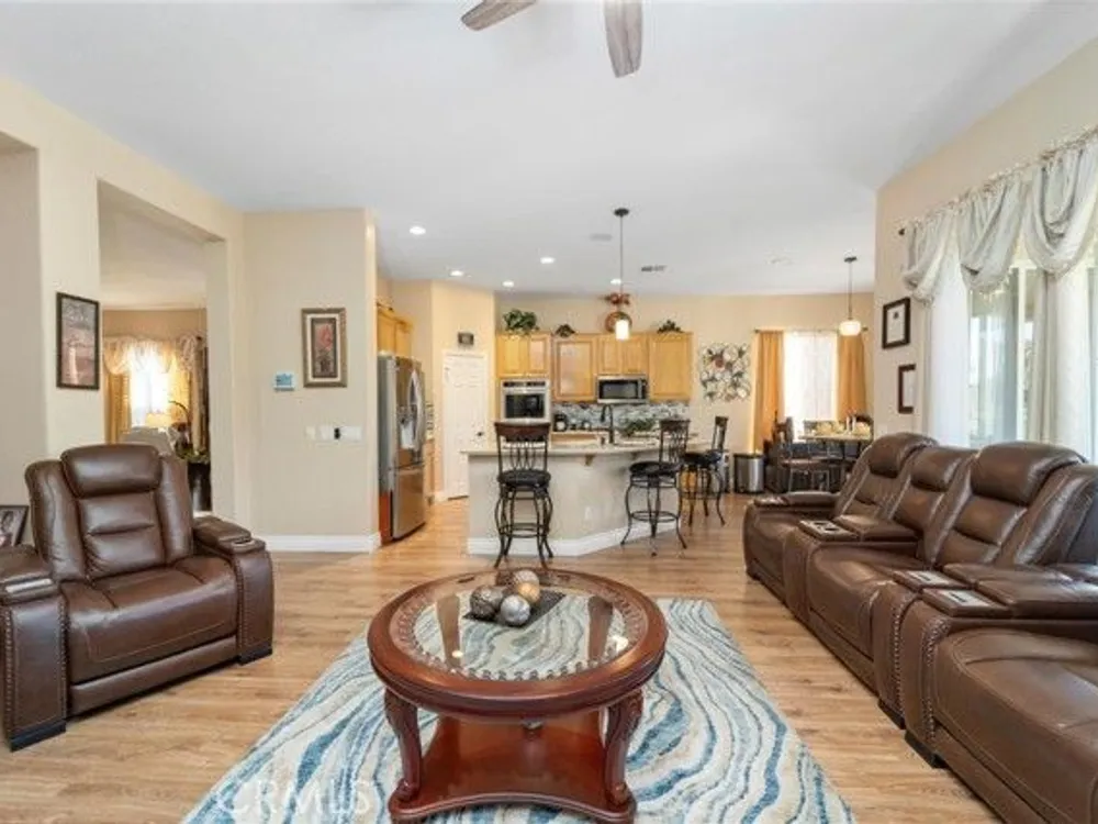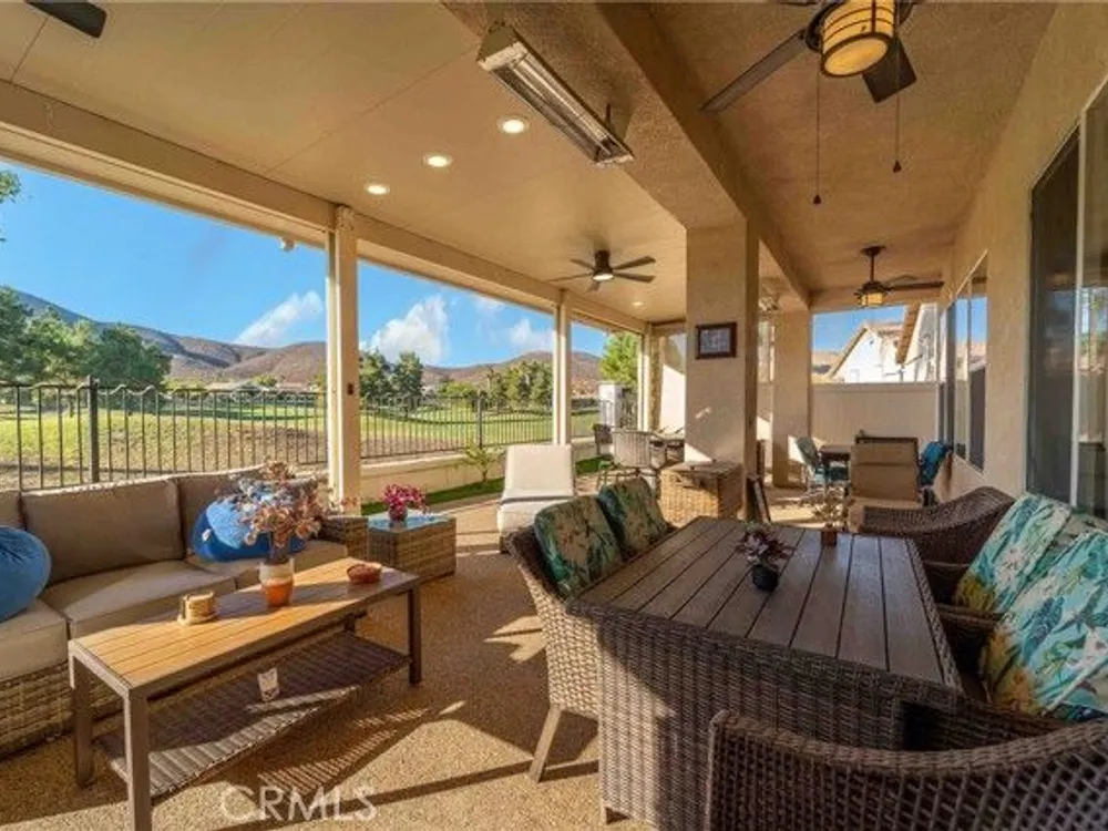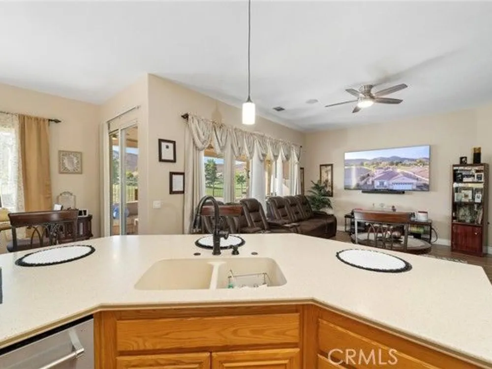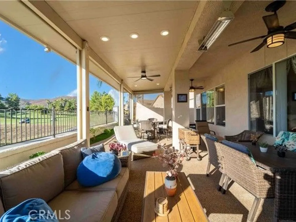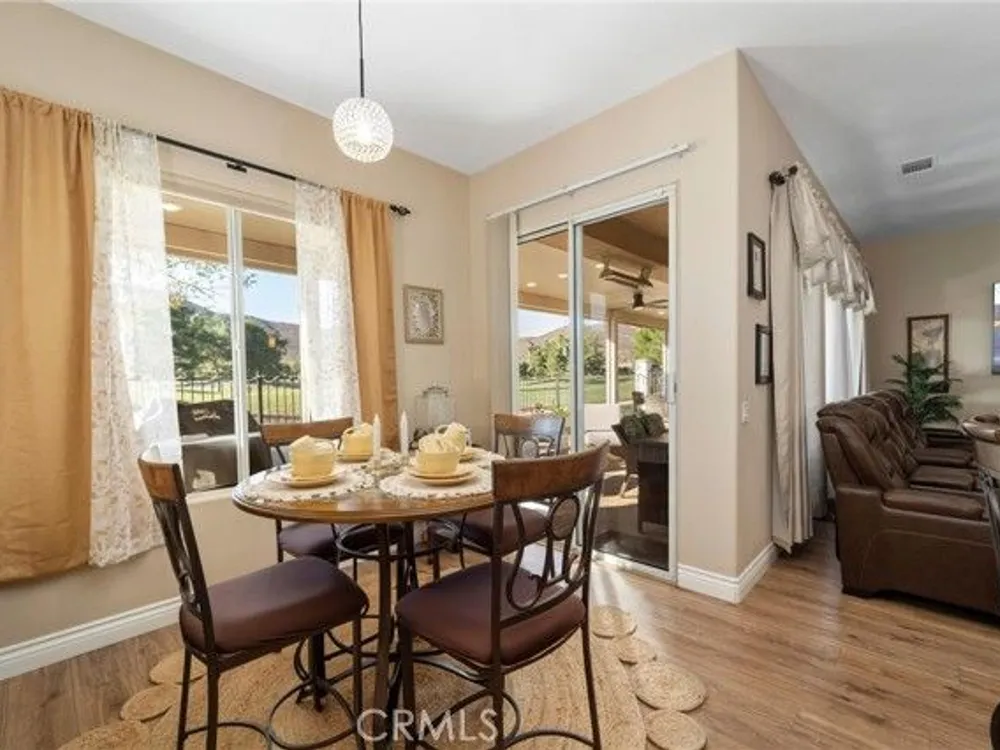 Your Oasis within the Oasis!! Agents, bring your buyers to view this stunning golf course view home in the prestigious 55+ guard-gated community of The Oasis. From the moment you drive through the beautifully manicured entrance, you’ll feel the pride of ownership in every detail—from the lush landscaping to the wide, pristine streets. This spacious 2,457 sq. ft. residence boasts 3 bedrooms, 3 bathrooms, a grand turret-style entry, formal dining room with custom built-ins, living room, family room, and a generous indoor laundry with sink and gas/electric hookups. The open-concept chef’s kitchen is a dream, featuring a professional 5-burner gas range, double ovens, microwave, and a walk-in pantry, seamlessly flowing into the breakfast nook and cozy family room with a fireplace. Step outside to your private backyard retreat, overlooking the 14th hole green. Entertain year-round on the PebbleTec patio with ceiling fans, retractable shade screens, and captivating golf course views. The primary suite offers custom designer closet cabinetry, and every bedroom is enhanced with ceiling fans for comfort. The garage includes an additional parking bay for your golf cart, making it easy to enjoy the community’s championship course. The impressive clubhouse offers an array of amenities to embrace your active and social lifestyle, including sparkling pools, billiards, a fitness center, and more. Don’t miss this rare opportunity to own in one of the area’s most sought-after active adult communities! Call and schedule your private showing today before it’s gone!