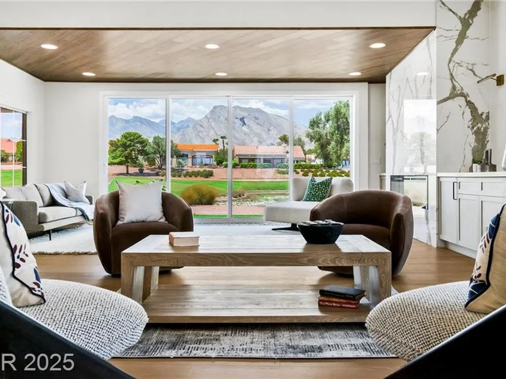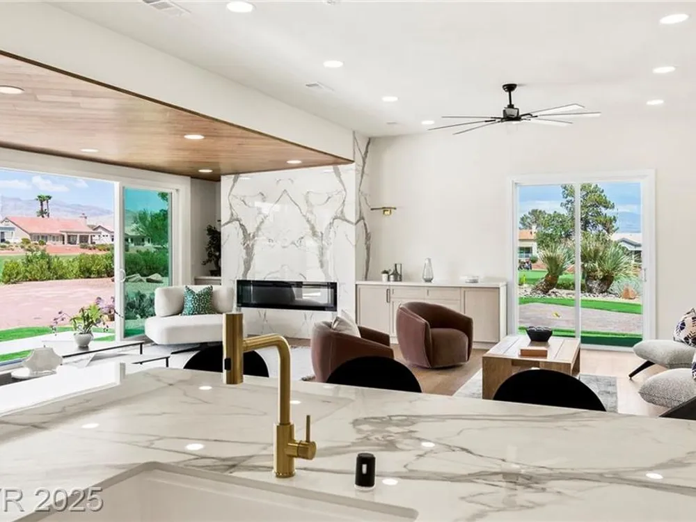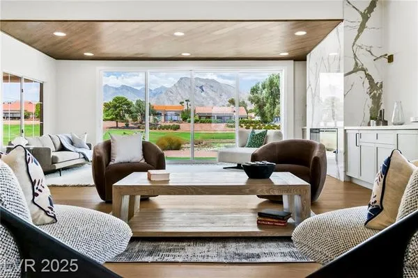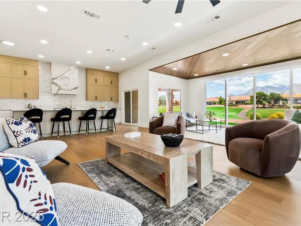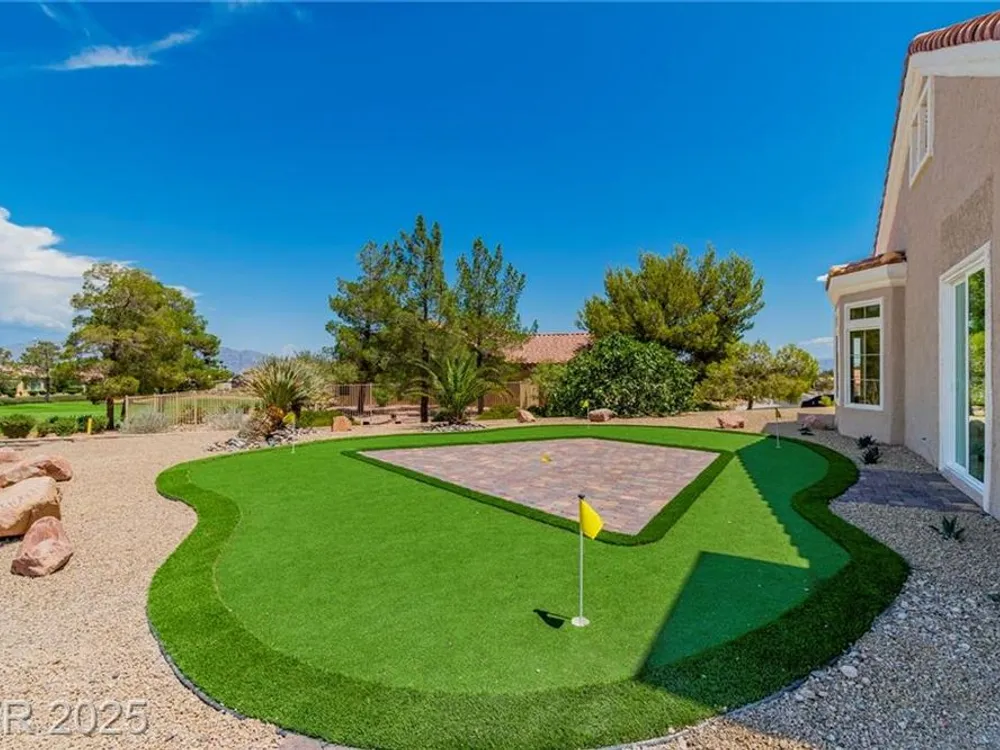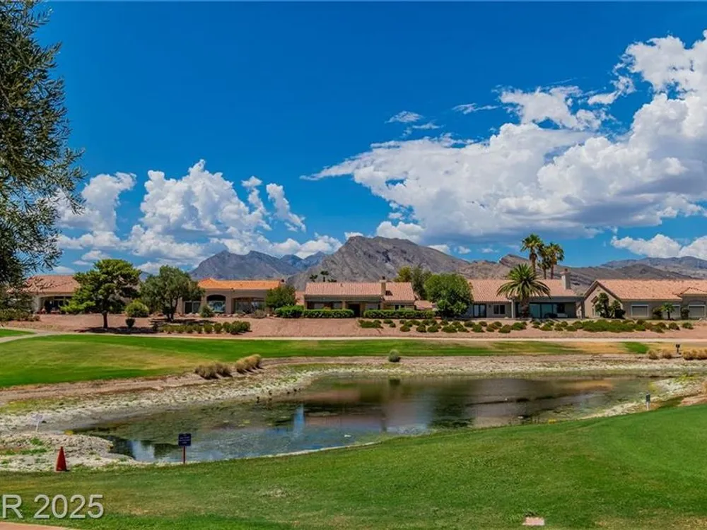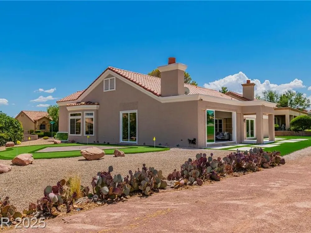 Experience luxury living in this one-of-a-kind, fully renovated single-story gem in Sun City Summerlin. Boasting hardwood floors, custom white oak cabinets, and top designer finishes, this home is truly unparalleled. Enjoy breathtaking mountain and pond views from your backyard, overlooking two golf course holes and featuring a private putt-putt green. The primary suite offers separate his-and-hers showers and closets for ultimate comfort. With new sliding doors and windows, this masterpiece seamlessly blends indoor elegance with outdoor serenity. Don’t miss it!