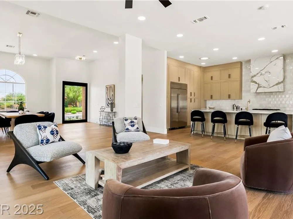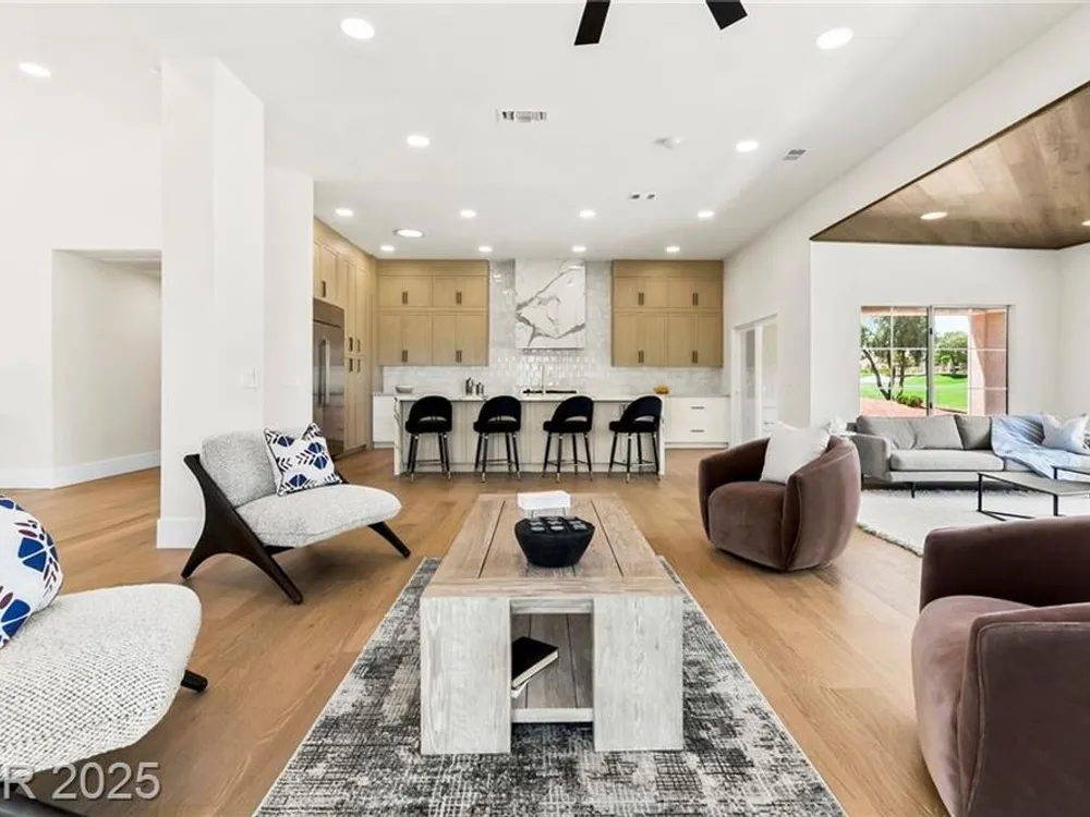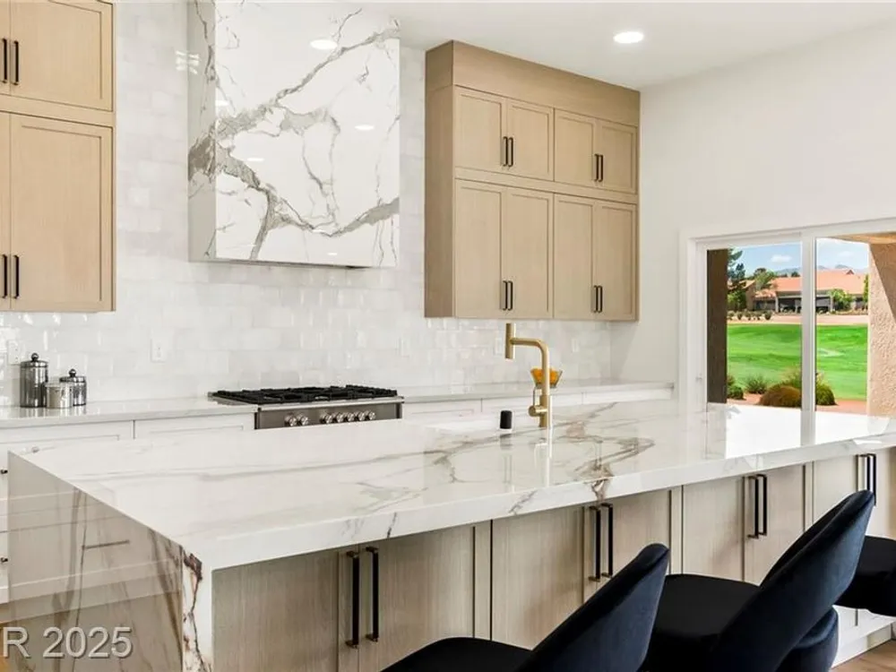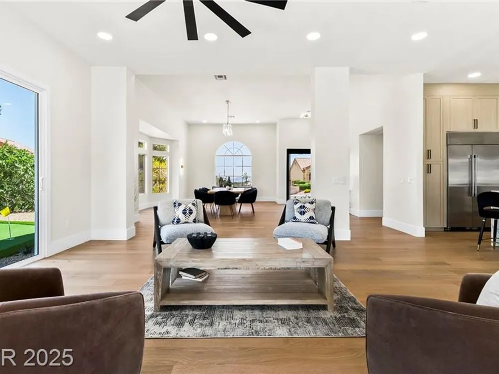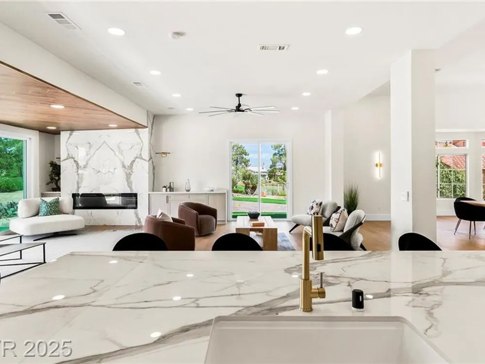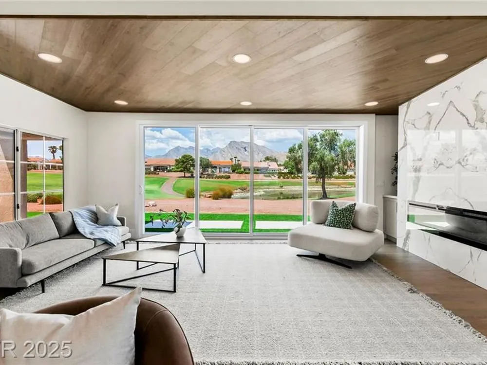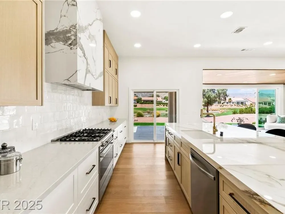 Experience luxury living in this one-of-a-kind, fully renovated single-story gem in Sun City Summerlin. Boasting hardwood floors, custom white oak cabinets, and top designer finishes, this home is truly unparalleled. Enjoy breathtaking mountain and pond views from your backyard, overlooking two golf course holes and featuring a private putt-putt green. The primary suite offers separate his-and-hers showers and closets for ultimate comfort. With new sliding doors and windows, this masterpiece seamlessly blends indoor elegance with outdoor serenity. Don’t miss it!