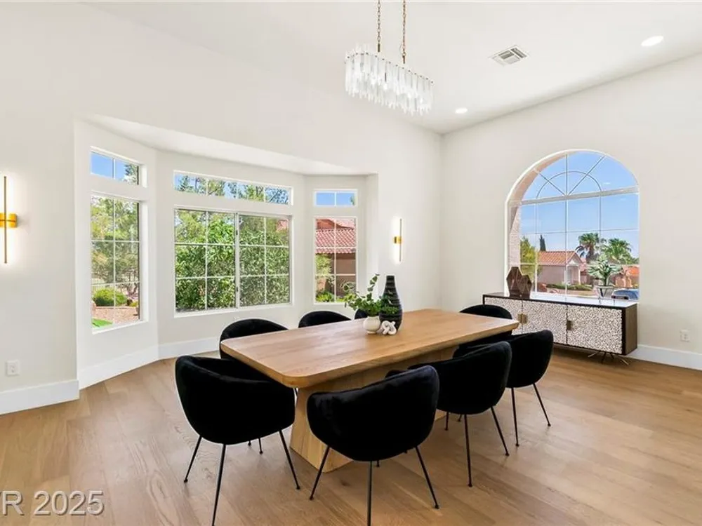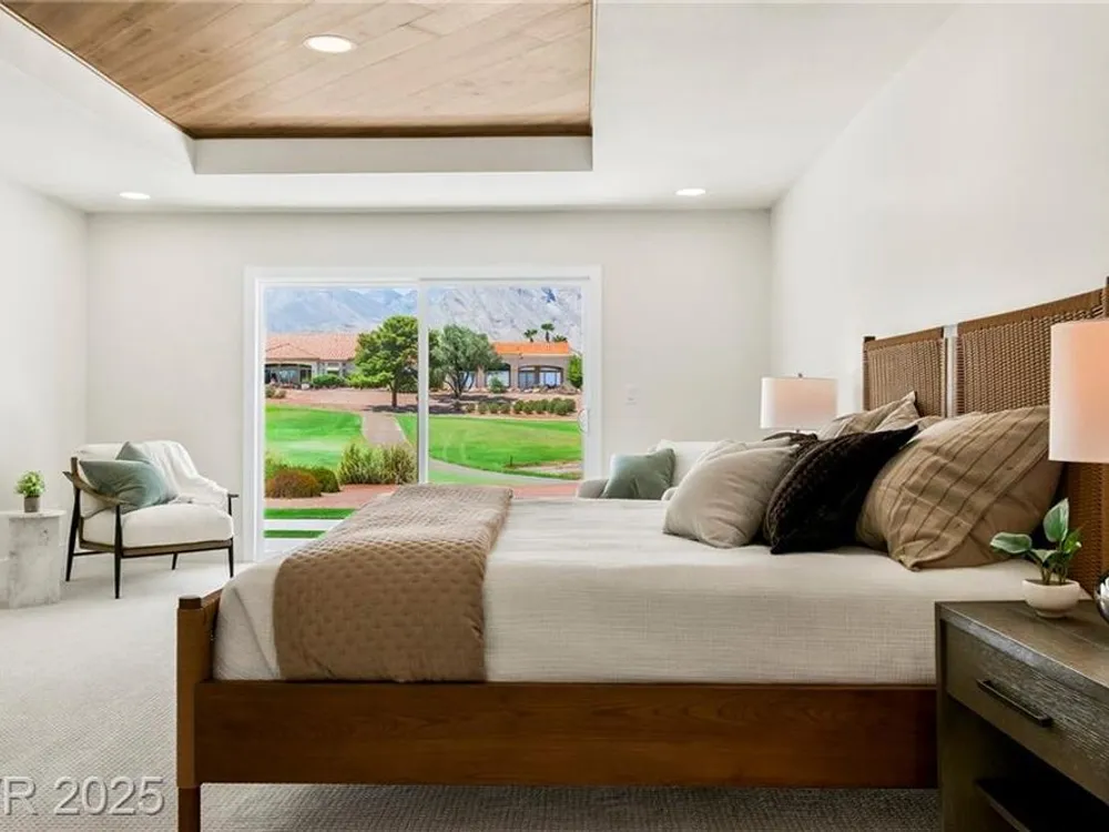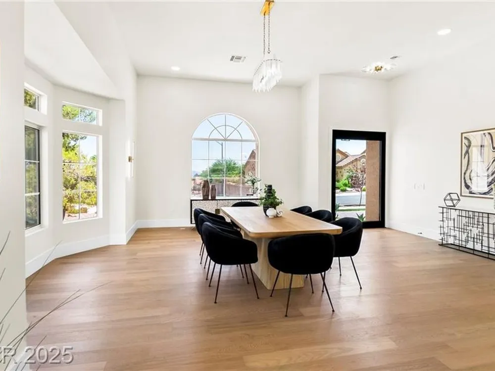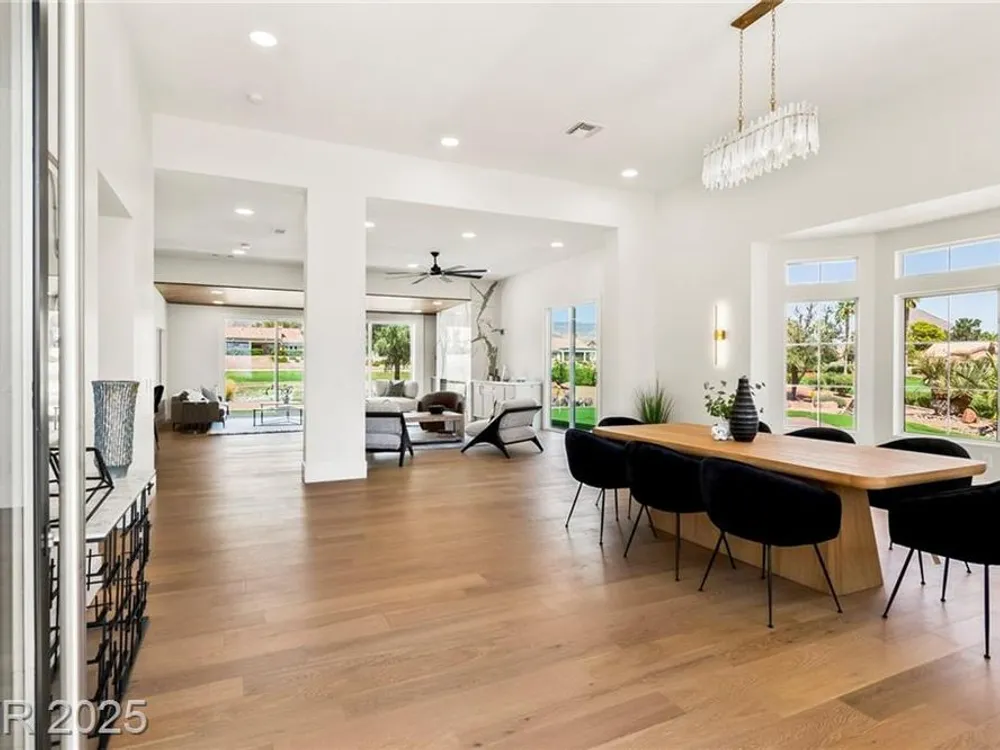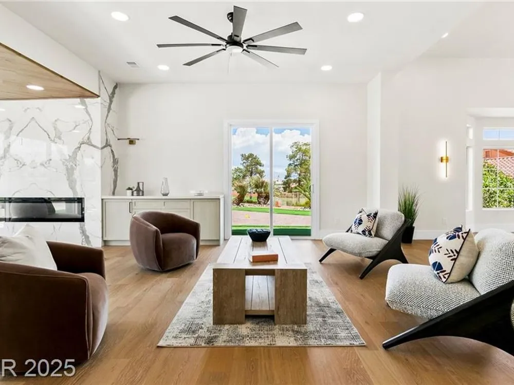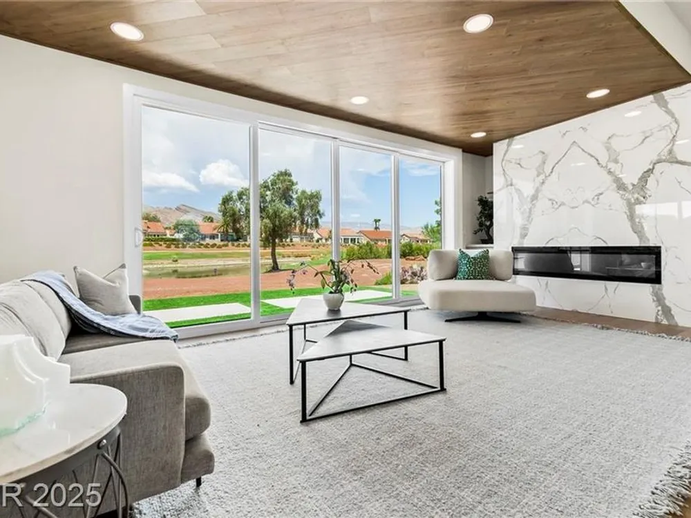 Experience luxury living in this one-of-a-kind, fully renovated single-story gem in Sun City Summerlin. Boasting hardwood floors, custom white oak cabinets, and top designer finishes, this home is truly unparalleled. Enjoy breathtaking mountain and pond views from your backyard, overlooking two golf course holes and featuring a private putt-putt green. The primary suite offers separate his-and-hers showers and closets for ultimate comfort. With new sliding doors and windows, this masterpiece seamlessly blends indoor elegance with outdoor serenity. Don’t miss it!