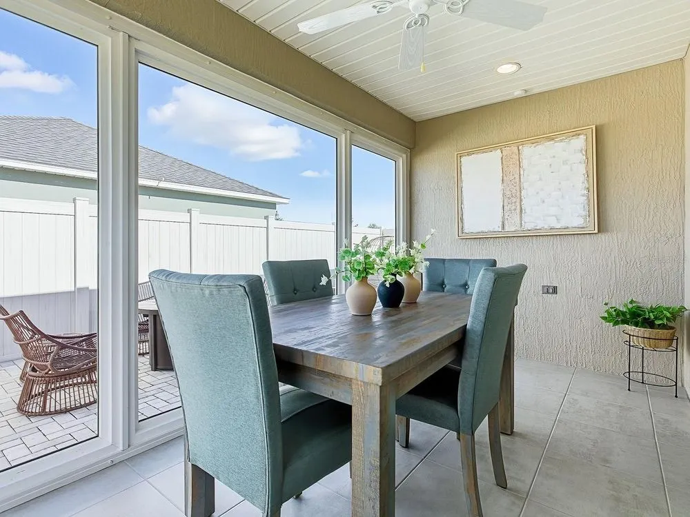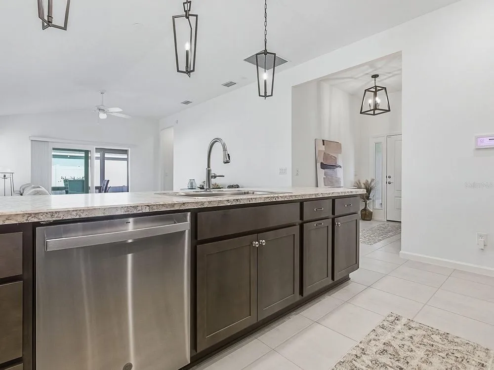 Stunning, Barely-lived-in 'Modified Charlotte' Model offers Over-The-Top Beauty with approximately 100K in Enhancements! Located in The Village of DeLuna, this Bungalow/Villa has 3 bedrooms, 2 baths and a 2 Car Garage with Epoxy Floors. Glass Enclosed Front Lanai Entryway leads into a Light & Bright inviting home with Volume Ceilings & Tile Flooring throughout. The Open-Concept Layout connects the kitchen, dining, and main living areas. The Kitchen: Stainless Appliances, Gas Cooking, and Plenty of Counter & Cabinet Space, along with a breakfast bar. Off the Main Living area there is a Second Glass Enclosed Lanai extending the living space! The Expansive Primary Suite features a Tray Ceiling along with an EnSuite with Roman Shower and a Walk-in closet. The Split Floorplan provides privacy, with a guest suite away from the main living area. Every bedroom includes ample closet space, and the Guest Bath includes a TILED Tub/Shower combo. The Laundry Room conveys with Washer/Dryer and includes a utility sink. Outside you will find Professional, Well Designed Landscaping, a Fully Fenced Yard, Brick Pavers for a low maintenance back Courtyard with Gates at both ends. IMPRESSIVE IMPROVEMENTS: TWO FULLY ENCLOSED LANAIS WITH TILE FLOORING, EF2 GLASS, MOTORIZED- HEAT RESISTANT BLINDS; 13" EXTRA INSULATION ALL THROUGH THE HOUSE, INCLUDING BOTH FRONT & BACK LANAI & GARAGE DOOR; STORM SHUTTERS; RING DOORBELL & CAMERAS; ALARM, ROCK & LANDSCAPING. The Village of DeLuna is located near Edna's on the Green, Brownwood Paddock Square, Magnolia Plaza, and the future Eastport. This low maintenance home is ideal for the full-time or seasonal resident, and/or potential investment /rental property.