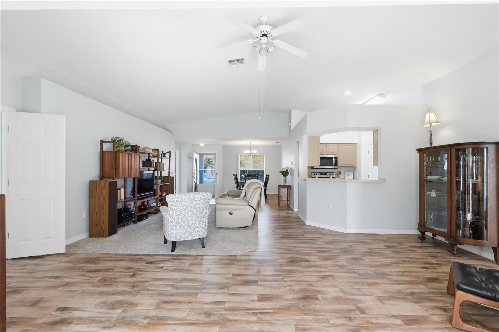 Welcome to Tampa Bay Golf & Country Club, the premier 55+ community offering an exceptional lifestyle in a guard-gated setting with private streets and NO CDD fees! This charming, move-in-ready home features two true bedrooms plus a versatile office that could easily function as a third bedroom. The bedrooms are generously sized, and the spacious primary suite includes a large walk-in closet, an additional linen closet, and a beautifully appointed bathroom with dual sinks and a walk-in shower. The second bedroom is also spacious and has its own designated guest bathroom. The open family room is warm and inviting, featuring cozy carpet over beautiful wood-plank tile floors that extend throughout the main living areas. The kitchen has been updated with NEW appliances and offers ample space for a coffee bar or casual dining. The home also includes a separate formal dining room. One of the standout features of this home is the bright and spacious Florida room, which leads directly to a screened-in porch, perfect for relaxing and enjoying Florida living year-round. Residents of Tampa Bay Golf & Country Club enjoy access to an outstanding, resident-owned clubhouse with an onsite restaurant and pub/grille, banquet facilities with a stage and dance floor, and three clubhouses offering endless social opportunities. Amenities include an 18-hole championship golf course, a 9-hole executive course, tennis and pickleball courts, shuffleboard, bocce, horseshoes, two swimming pools (one heated), a hot tub, a state-of-the-art fitness center, two dog parks, a fire pit, and much more. A full calendar of clubs, organized activities, onsite entertainment, and travel excursions adds to the vibrant lifestyle. Conveniently located just off I-75, close to Publix shopping and the charming downtown Dade City, and also near Wesley Chapel, where you’ll find top-rated dining, shopping, and entertainment. Additional nearby attractions include Wiregrass Mall, AdventHealth Center Ice Skating and Hockey Rinks, Tampa Premium Outlets, The Krates, BayCare and AdventHealth hospitals, Moffitt Cancer Center, PopStroke Mini Golf, and more. Don’t miss this great property!