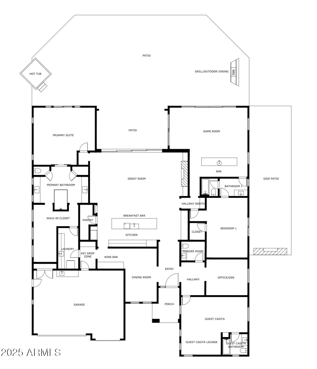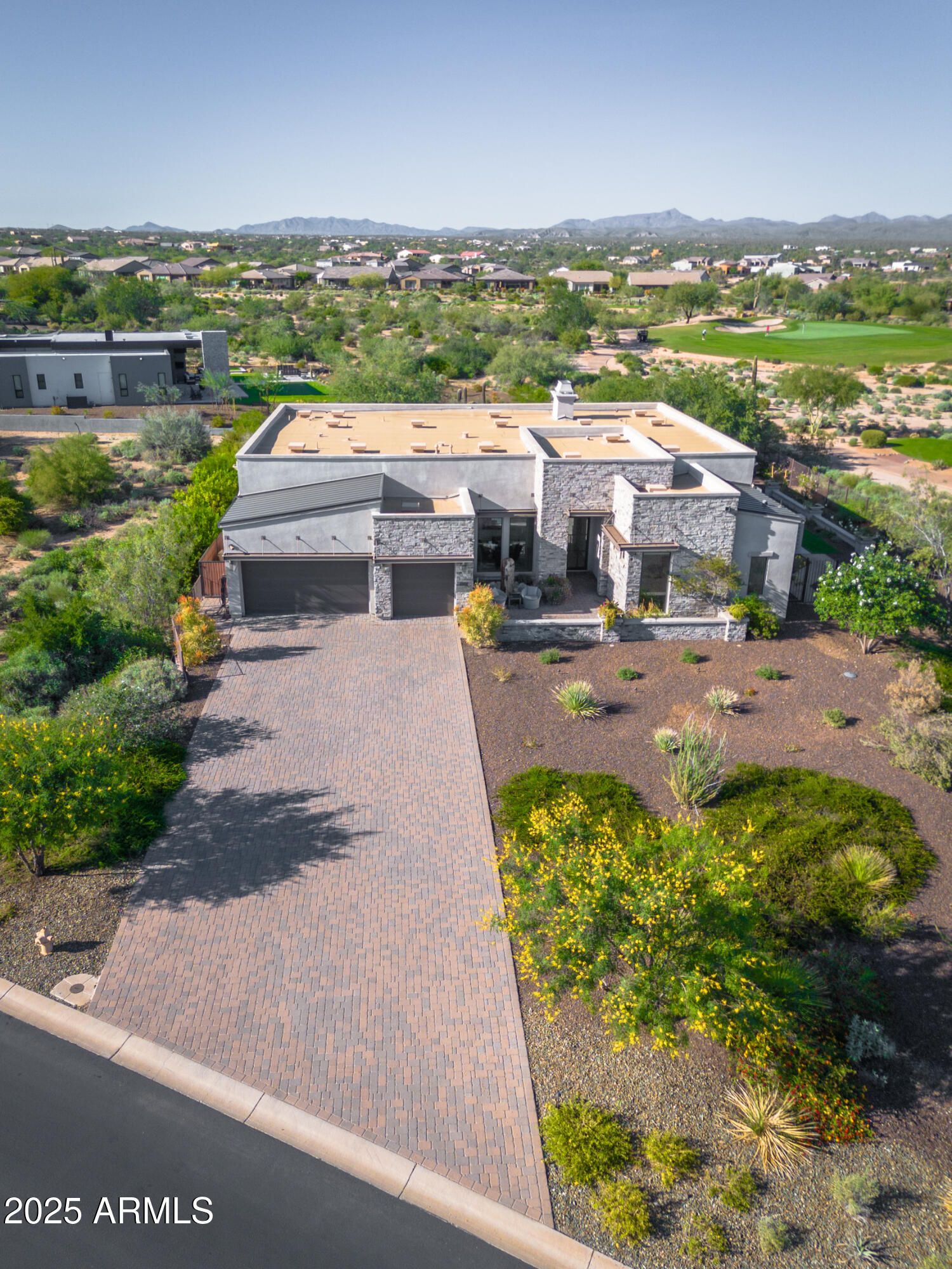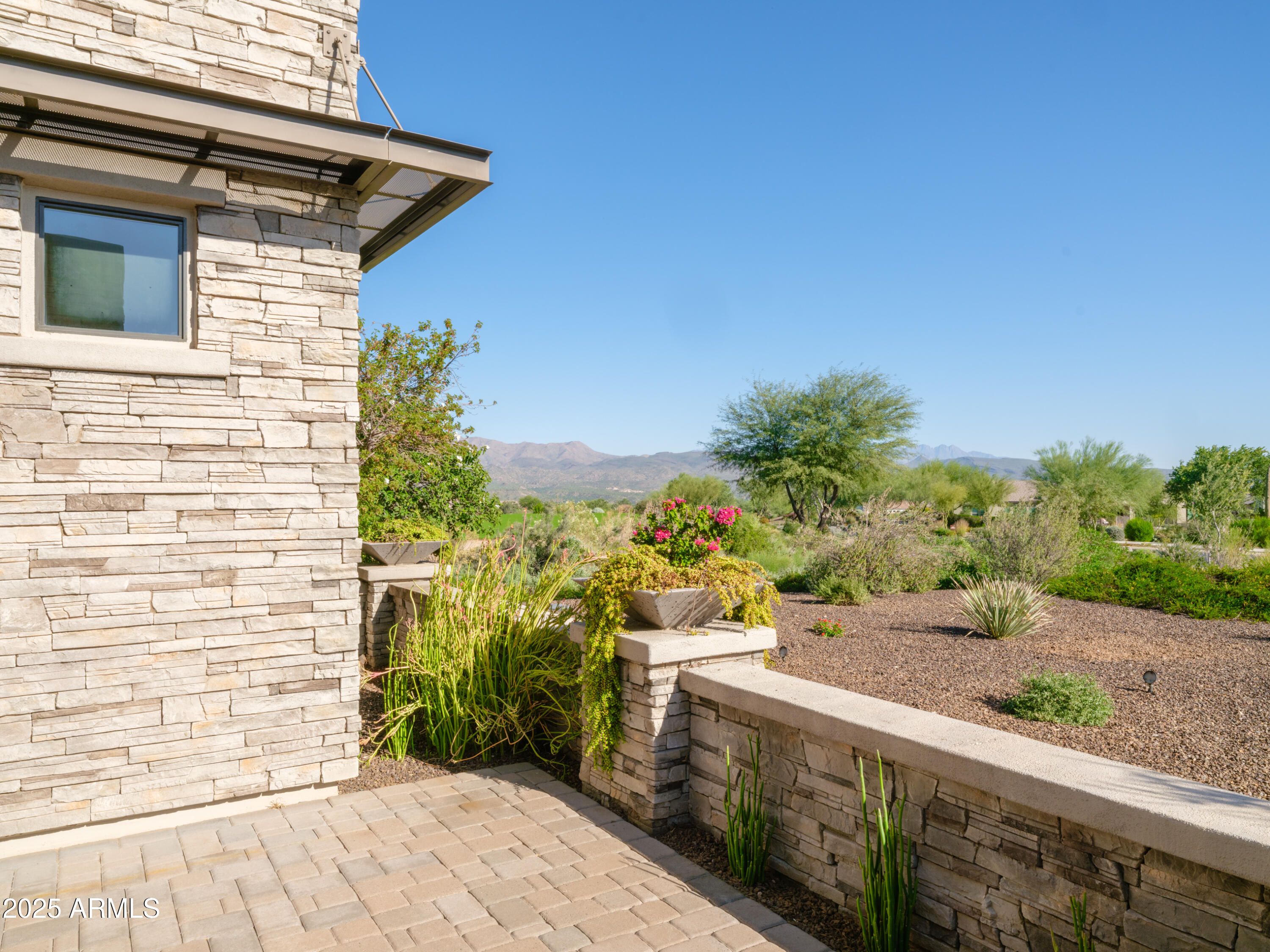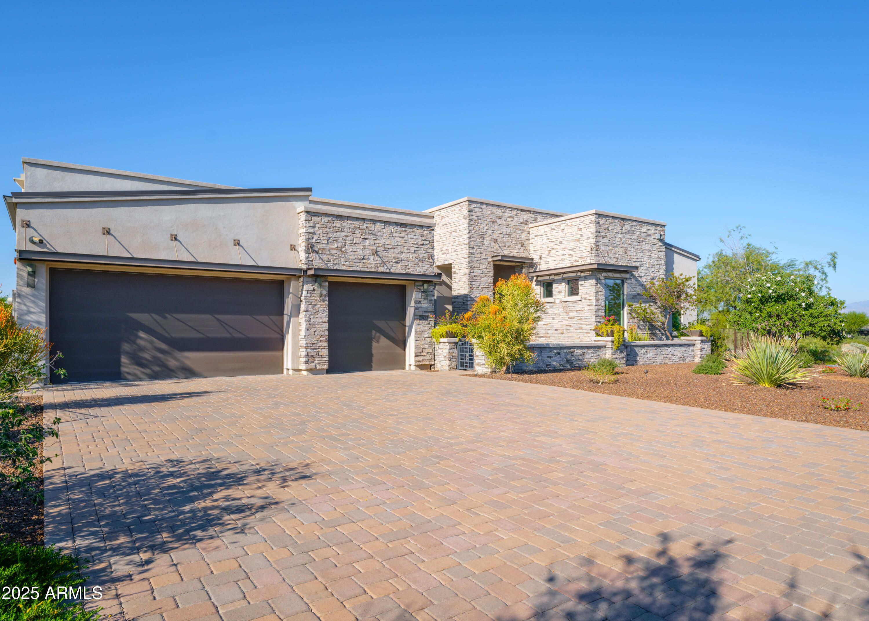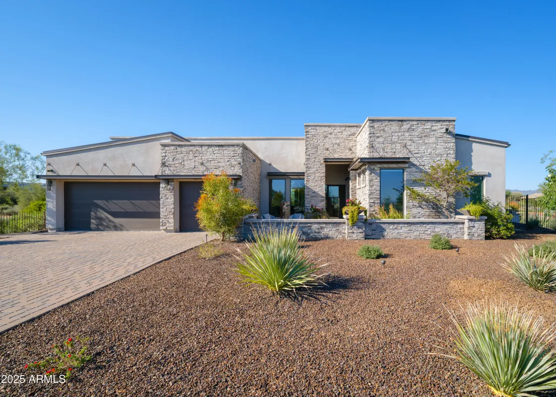 Contemporary Desert Modern Home in Trilogy - elegance, luxury, lifestyle. Custom detailing throughout 4338sf home on oversized golf course lot w/ premier mountain views. Indoor-out living becomes reality w/ disappearing walls of windows & vignettes that beckon. Maximum gourmet appeal w/ day-long waterfall counters, drawers all, induction, convection, subzero, space & beyond. Soaring 14' ceilings, oversized doors, gas & glass fireplaces all evoke granduer. Primary suite has dual sided vanities, super shower, wardrobes for the stars, access to bubbling hot tub - the complete retreat. Attached guest casita, home office w/ views, and stunning dining room/wine bar round out all necessities. Entertainment & promenade, geometric hard & softscape defy explanation. Elegant living is HERE. See MORE Contemporary Desert Modern home in Trilogy Golf Resort Community at Rio Verde. Beyond expectations from every vantage point: clean air, desert beauty, golf, fitness, pools, restaurants, friends, community, mountain views, and sunsets all await you here. The clean, modernist elevation is defined by metal architectural overhangs and stacked stone exteriors, geometric concrete hardscape, and softscape curated specifically to soften and frame the views. Patios galore, shade, water features, outdoor fireplaces and vignettes beckon you to the eternal indoor-out living of Arizona. Upon entering, the impressive iron and glass oversized door channels light through the foyer and beyond for a stunning first approach. The dining room & adjacent wine bar with red and white fridges provide for the perfect hosting moment. The great room simply dazzles, boasting 14-foot ceilings, creating a grand impression while maintaining an inviting and cozy air. Focus wall in great room serves up a warm fireplace clad in striking vertical tiles with side art niches. Not to be overshadowed is the completely disappearing Fleetwood wall of windows which blurs the lines of home and landscape. No small spaces in this 4338 sf home, from the massive kitchen with storage for all and the bonus room that can host its own party, to the primary suite worth bragging rights. Chef's kitchen highlights an extensive waterfall edge island, wall of Subzero's, induction cooktop, custom coffee bar with "flip up" hydraulic doors, double in-wall convection ovens, huge walk-in pantry, and all of the kitchen drawers possible. Primary suite exudes luxury. Access to views, a bubbling hot tub, immense sleek sliding doors to dual-sided grand vanities, fully accessible wide door double-entry super shower, more wardrobes than imaginable, and a direct secret door to laundry. A second bedroom with Jack & Jill bath, walk-in closet and sliding doors to the side patio with outrageous mountain views and an outdoor gas and glass fireplace of envy. Serene office with all the light and line needed for strategy sessions and more. Attached guest casita with additional separate iron door entrance and lounge is just what your friends and family desire for a visit - space, options, and privacy. Incredible entertaining room with a corner surround of glass doors, equipped with pool table, seated wet bar with waterfall edge & sexy octagonal sink, back bar, 3D wallpaper, and TV to watch the game whilst grilling wagyu on the outside shaded BBQ. This 26K sf oversized lot with golf course & mountain views is strategically sited to be a part of golf without the golf balls in your cocktails. The al-fresco dining patio is both shaded for sun protection and auto-screened floor-to-ceiling to keep pests down while allowing breeze in. The mountains become dining room accessories and the teeing off golfers serve as tea-time accoutrements. This desirable Toll Brothers floor plan with custom everything just ebbs and flows inward and outward upon demand. Oversized 3-car garage with custom sport court flooring and built-in cabinetry for storage is sure to ease burdens. Control your smart home with the touch of a button on the Crestron Home Automation System allowing for cooling, heating, security, lighting, sound ... all in the palm of your hand. Elegant, contemporary living IS a reality here. Features Contemporary Desert Modern - Built 2018 Premier Trilogy Golf Community Amazing Toll Brothers floor plan & quality with significant customization Single Flooring - large-format tile throughout home for continuity, flow & longevity Level 5 smooth-coat finished interior walls with contemporary corner edging Custom statement iron and glass front door, set in an alcove with a fountain, allowing light to bathe the entry in grandeur Kitchen exceeds expectations - storage, functionality, sophistication, style Kitchen drawers fit for a gourmet - you have never seen yet often wanted this many drawers Euro cabinetry with all the bells & whistles where you want them & display shelves to boot Dual wall ovens, induction cooktop, subzero, drawer microwave, gourmet appliances All counters a mix of high-end quartz and granite all thick square-edge finished Attention to all details such as hidden outlets to allow the tile to literally SHINE Coffee bar in great room with "flip up" hydraulic doors & a sink Wine bar with granite top & custom lighting Three separate wine/beverage fridges right where you want them Designer pendants, chandeliers & lighting throughout home Under-cabinet lighting throughout home adds mystique and artistry Primary suite euro sliding doors add a one-of-a kind style feature Grand floating dual side vanities with storage for all Complete primary wardrobe center with abundant storage Bonus game room w/ entertainment center boasts a 4-top waterfall edge wet bar Game room seamlessly expands to outdoor kitchen, screened dining, and 3 different social spaces Office filing system maximized & maintenance-free with storage Guest casita with both attached and separate iron door entrance - best of both worlds Electrified blinds in all bedrooms Over-height doors throughout home add volume to the spaces