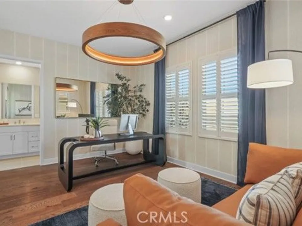 A spacious open floorplan shared between the family room, kitchen and dining room can be found at the heart of this single-level home, offering access to the California Room through stackable sliding glass doors. The luxe owner’s suite is situated at the back of the home, while a secondary bedroom and office can be found can be found off the entry. Good size yard, A must see. Gated 55+ Active Adult Community Stainless steel Kitchen appliances included.