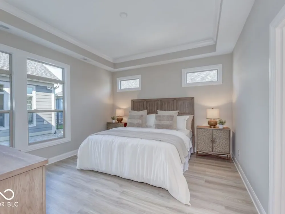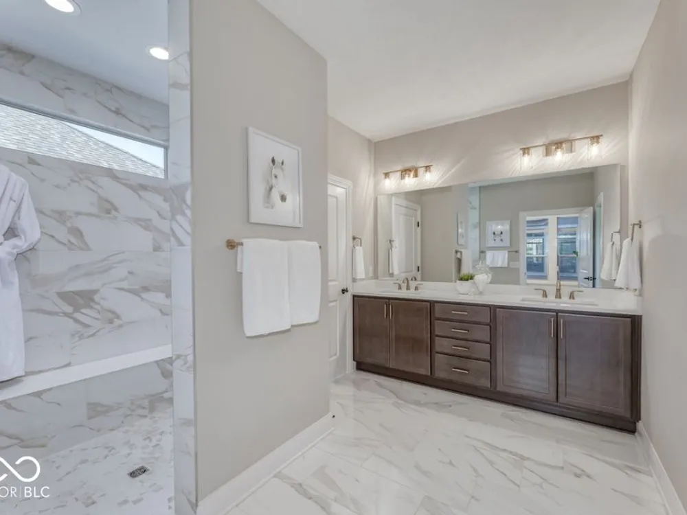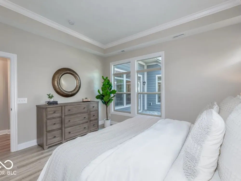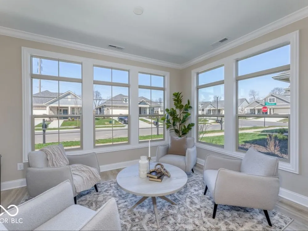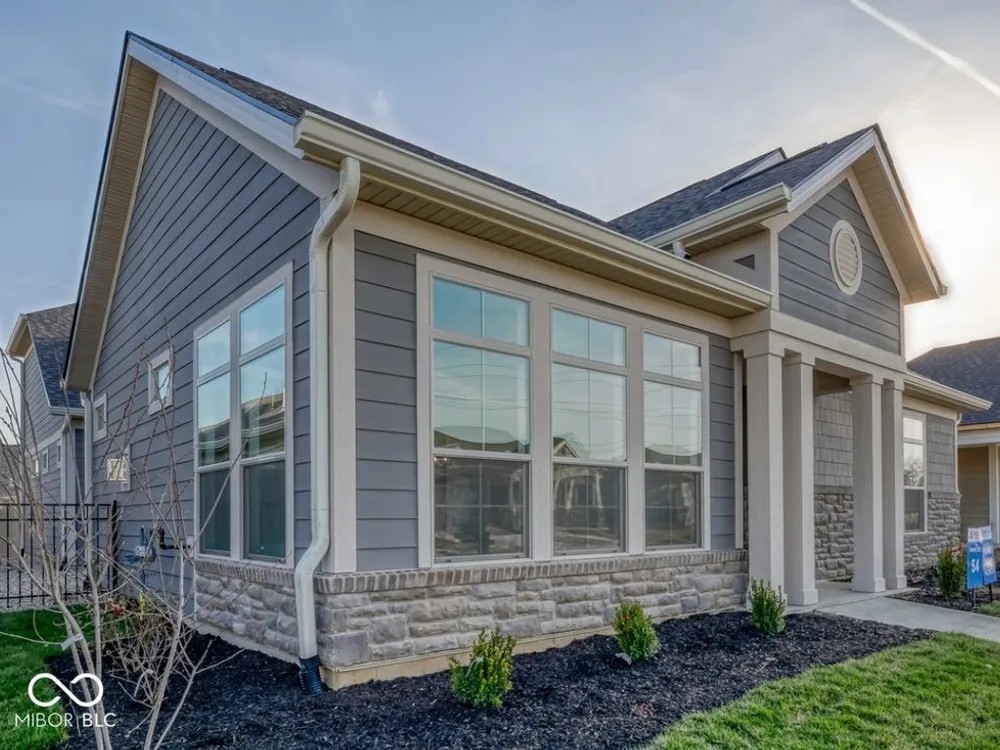 Welcome to a lifestyle of luxury and convenience crafted by Epcon Communities! Nestled in the prestigious Courtyards of Carmel, this stunning residence offers the perfect blend of low-maintenance living and modern comfort- 3 bed/3 bath, sunroom, 2.5 car garage, zero step ranch design. Courtyards of Carmel is a serene escape, ideally located just minutes away from Downtown Carmel, The Monon Trail, Hagan Burke Trail and easy access to Keystone and I465. Enjoy resort style, low maintenance living- no more yardwork or snow shoveling- enjoy community amenities including clubhouse, fitness center, pool, pickleball, bocce ball, community garden and more! This design boasts generous living spaces including 3 beds/3 baths, sunroom and bedroom suites providing ample room for relaxation and entertaining. Epcon's signature private courtyard, viewable from all major areas of the home, allows for an indoor/outdoor lifestyle. Luxury finishes throughout including the deluxe kitchen- a chef's delight featuring GE appliances, stylish cabinetry, quartz countertops, open to dining and a light filled view to the private courtyard. Retreat to your own private oasis with a lavish ensuite bathroom and spacious walk in closet. 3rd bedroom upstairs allow for the perfect private getaway for you, friends or family. Experience not only the private courtyard, luxury finishes and light filled home- but enjoy the livability of your home now and years to come with wider halls and doors, zero steps into the home, zero step owner's shower, extra framing for grab bars, handheld shower and more. This is a 55+ community.