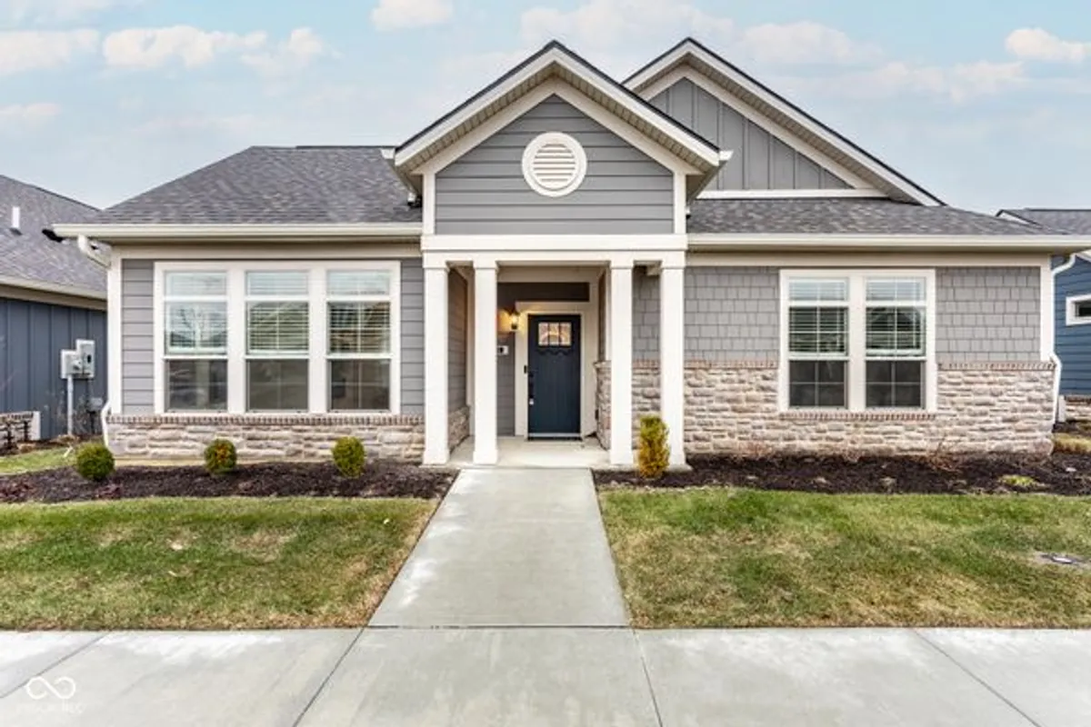 Welcome to a lifestyle of luxury and convenience crafted by Epcon Communities! Nestled in the prestigious Courtyards of Carmel, this stunning residence offers the perfect blend of low-maintenance living and modern comfort- 3 bed/3 bath, sunroom, 2.5 car garage, zero step ranch design. Courtyards of Carmel is a serene escape, ideally located just minutes away from Downtown Carmel, The Monon Trail, Hagan Burke Trail and easy access to Keystone and I465. Enjoy resort style, low maintenance living- no more yardwork or snow shoveling- enjoy community amenities including clubhouse, fitness center, pool, pickleball, bocce ball, community garden and more! This design boasts generous living spaces including 3 beds/3 baths, sunroom and bedroom suites providing ample room for relaxation and entertaining. Epcon's signature private courtyard, viewable from all major areas of the home, allows for an indoor/outdoor lifestyle. Luxury finishes throughout including the deluxe kitchen- a chef's delight featuring GE appliances, stylish cabinetry, quartz countertops, open to dining and a light filled view to the private courtyard. Retreat to your own private oasis with a lavish ensuite bathroom and spacious walk in closet. 3rd bedroom upstairs allow for the perfect private getaway for you, friends or family. Experience not only the private courtyard, luxury finishes and light filled home- but enjoy the livability of your home now and years to come with wider halls and doors, zero steps into the home, zero step owner's shower, extra framing for grab bars, handheld shower and more.