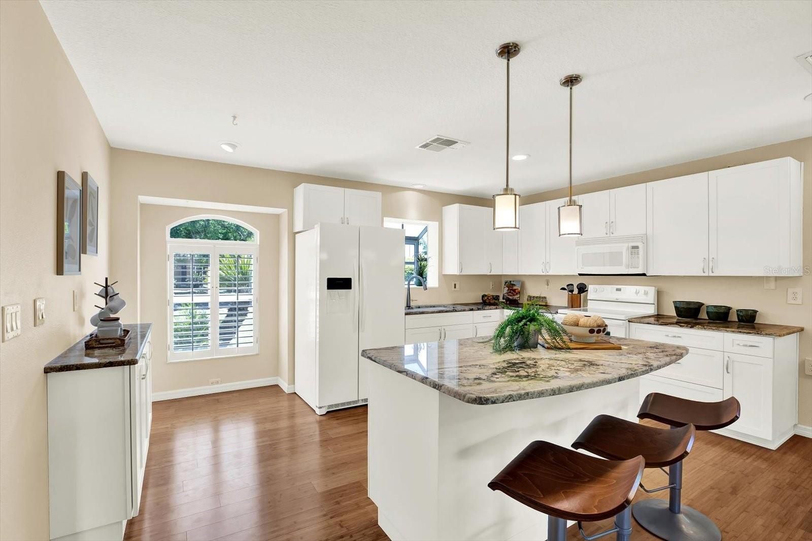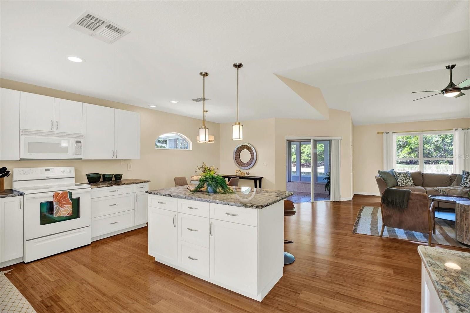 One or more photo(s) has been virtually staged. This is the perfect opportunity to live in the desirable 55+ community of Tampa Bay Golf and Country Club. This beautifully updated 2-bedroom, 2-bath home with 1,624 sq ft offers the perfect blend of comfort, space, and serene pond views. Situated on a generous 9,119 sq ft lot, this property delivers both privacy and picturesque surroundings. When you step inside, you immediately notice the open-concept layout with soaring ceilings, abundant natural light, and warm wood flooring throughout the main living areas. The spacious living and dining areas flow seamlessly into a bright, updated kitchen featuring white cabinetry, high-end granite countertops, a center island, and breakfast bar seating—perfect for everyday living or entertaining. A versatile flex space provides endless possibilities—ideal for a home office, a second guest room, or a hobby area. Unwind in the oversized primary suite, complete with ample closet space and a well-appointed ensuite bath featuring dual vanities. The secondary bedroom is comfortably sized and thoughtfully positioned for privacy. One of the standout features of this home is the enclosed sunroom, offering year-round enjoyment and panoramic views of the tranquil pond—perfect for morning coffee or evening relaxation. Outside, enjoy a peaceful backyard framed by mature landscaping and swaying palms, all overlooking the water and conservation. A 2-car garage and well-maintained exterior add to the home’s appeal. The Roof was replaced in 2017. New Carpet 2026. This home is ideally located between the 2 clubhouses that offer all the amenities you could ask for. Golf, Tennis, Pickleball, 2 pools-1 is heated, Shuffleboard, Cards, Hobbies, Travel Clubs, and more. A full-service Restaurant and Bar, for those times when you want to hop on the golf cart and grab a bite. HOA includes High Speed Internet and Cable. Located right off Interstate 75 for ease of travel North or South. Close to Groceries, Shopping, Banks, Hospitals, and Restaurants. This is Florida living at its best—spacious, bright, and perfectly positioned to enjoy nature and comfort all in one. Call to schedule a private tour.