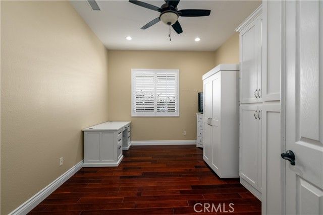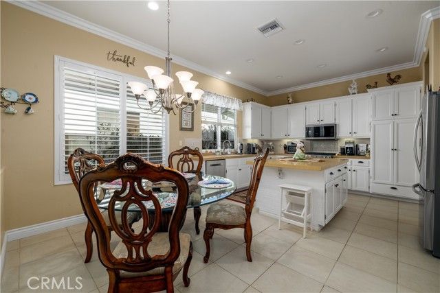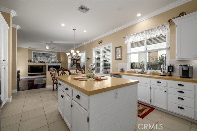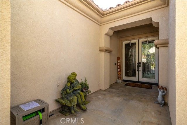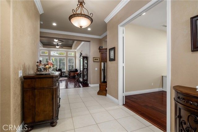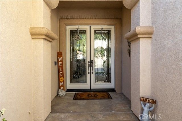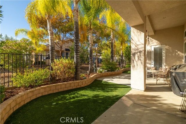 Welcome to 29451 Winding Brook, Menifee – Located in the Highly Sought-After 55+ Gate-Guarded OASIS Community Experience resort-style living in this beautifully upgraded single-story home, perfectly situated in one of Menifee’s premier active-adult communities. A charming courtyard entry and double custom leaded-glass doors set the tone for the elegance found throughout. Step inside to a spacious formal living room featuring coffered ceilings and abundant natural light. The adjoining formal dining area—currently used as an office—offers flexibility to suit your needs. At the heart of the home is the gourmet kitchen, showcasing quartz countertops, a custom tile backsplash, pull-out drawers, a large center island, two pantries, and brand-new stainless-steel stove and microwave. The kitchen opens to a warm and inviting family room, complete with a French door leading to the covered backyard patio. The luxurious primary suite includes custom built-in wall cabinetry with an entertainment niche and generous drawer space. The spa-style en suite bathroom offers a separate soaking tub and step-in shower, custom cabinetry, and a dual-sink vanity with marble countertops. A guest bedroom with its own upgraded en suite bath—featuring dual sinks and a full tub/shower—ensures comfort and privacy for visitors. A rare custom-designed powder room adds additional convenience. The bonus room with double-door entry makes an ideal third bedroom, craft room, hobby space, or office. Throughout the home, enjoy the upscale touches: plantation shutters, crown and base molding, custom ceiling fans, engineered hardwood flooring, and designer tile. Additional highlights include: Oversized laundry room with deep sink Newer dual-pane windows Newer AC/heating system Brand-new whole-house water filtration plus under-sink drinking system Extended 24' deep garage with attic fan and abundant storage The private backyard is a peaceful retreat with an extended covered patio, high-quality turf, raised planters, and newer vinyl fencing—ideal for low-maintenance enjoyment. Residents of the OASIS community enjoy low taxes, beautifully maintained grounds, and HOA-included front yard water & maintenance, plus trash service. Conveniently located near 36 holes of public golf, shopping, dining, and medical facilities, this home offers comfort, convenience, and an exceptional lifestyle.