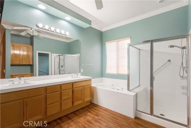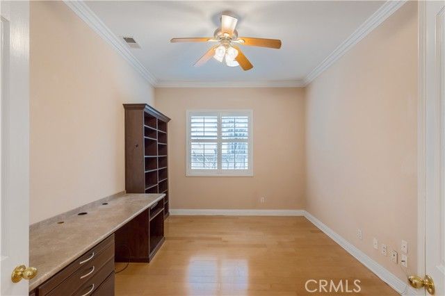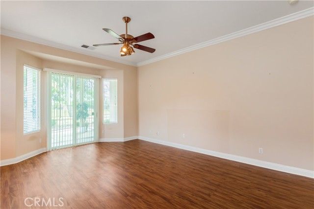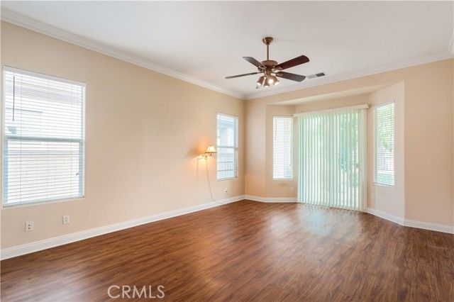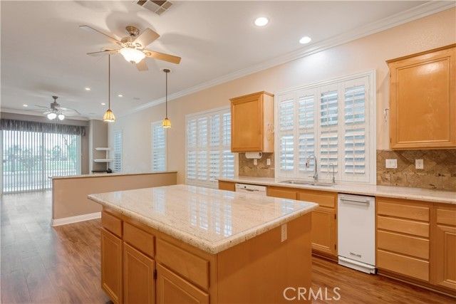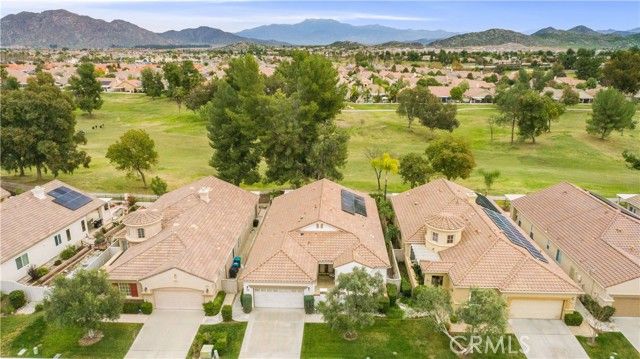 Welcome to resort-style living in The Oasis, Menifee's premier 55+ gated golf course community. This beautifully maintained golf course home offers 2 bedrooms plus a dedicated office, 2.5 bathrooms, and a thoughtfully designed open floor plan perfect for both everyday comfort and entertaining. Step inside to find vinyl wood flooring throughout, accented by elegant chandeliers, ceiling fans, and an abundance of natural light. The spacious kitchen is a true highlight, featuring granite countertops, a center island, ample cabinetry, and effortless flow into the main living areas. Enjoy peaceful mornings and relaxing evenings in the backyard with beautiful, unobstructed views of the golf course. The Oasis community offers exceptional value and lifestyle perks, including front yard landscaping maintenance, and beautifully maintained grounds. Residents enjoy access to a championship golf course, a stunning clubhouse, resort-style pool and spa, fitness center, tennis and pickleball courts, scenic walking trails, and a vibrant calendar of social clubs and activities, all within a secure, gated setting. Ideally located near 36 holes of public golf, as well as shopping, dining, and medical facilities, this home also benefits from low property taxes, making it an attractive and affordable o