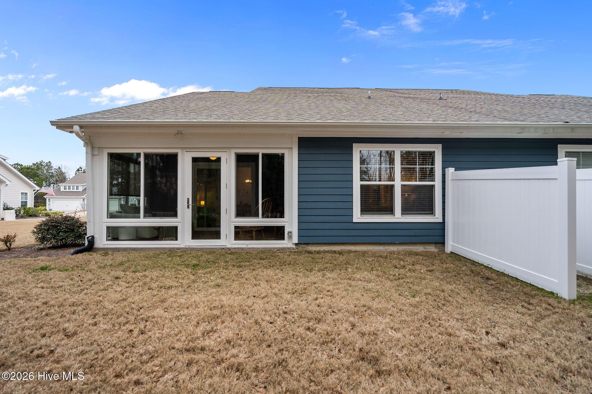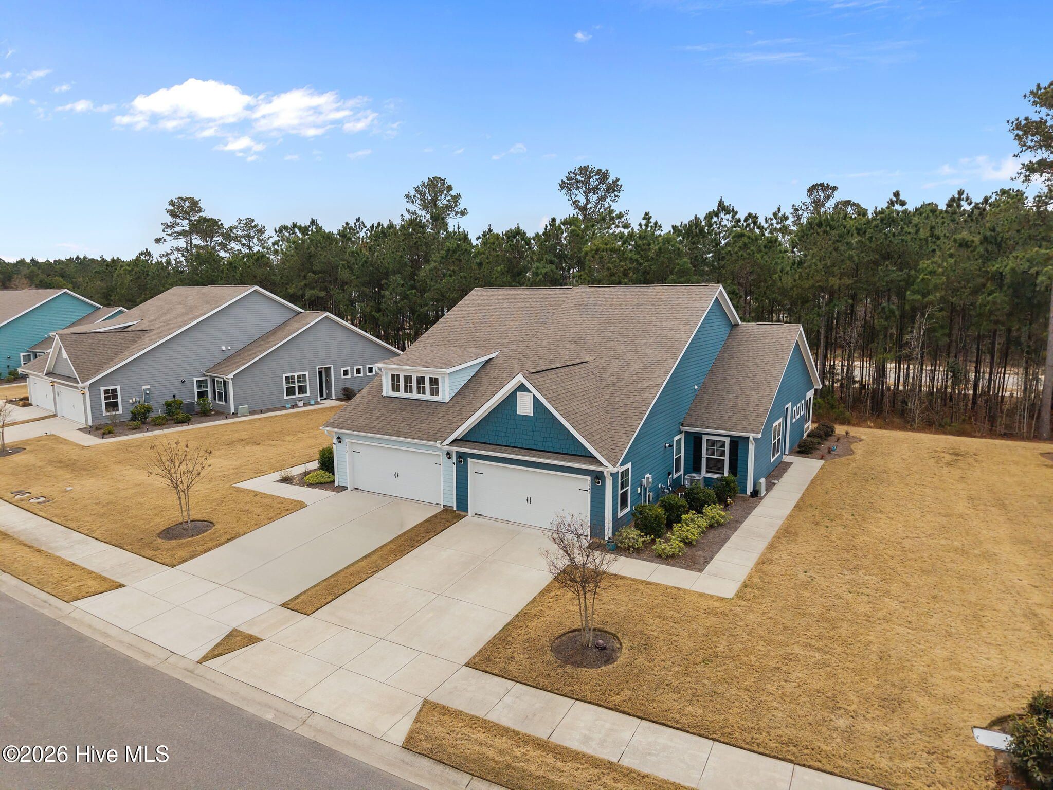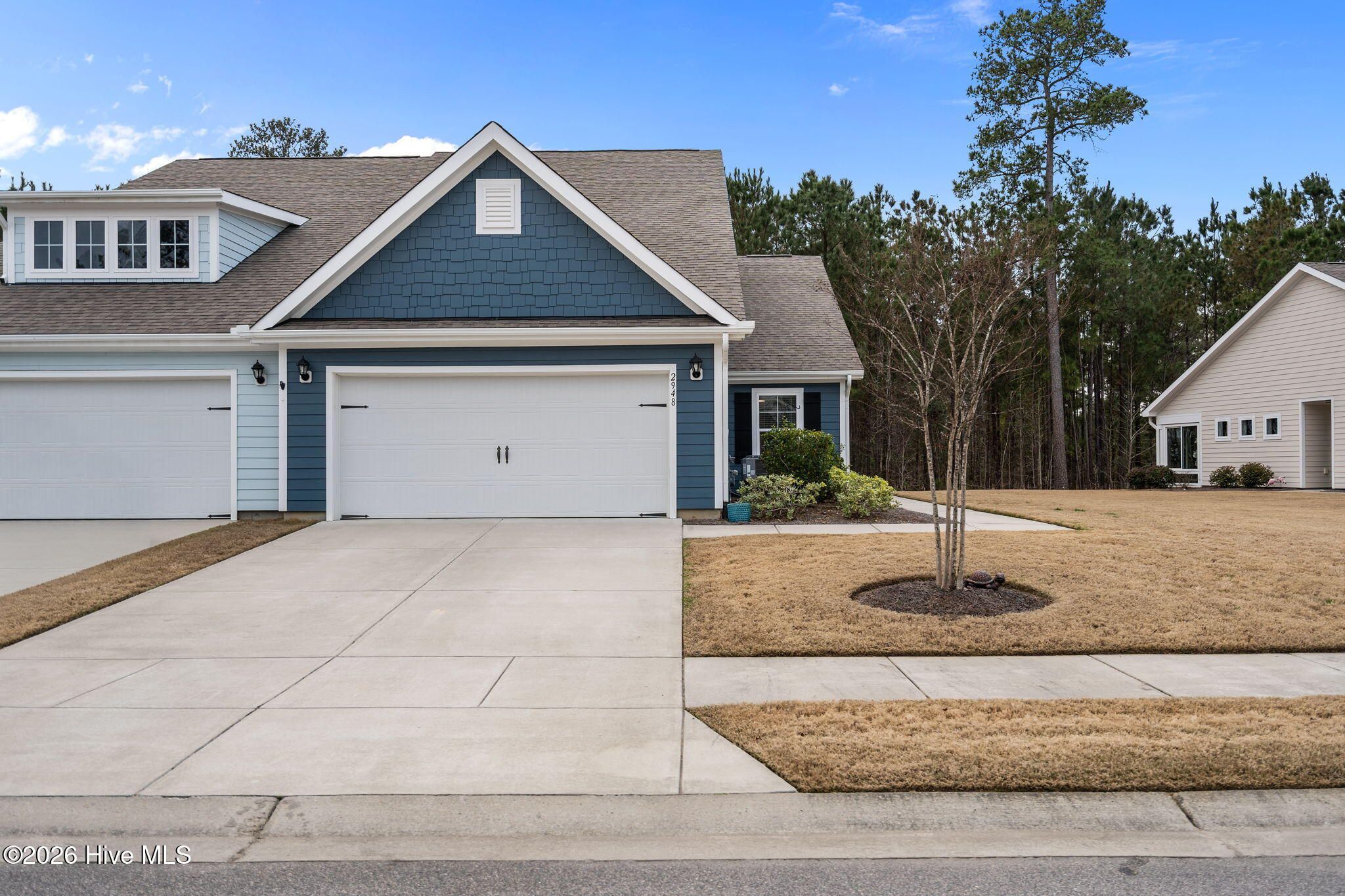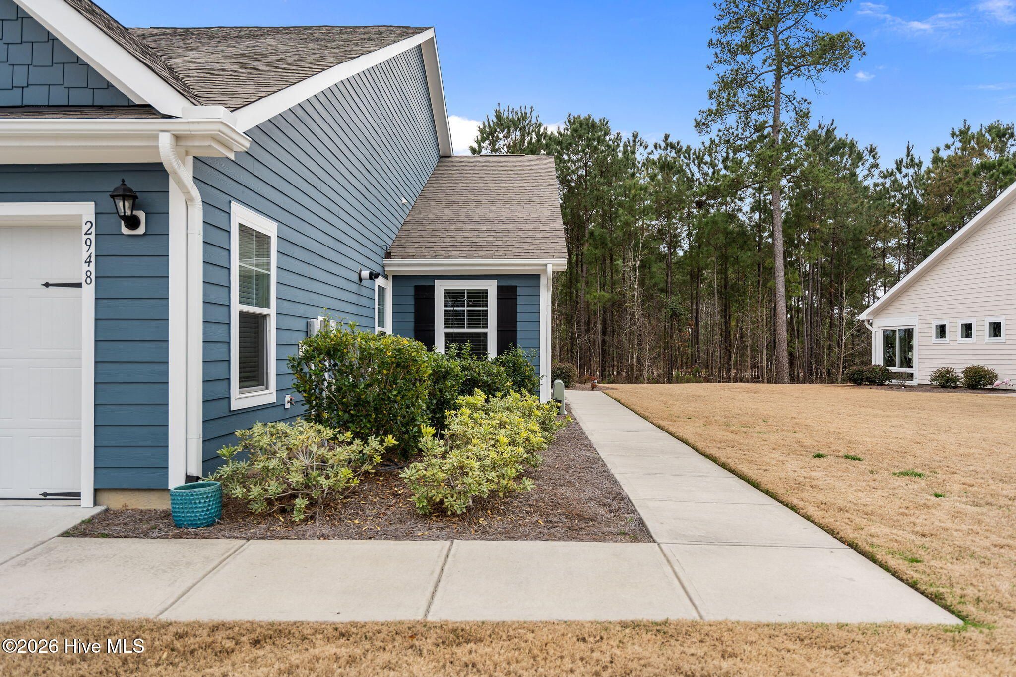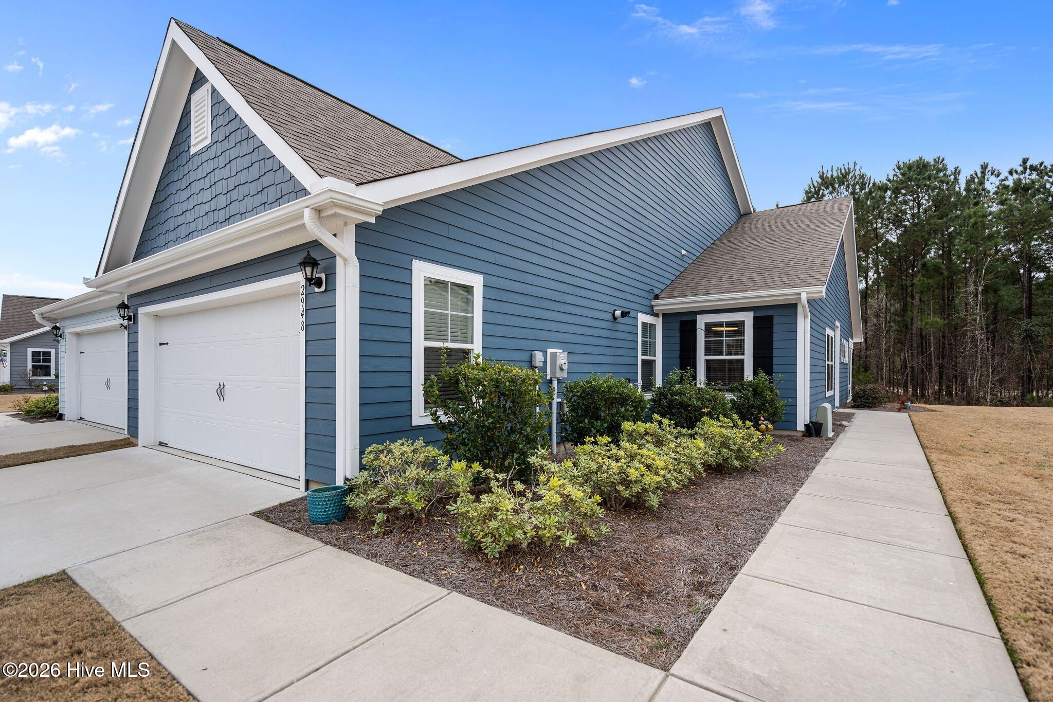 Welcome to low-maintenance coastal living in the Heron Pointe section of Brunswick Forest in Leland! Built in 2021 and move-in ready, this beautifully maintained 3 bed, 2 bath ''duet'' style townhome offers 1419 sqft with no rear neighbors and incredible sunset views, right from your enclosed sunroom. Located on a quiet, yet friendly and vibrant street, this home simultaneously offers privacy and community charm. Inside, vaulted ceilings and an open-concept living space create a bright, airy feel that you will fall in love with. The kitchen is both functional and inviting, featuring granite countertops, stainless steel appliances, gas stove and a large pantry. The spacious primary suite is a true retreat with a large walk-in closet and a beautifully updated bathroom with quartz countertops, tile flooring, dual vanities, complementary fixtures and a 5 foot tiled walk-in shower with frameless glass doors. LVP flooring anchors the main living areas and secondary bathroom, complemented by comfortable carpet in the bedrooms and tile in the primary suite. One of the standout features is the enclosed sunroom -- the perfect cozy spot to take in breathtaking sunset views! You'll feel so comfortable pulling into your fully-painted 2-car garage completed with epoxy flooring. You'll also love the abundance of storage that the attic space offers, and don't forget the HOA maintains your lawn and landscaping! As part of Brunswick Forest, residents also enjoy resort-style amenities including a clubhouse, outdoor and indoor pools, fitness center, pickleball and tennis courts, walking/bike trails and more -- all within a natural gas community. Lowe's Foods is conveniently located at the front of the subdivision along with even more shopping, dining and medical facilities. With Leland growing as FAST as it is, this home offers the ideal balance of peaceful living and everyday convenience. If you've been searching for a cozy cottage feel with modern finishes, friendly neighborhood vibes, and easy living -- this is it! Other thoughtful details you will appreciate include two oversized hall closets for extra storage, tankless gas water heater, 42'' maple kitchen cabinets with crown molding, soft-close doors and drawers, subway tile kitchen backsplash and elongated baseboards with craftsman trim.