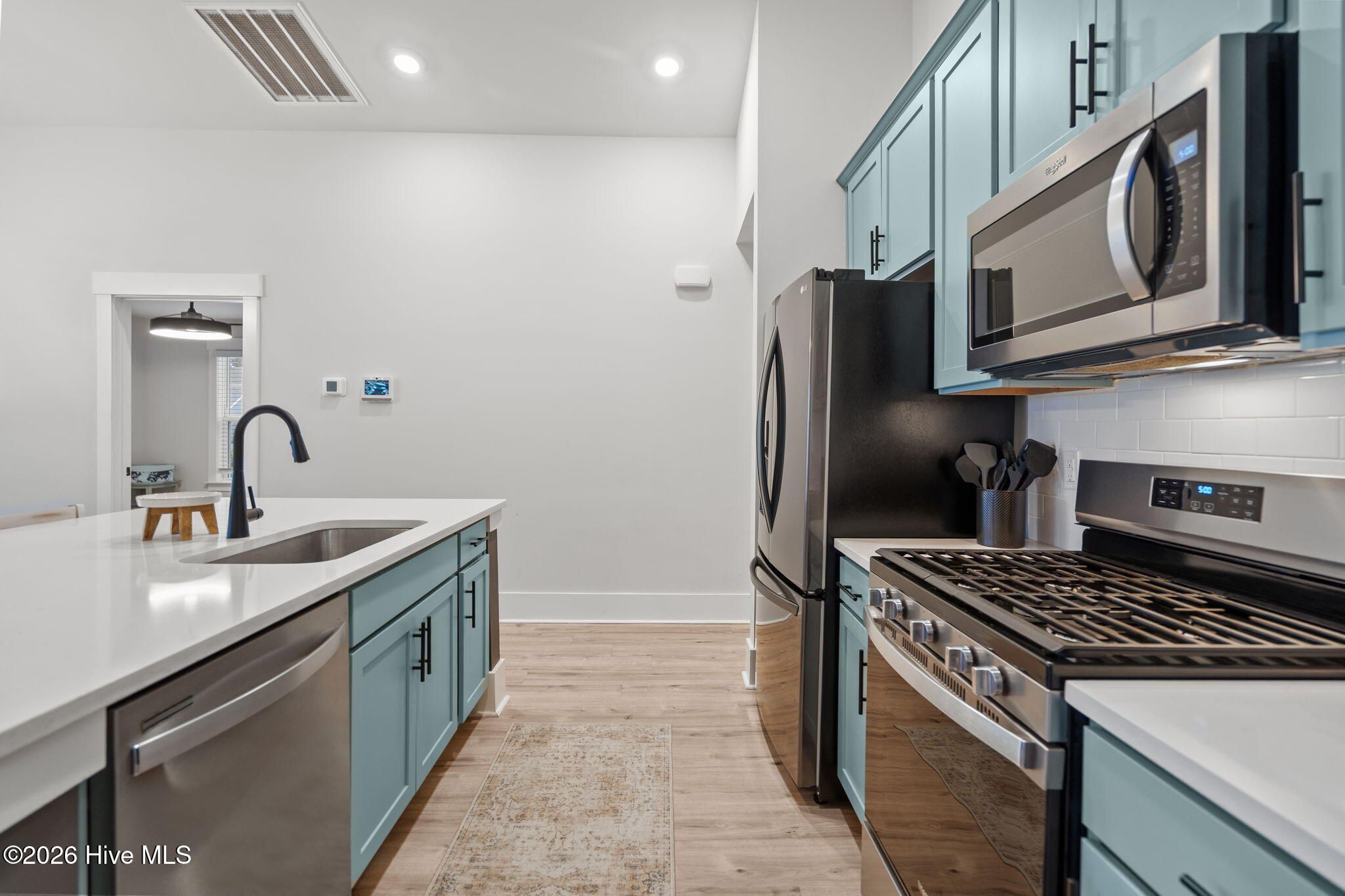 - Built-In Microwave, Refrigerator, Disposal, Dishwasher, Gas Range, Gas Water Heater