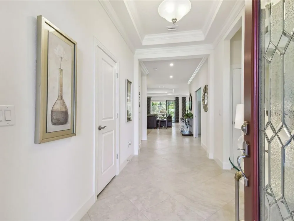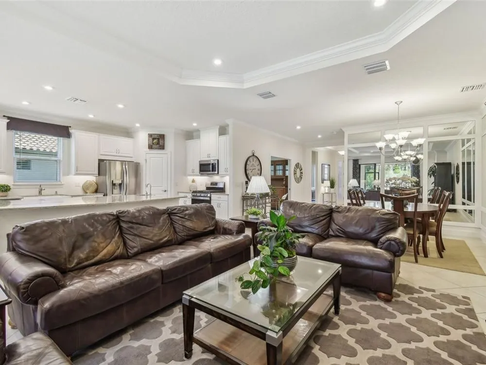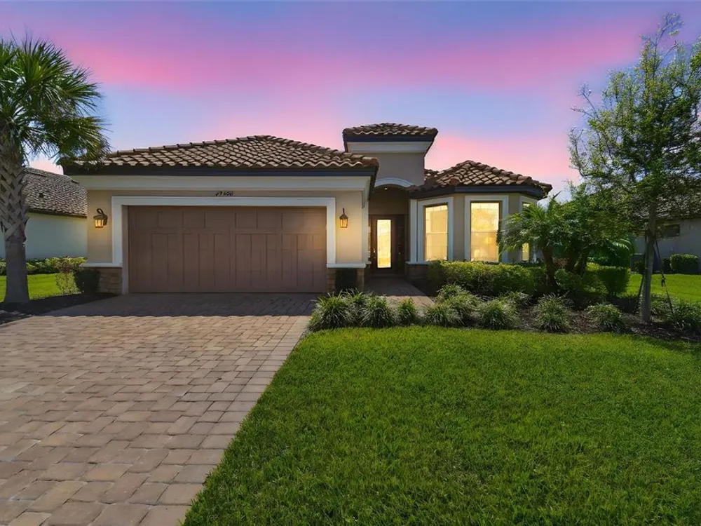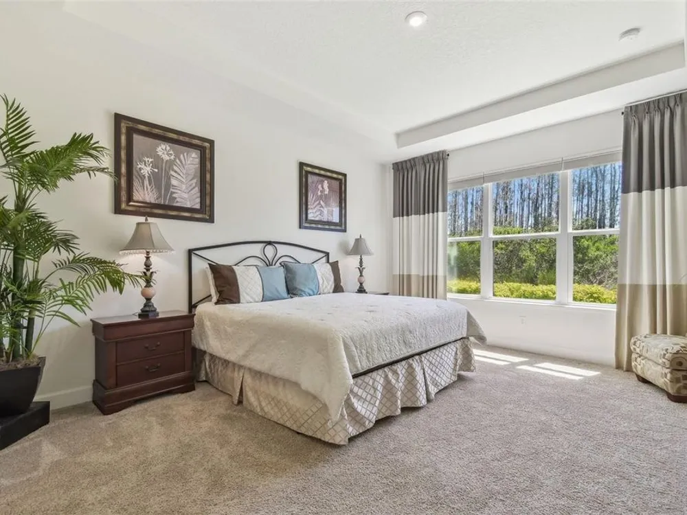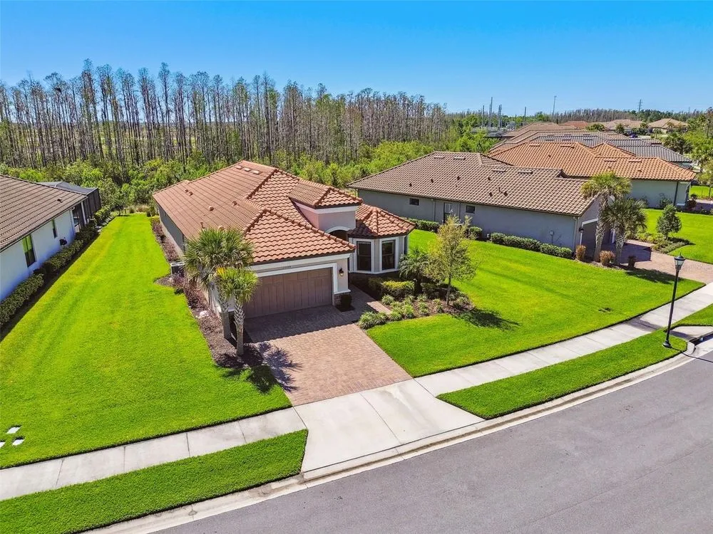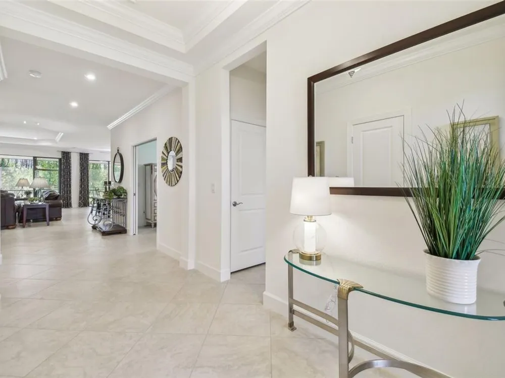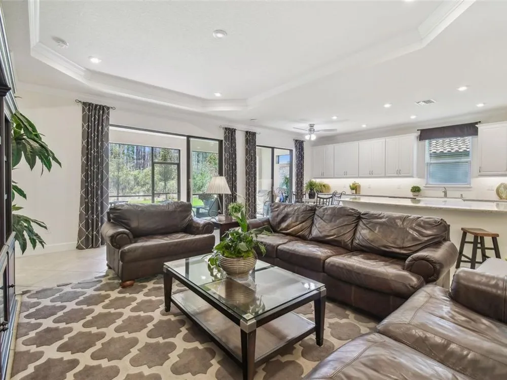 Welcome home! Enjoy the luxury living in this Esplanade of Wiregrass located in a maintenance free, 55+ gated community. Why wait to build when you can enjoy this Lazio dream home now. This home features 2,334 SF, 3 bedrooms, 3 baths, an office/flex room, an extended garage on an oversized conservation lot. You will notice the attention to detail as you enter the custom glass door to an open floor plan, extended gourmet kitchen overlooking a large family room and dining room, featuring 42” cabinets with crown molding, quartz counters, under cabinet LED lighting, upgraded stainless steel appliances, porcelain farm sink, enormous island with prep sink, an ample walk-in pantry and extra counter space all designed for entertaining. The owner’s oversized suite has dual sinks, walk in shower, a huge closet, and a tray ceiling. The family room boasts coffered ceilings with crown molding, and lots of natural light. Bedroom two has an ensuite bath and bedroom three has a bay window extension. This one-story Taylor Morrison custom home has an open floor plan with an extensive list of upgrades. These upgrades include but are not limited to dining room with custom wall mirrors, extended eat in kitchen, designer tile floors throughout in common areas, custom designer drapes, quartz counters in bath, extended paver driveway, tile roof, large laundry room with cabinets & utility sink, garage with epoxy floors, and a water softener. The premium oversized conservation lot boasts custom landscaping. Step out on to the covered screened lanai and you will be ready to enjoy the Florida outdoors. Esplanade of Wiregrass Ranch has a luxurious upscale club house with full-time lifestyle and fitness directors. The Venue includes a resort style pool, hot tub, cabanas, dog park, state-of-the-art 24-hour fitness center, billiard/card room, and spa room. For active outdoor entertainment there is a firepit, tennis, pickleball, bocci, and a large meeting/gathering area. Esplanade also includes worry free yard maintenance, reclaimed water and Spectrum TV and internet package included in fees. This home is located only minutes from shopping, I-75, hospitals, restaurants, recreation, and entertainment. Come see for yourself this exquisite residence and call it home! Please see walkthrough and Matterport 3D tours.