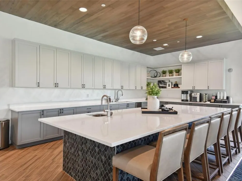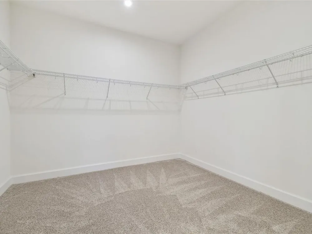- Ceiling Fan(s), Coffered Ceiling(s), Crown Molding, Eat-in Kitchen, Kitchen/Family Room Combo, Open Floorplan, Main Level Primary, Smart Home, Solid Surface Counters, Split Bedrooms, Stone Counters, Thermostat, Walk-In Closet(s), Window Treatments