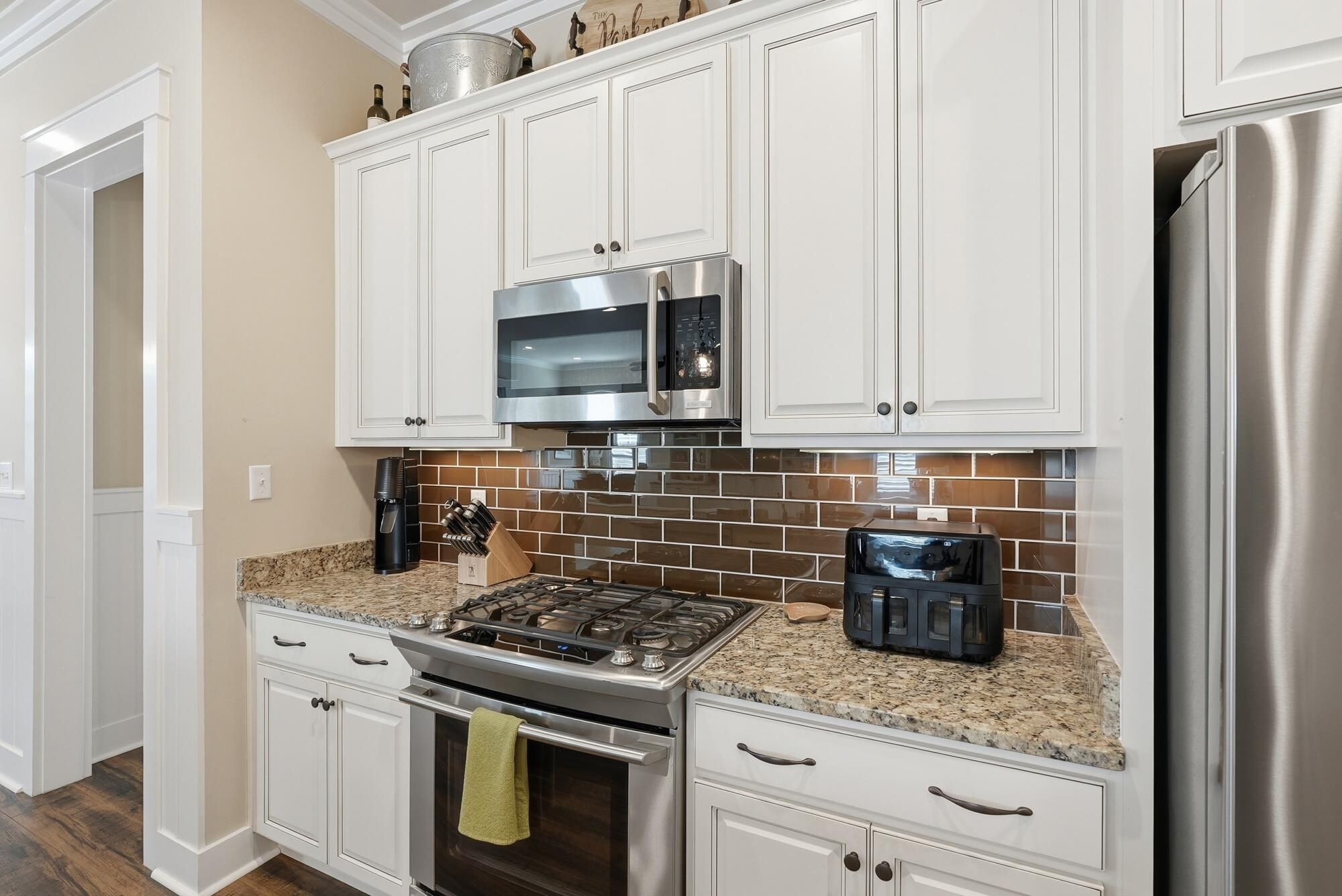 - Cooktop, Dishwasher, Disposal, Dryer, Microwave, Refrigerator, Washer, Tankless Water Heater, Electric Garage Door, Self Cleaning Oven, Ice Maker, Smoke Detector, Gas Oven, Wine Refrigerator