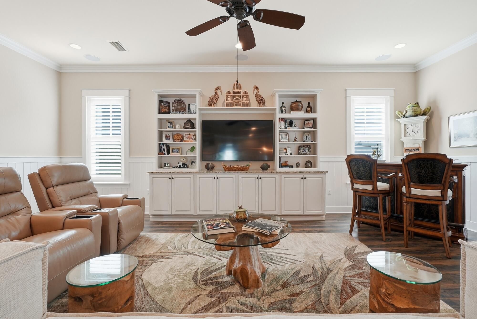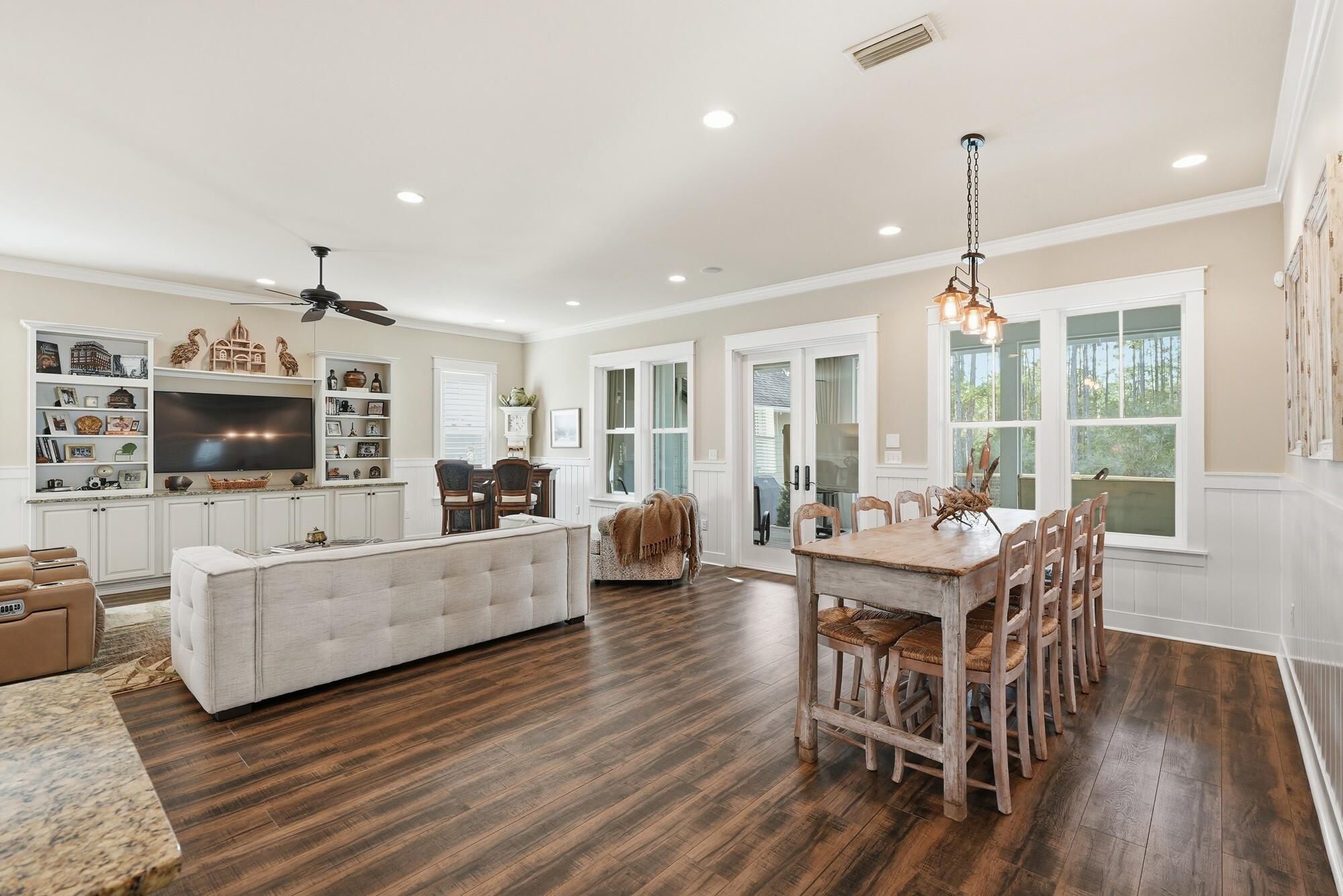 - Built-in Bookcase, Crown Molding, Kitchen Island, Plantation Shutters, Paneling/Wainscoting, Washer/Dryer Hookup, Window Treatments, Bookcases