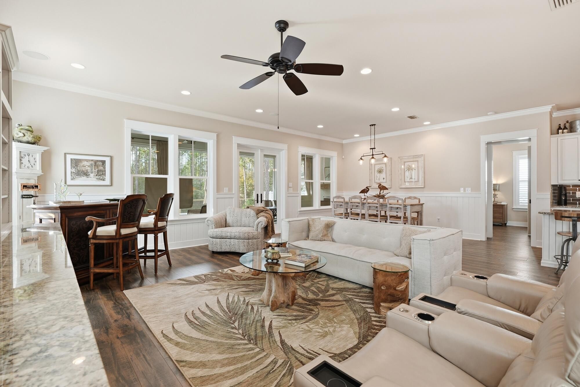 This gorgeous, single-level home offers a highly livable floor plan and is ideally located in WaterSound Origins, just minutes from Highway 98. The peaceful backyard overlooks a serene pond and protected natural area that will remain undeveloped, providing lasting privacy and beautiful views. The home features exceptional indoor-outdoor living, including a screened porch with fireplace that opens to a heated saltwater pool and hot tub--perfect for relaxing or entertaining year-round. With four bedrooms and a thoughtfully designed layout, the home is well suited for a full-time family residence or for hosting visiting friends and family. Situated on a street with community walking trails that wind through native plants and foliage, the setting creates a true connection to nature. MO The home features exceptional indoor-outdoor living, including a screened porch with fireplace that opens to a heated saltwater pool and hot tub--perfect for relaxing or entertaining year-round. With four bedrooms and a thoughtfully designed layout, the home is well suited for a full-time family residence or for hosting visiting family and friends.The home has numerous builder upgrades designed to enhance both comfort and functionality. 10-foot ceilings create an open, airy feel, complemented by custom wainscoting, crown molding, and detailed trim work throughout the main living spaces. Built-in bookshelves anchor the den and living area, while a hallway bar features a wine cooler with custom cabinetry--ideal for entertaining. Indoor living flows seamlessly outdoors to a private backyard retreat featuring a pool and spa, outdoor fireplace, and upgraded paver walkway extending from the driveway to the pool. The garage is fully air-conditioned, adding versatility and year-round usability. Additional original builder enhancements include custom cabinetry and a laundry room closet, ceiling fans in all bedrooms, the den, and porch, wiring for a sound system in the den and back porch, and custom shutters throughout the home and garage. In the primary bath, battery-operated shutters allow for effortless light and privacy control. The home has been meticulously maintained, with recent updates including a full exterior repaint in July 2024, refreshed white fencing along both sides of the pool, replacement of the rear pool fence, a new dishwasher installed in September 2025, and a new HVAC system completed in December 2025.