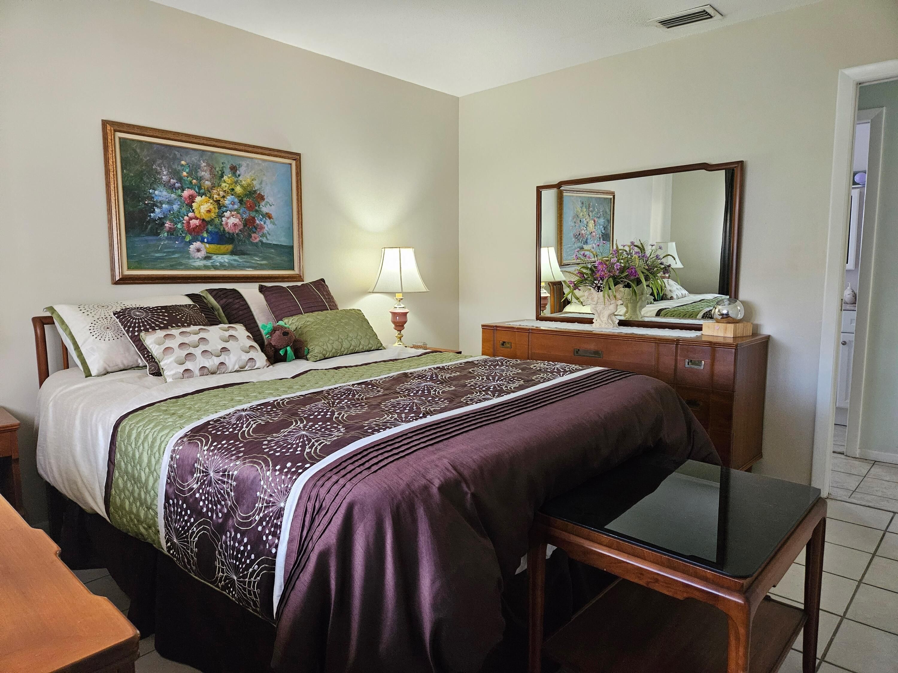 Beautifully furnished garden view 1/1 in the 55+ active adult community of Crosley. Storage closet. Updated electrical panel. Tiled throughout. partially updated bathroom. Ready to be made your own. Crosley community offers wide sidewalk, heated pool, clubhouse with auditorium , fitness room, library, shuffleboard, and bocce court. It is located centrally close to shopping, restaurants, 15 mins from Palm Beach International airport and 20 mins from the beach.