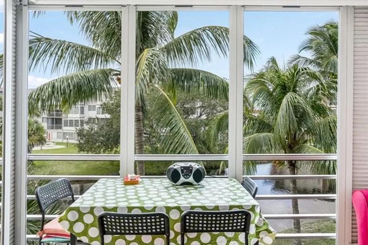 Charming 2 bedroom 2 bathroom condo in 55+ Lauderdale Oaks. Enjoy a beautiful, tropical view from the enclosed balcony. Ceramic tile flooring throughout. and tons of natural light. Spacious bedrooms with walk-in closets, and a bright, airy feel in every room. Fully furnished for turnkey convenience. AC 2023, Water heater 2019, and roof replaced in 2021. A serene, low-maintenance lifestyle in a friendly community—come see this lovely unit today and make it yours.
