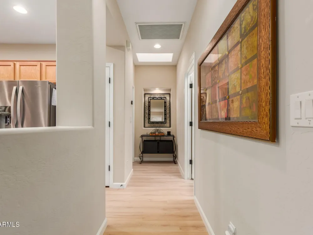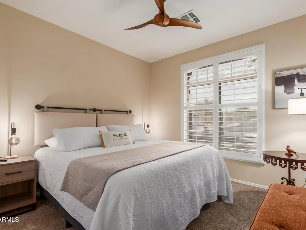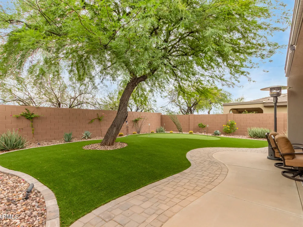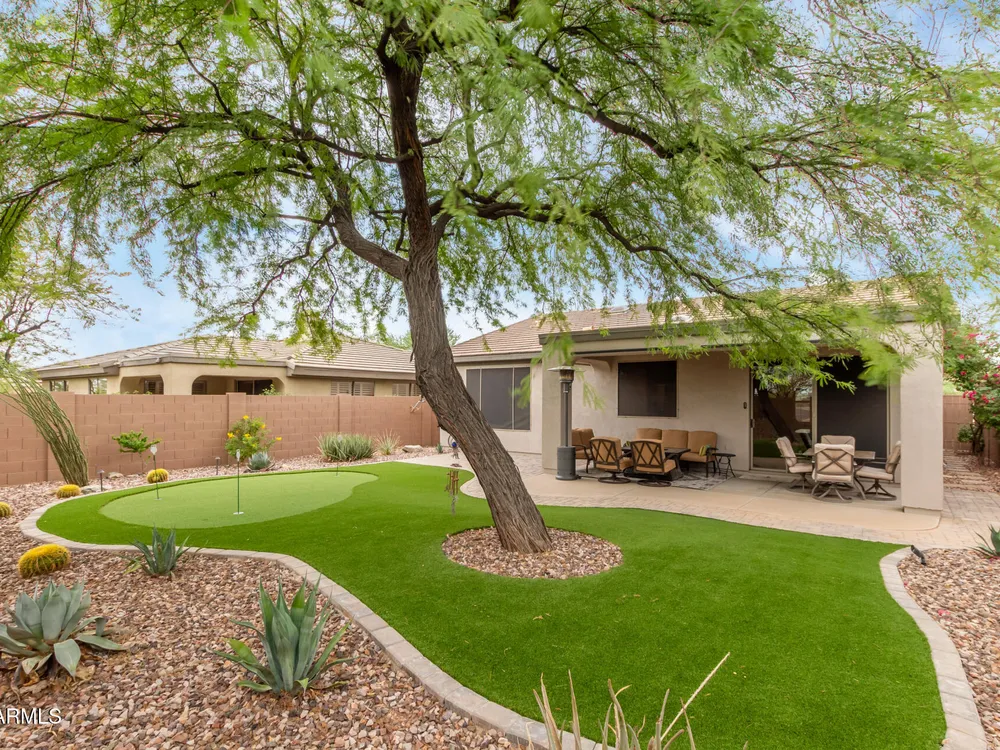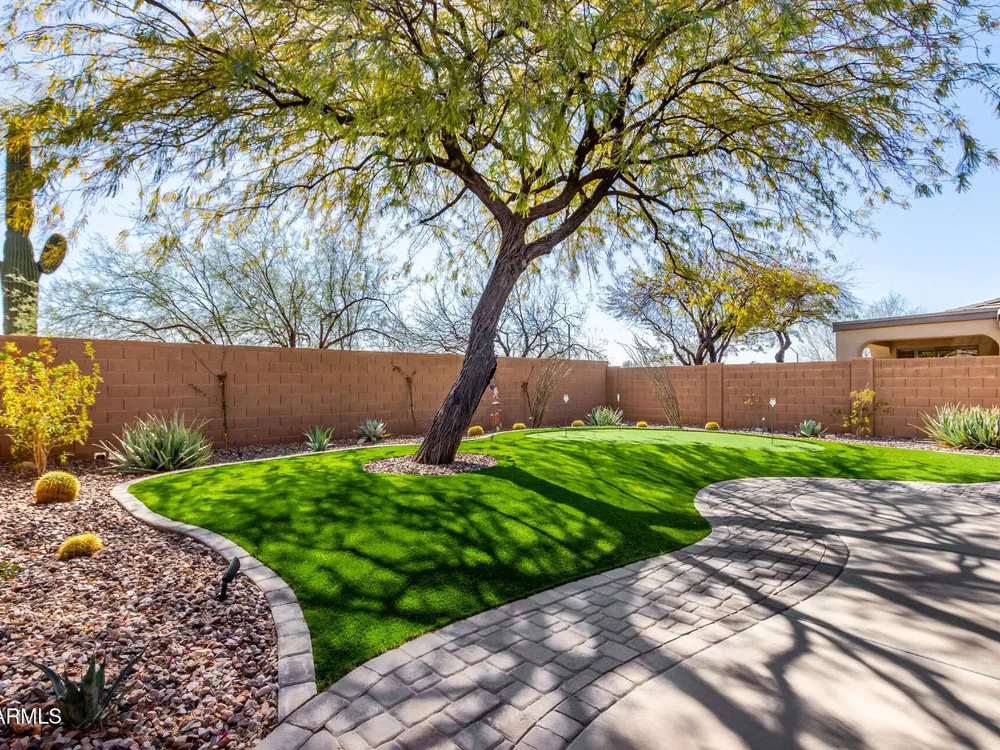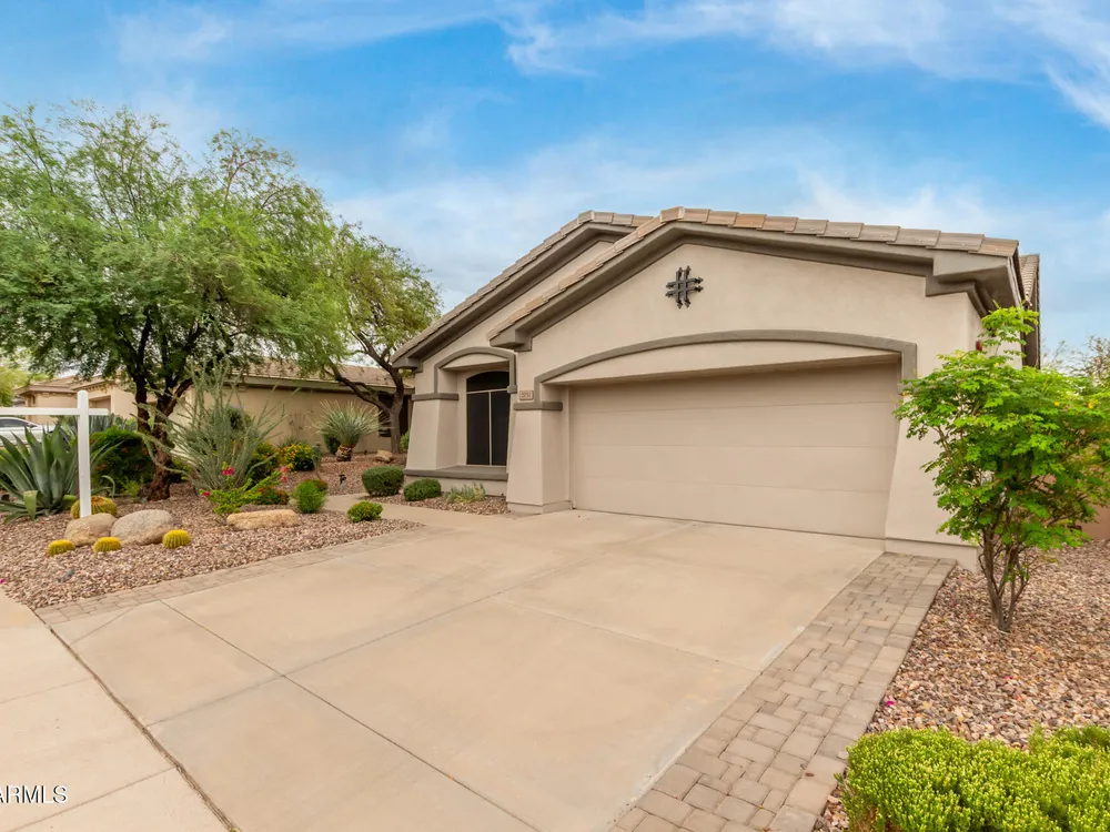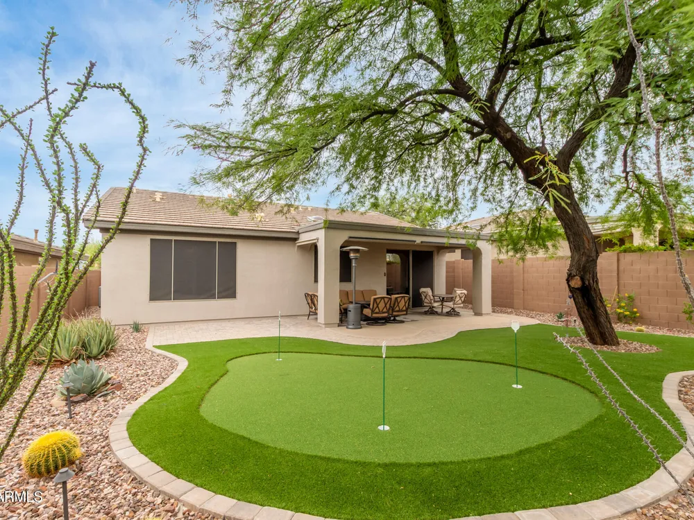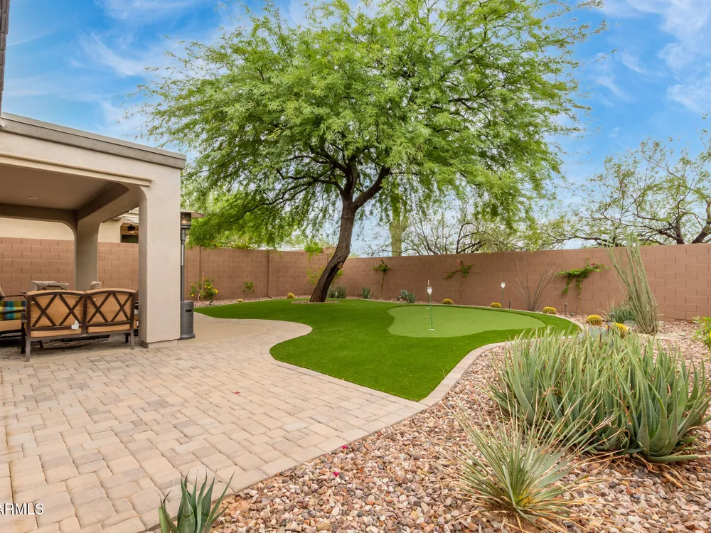 Anthem Country Club~2 bedroom, 2 bath home with ALL BRAND NEW LUXURY VINYL PLANK FLOORING & CARPET plus many other updates, including: BRAND NEW Exterior Paint, Hunter Douglas Plantation Shutters throughout, black door hardware, patio shades, sunscreens, Whirlpool stainless appliances, backyard landscaping with 3-hole putting green, front & back landscaping lighting, extended paver patio, widened driveway, & 220A power for electric vehicle charger. This cozy floor plan is great for full-time residents as well as lock & leave owners. 2016 AC & Roof. Refrigerator, washer & dryer included. Come check out this little gem!
