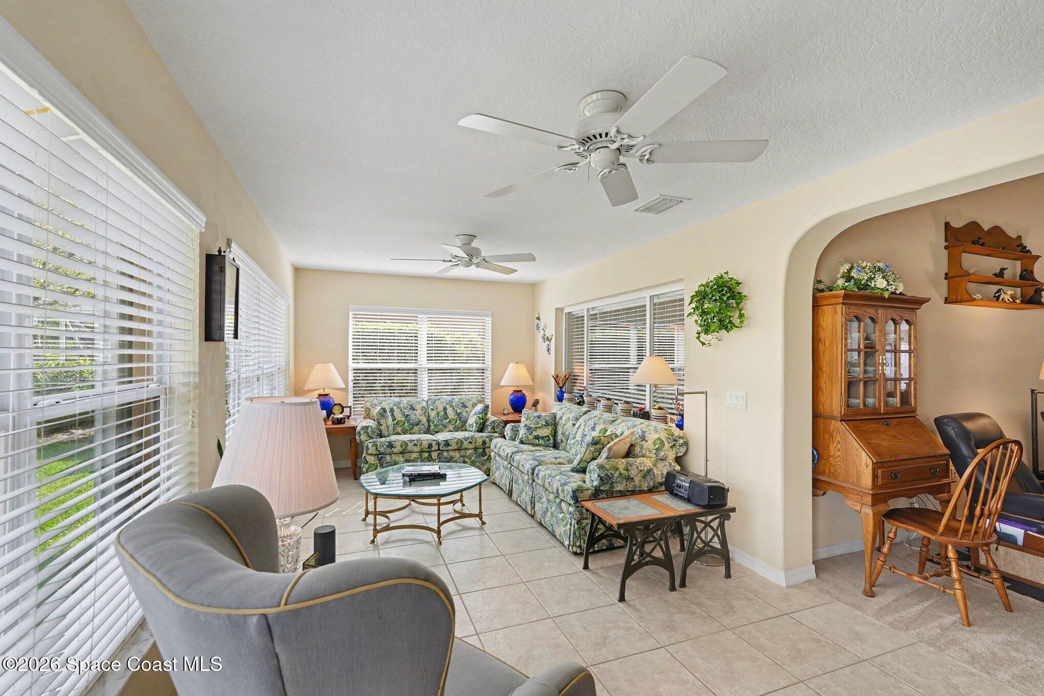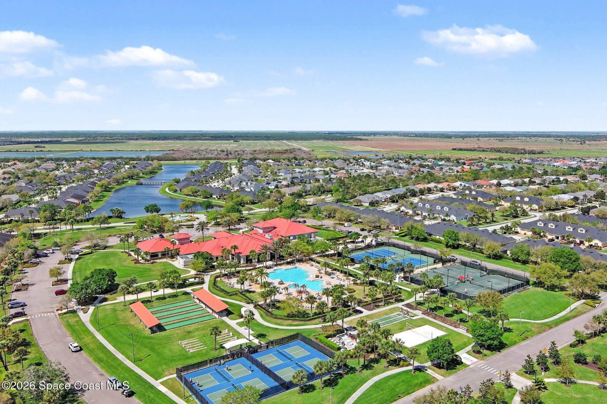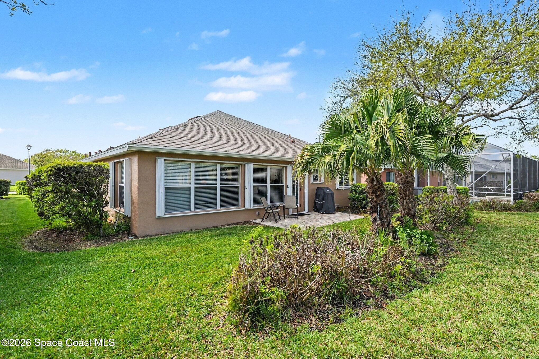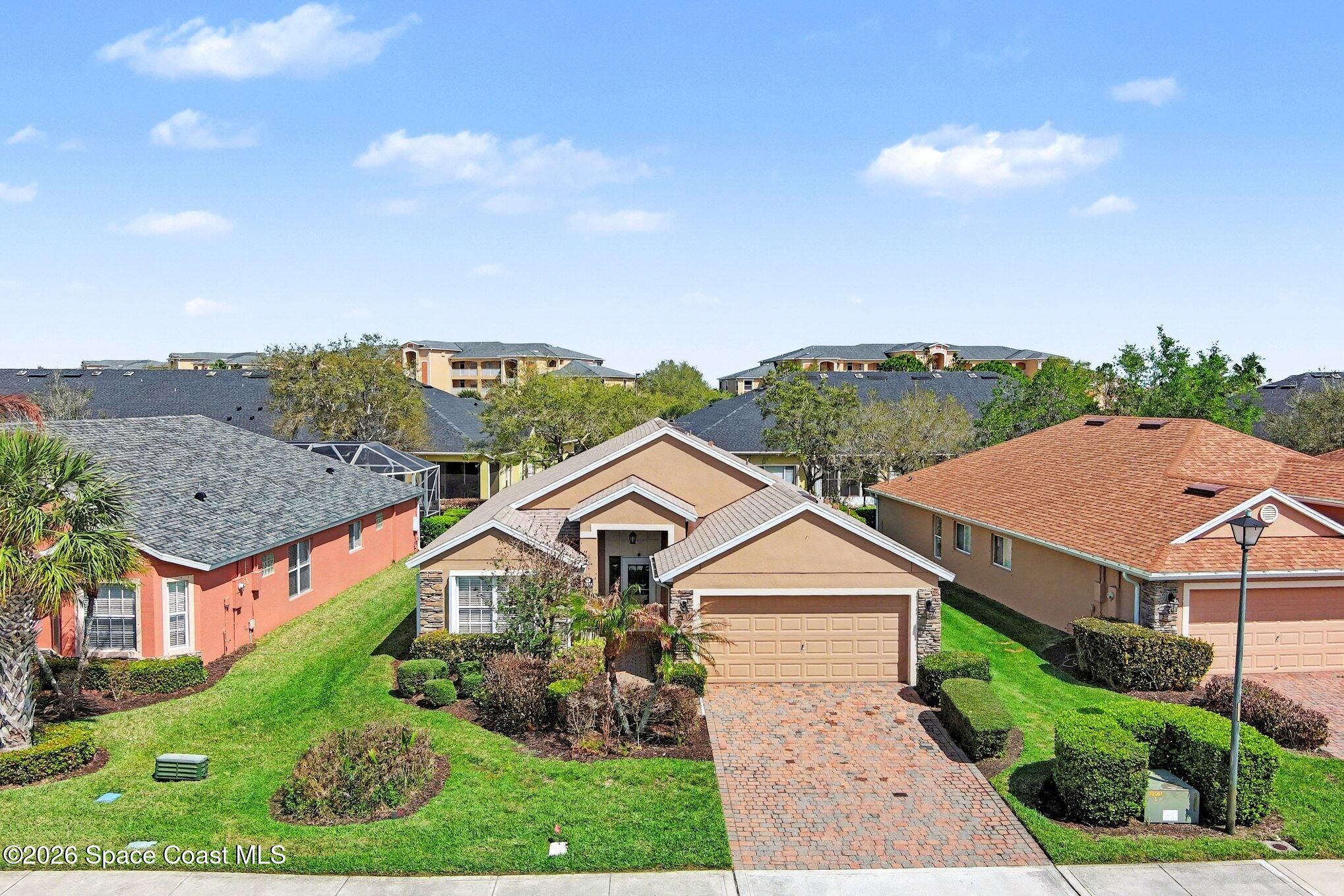 Welcome to Heritage Isle, one of Viera's most coveted 55+ gated communities. This light-filled 3 bedroom, 2 bath home offers 2,034 square feet of comfortable, elegant living. The eat-in kitchen invites casual mornings, while the sun-drenched bonus room with wraparound windows and built-in wine bar is the perfect spot to unwind, entertain, or soak in the Florida sunshine year-round. Accordion and Bahama storm shutters provide peace of mind and privacy. You can rest easy as major systems are newer: roof 2024, HVAC 2021, W/H 2022. Beyond your front door, resort-style living awaits with an expansive clubhouse featuring a café, heated pool and spa, tennis and pickleball courts, bocce ball, shuffleboard, a fitness center, and a vibrant social calendar. Ideally situated near top healthcare facilities, golf courses, premier shopping, and dining. With easy access to I-95, Orlando and Port Canaveral are less than an hour away. Pack the Sunscreen less than 30 Minutes to World Famous Cocoa Beach!