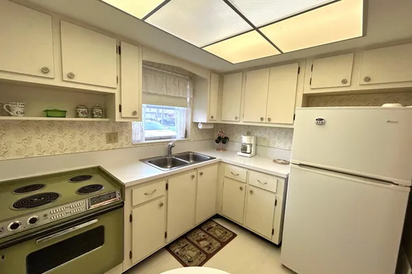 CHARMING 1 BEDROOM 1 BATH VILLA located in the Crosley section of the 55+ community of Cresthaven Villas. Well maintained and ready to move in. Can come fully furnished including linens, dishes, pots and pans and small appliances. 2 walk in storage closets and full wall closet in the bedroom. Enclosed back porch and open air front porch. Common laundry and parking right out the front door. Accordion hurricane shutters on all windows and back sliding glass door. Community offers resort style heated pool, sauna, showers, clubhouse and auditorium for parties and activities. Fitness center, card room, library, billiards, bocce, shuffleboard, wood shop and sewing room. Close to Lake Worth Beach, shopping, medical and bus service. Low maintenance of $390 includes cable, internet & water