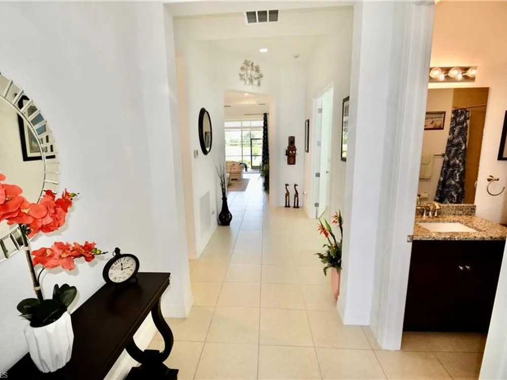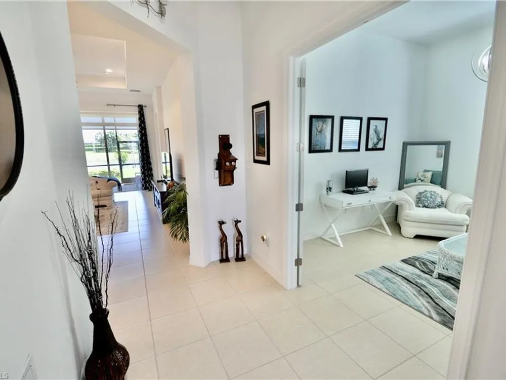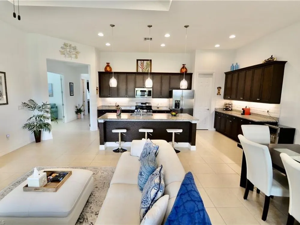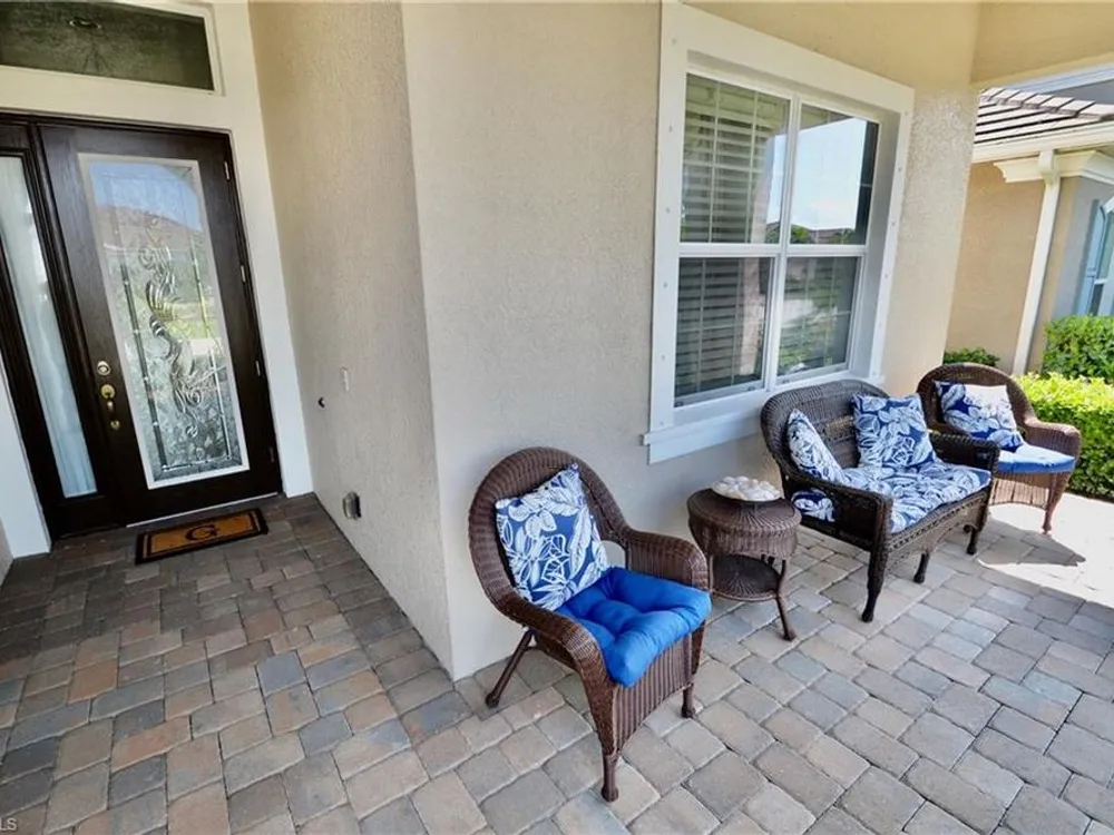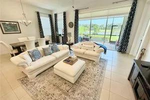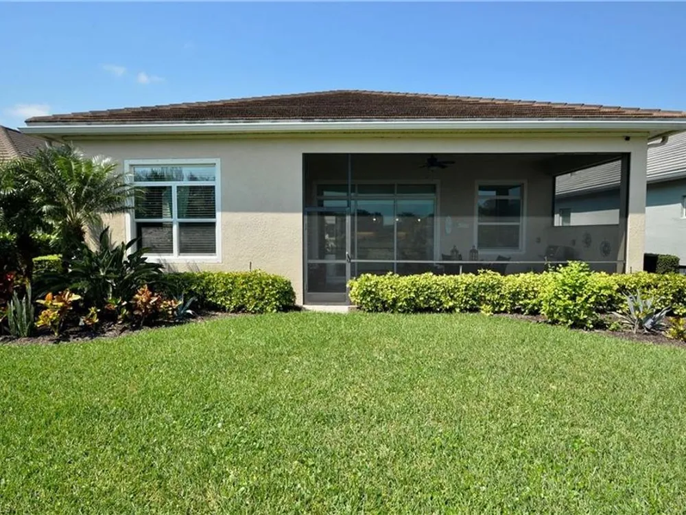 Welcome to this spacious and bright home with volume ceilings throughout, featuring the Largo floorplan. This home has 2 bedrooms with ensuite bathrooms and a versatile den, which can also serve as another guest room or home office. Furniture is negotiable. With the rear having East exposure, the great room has an abundance of light from the morning sunrises. The great room has a large kitchen with an eat-in kitchen island, granite countertops, stainless steel appliances, 42" upper wood cabinets, walk-in pantry and a breakfast bar overlooking the dining room and living room combination. Laundry in Residence. Relax on your large screened-in lanai with a water and gas hook-up out the wall of sliding glass doors from the living room for perfect indoor/outdoor living. Verandah is a community with an abundance of amenities, ranging from walking and biking trails, kayaking down Orange River, two 18-hole championship golf courses, fitness/gym facilities, pickleball, tennis, a resort-style swimming pool, dog parks, and much more! Verandah is close proximity to a lot that Southwest Florida has to offer - nearby Babcock Ranch, Downtown Fort Myers Shopping and restaurants, beaches, and located in between the Fort Myers and Punta Gorda airports. Schedule your appointment to see this beautiful home, great for having company and entertaining.