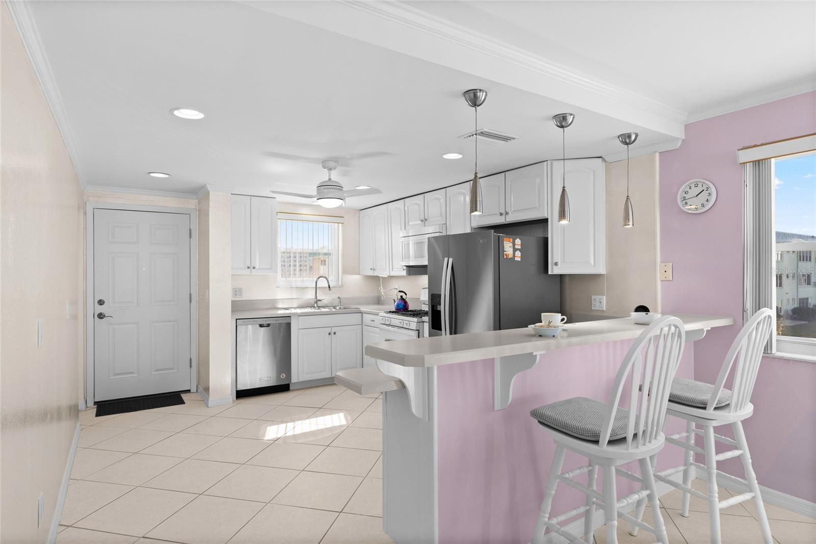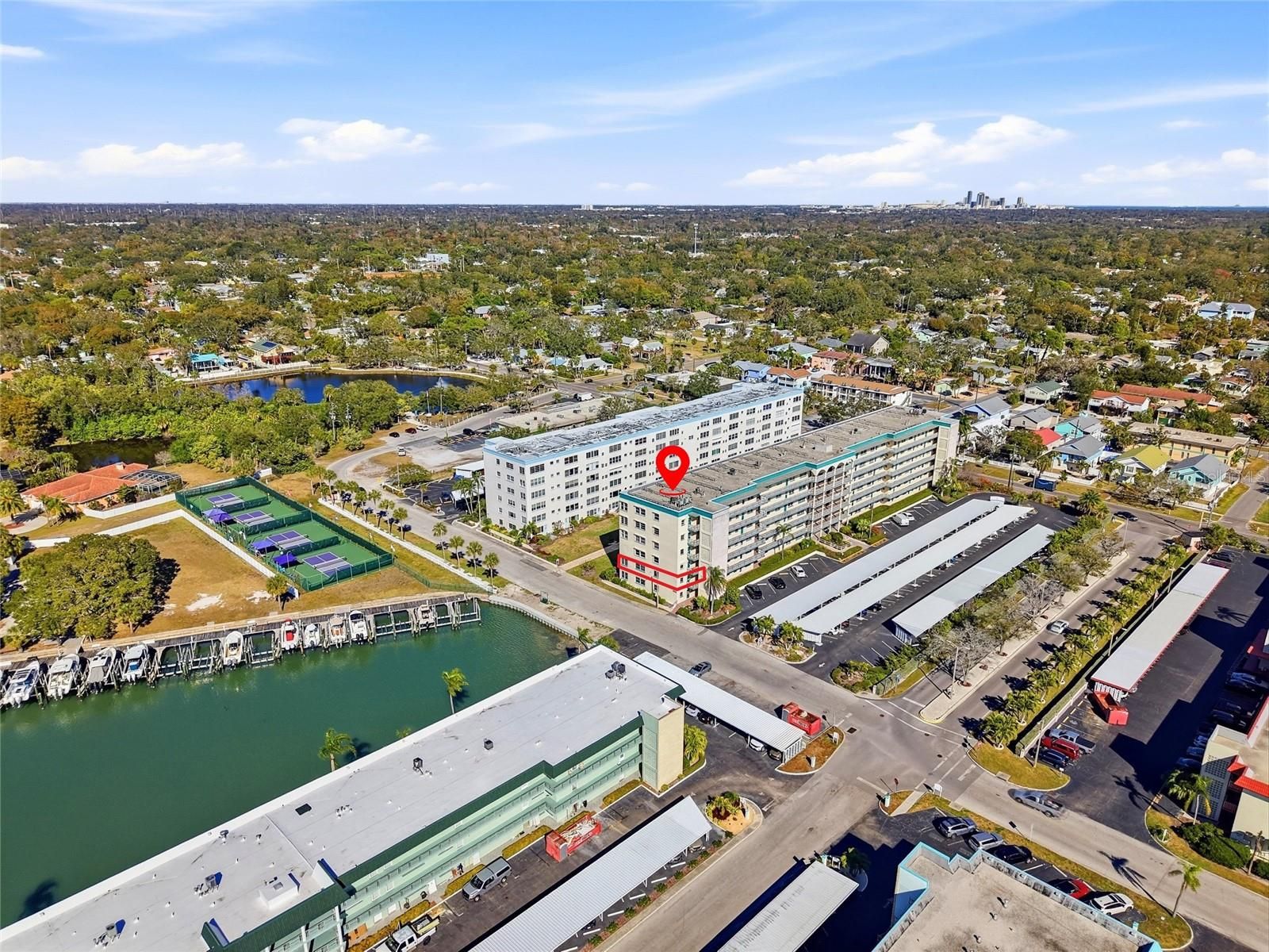 Welcome to this spacious two bedroom, two bath corner unit located in the desirable Jamison Building within the sought-after 55+ community of Town Shores of Gulfport. Enjoy beautiful intracoastal views from this light-filled residence, enhanced by abundant windows and natural light throughout. The open floor plan showcases a beautifully updated kitchen with modern appliances and updated windows, perfect for both everyday living and entertaining. The impressive primary suite features an oversized bedroom, a large walk-in closet, and a private ensuite bath. The secondary bedroom is generously sized and offers double closets, ideal for guests or a home office. An oversized hallway linen closet provides exceptional storage options rarely found in condo living. Additional highlights include smooth ceilings throughout, neutral décor, ceiling fans and beautiful maintenance-free flooring. Natural gas is included in the monthly condo fee, providing energy for both cooking and heating—an exceptional value. Town Shores offers an active and vibrant lifestyle with a large clubhouse hosting social events and activities, four heated pools, a fitness center with sauna, library, bocce ball, tennis/pickleball, and shuffleboard courts. Ideally located within walking distance to downtown Gulfport, you’ll enjoy easy access to fine dining, cafés, shops, galleries and waterfront activities. This is Florida 55+ living at its finest!