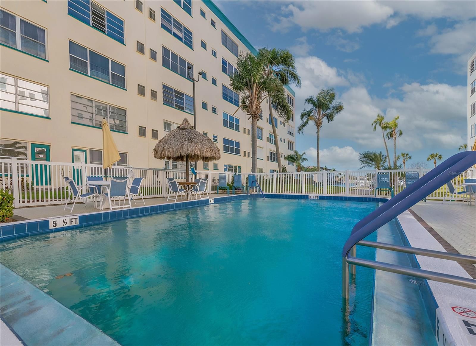 Come Live Your Best Chapter at Town Shores, an active, 55+ condo community in the waterfront town of Gulfport. Residents of Town Shores enjoy the walkability to Gulfport's Arts District where you'll find a waterfront walking track and outdoor fitness equipment, tennis & pickleball courts, and of course Beach Blvd with tons of galleries, boutiques, shops, live music and restaurants. The Catherine Hickman Theater and Senior Citizens Center offer tons of activities, as well. Within the Town Shores campus you'll enjoy 4 heated pools, tennis, pickleball and shuffleboard courts, a clubhouse with game rooms and his and her saunas, and a monthly activity calendar that will keep you busy! From your front door, you have a small outdoor sitting area overlooking the marina and Boca Ciega Bay. At Town Shores every day feels like VACATION! This condo provides a MOVE-IN READY environment, POOL VIEWS and a COVERED PARKING SPOT. This one bedroom, one bath unit is clean as a whistle with fresh interior paint and tile floors throughout. The smart layout finds your living room bathed in sunlight through your front windows, offering WATER VIEWS OF THE MARINA from the comfort of your couch. The flow continues nicely to the dining area and into the galley kitchen with QUARTZ COUNTERTOPS and subway tile backsplash, a PANTRY CABINET with pull-out drawers and updated appliances including the range with a gas cooktop! NATURAL GAS is included in your monthly condo fee and provides energy for your cooking and heating. Stroll through the kitchen and out to your enclosed FLORIDA ROOM THAT OVERLOOKS THE POOL and courtyard. This room works well as a home office, flex space or den and includes a generous closet for seasonal décor, sandy toys or tools. The bedroom is spacious with a walk-in closet as well as a separate hanging closet with a nice closet system. The full bathroom is tastefully updated, as well and the vanity offers organized storage in addition to the linen closet. The community laundry room and your external storage locker are both found on the same floor. #509 is just a few steps away from the elevator, for easy access, and this unit also provides a reserved carport parking space (#38). The Jamison building replaced their roof in 2018/2019 and passed their Phase 1 Milestone Inspection with no pending assessments. WHAT ARE YOU WAITING FOR? SCHEDULE YOUR SHOWING TODAY!