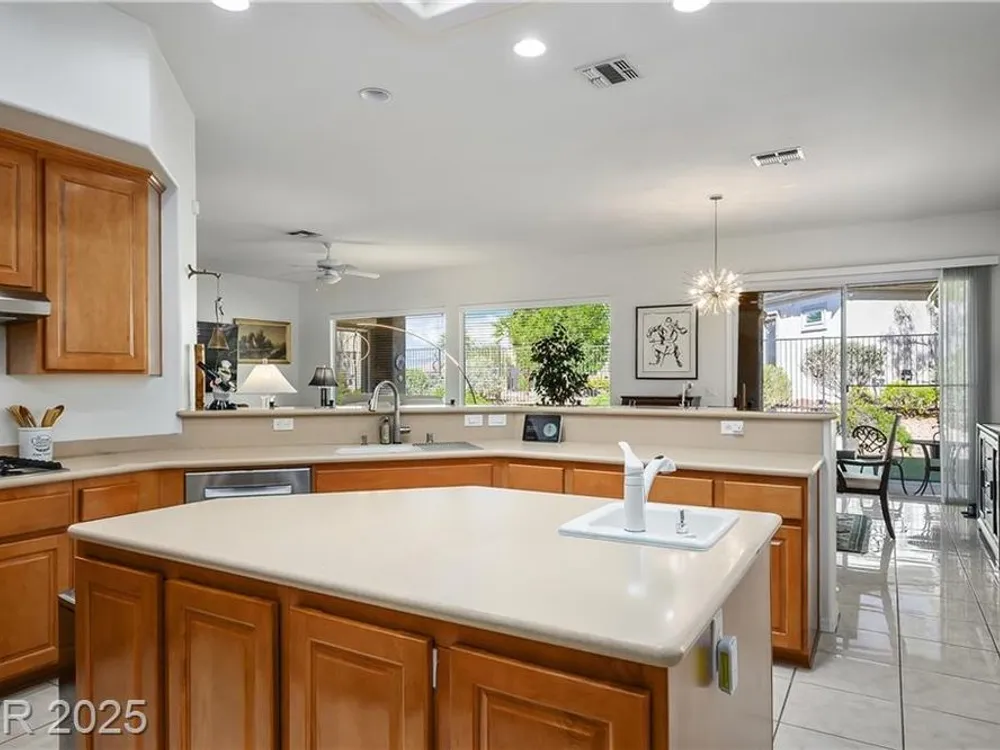 Elegant single-story in the coveted Sun City Anthem community! This beautifully maintained home features an open floor plan with a spacious family room and custom wet bar, perfect for entertaining. The chef’s kitchen offers a large island, breakfast bar, and skylight that fills the space with natural light. Relax in the primary suite with walk-in closet, dual vanities, separate shower, and garden tub. Enjoy your private backyard retreat with mountain views, built-in BBQ, and putting green. Residents also enjoy world-class amenities, making this home the perfect blend of comfort, style, and lifestyle.